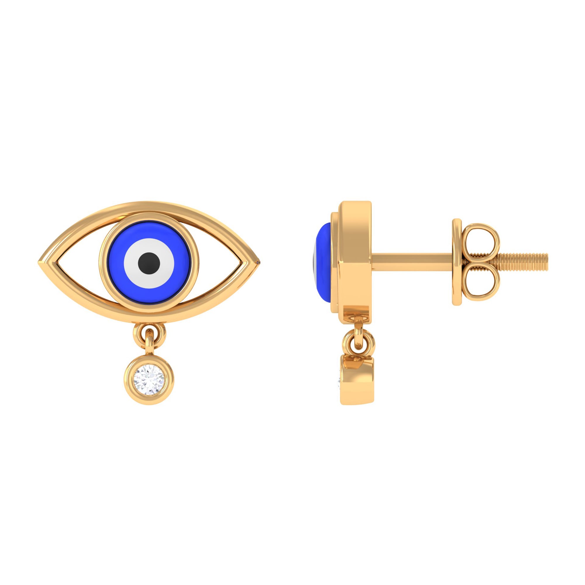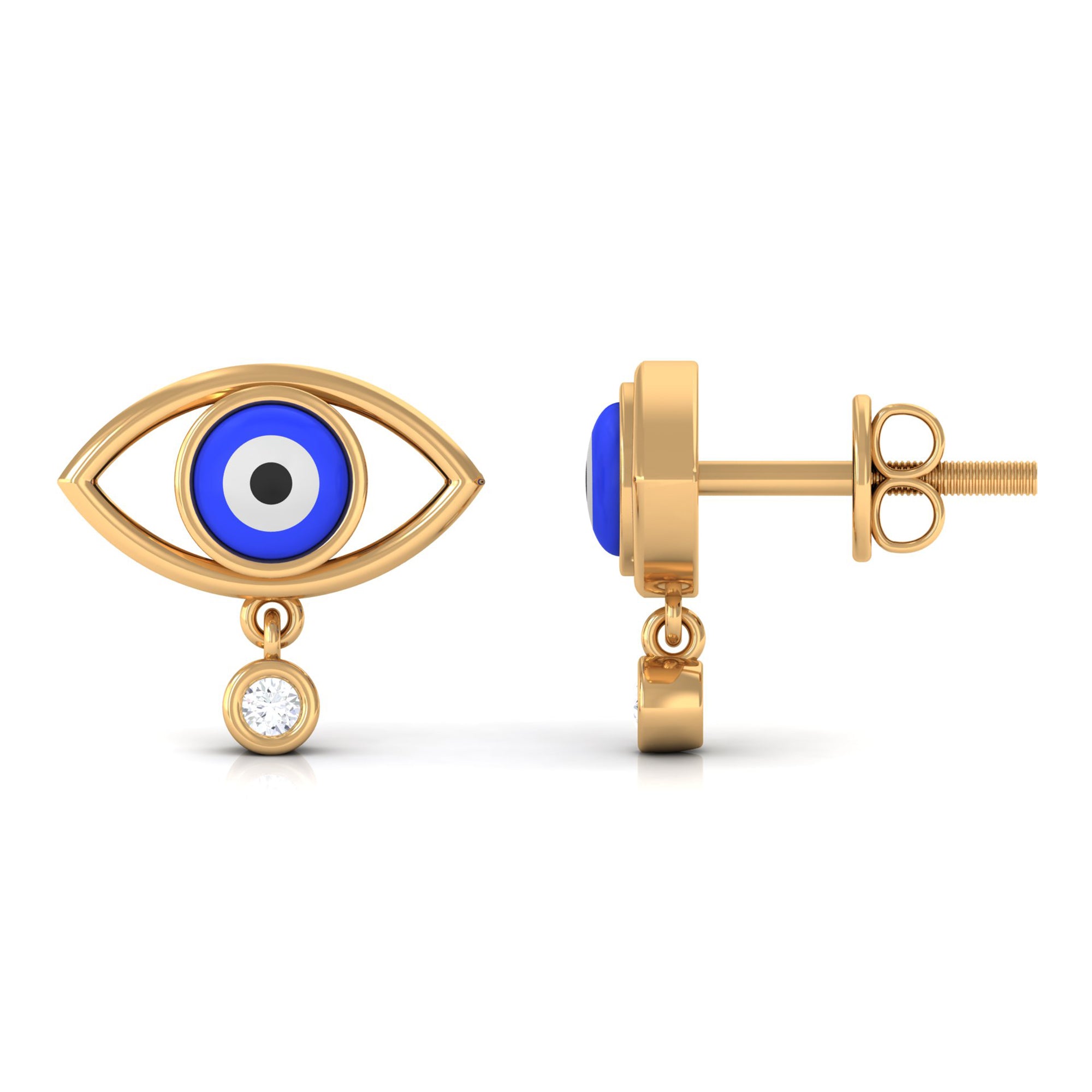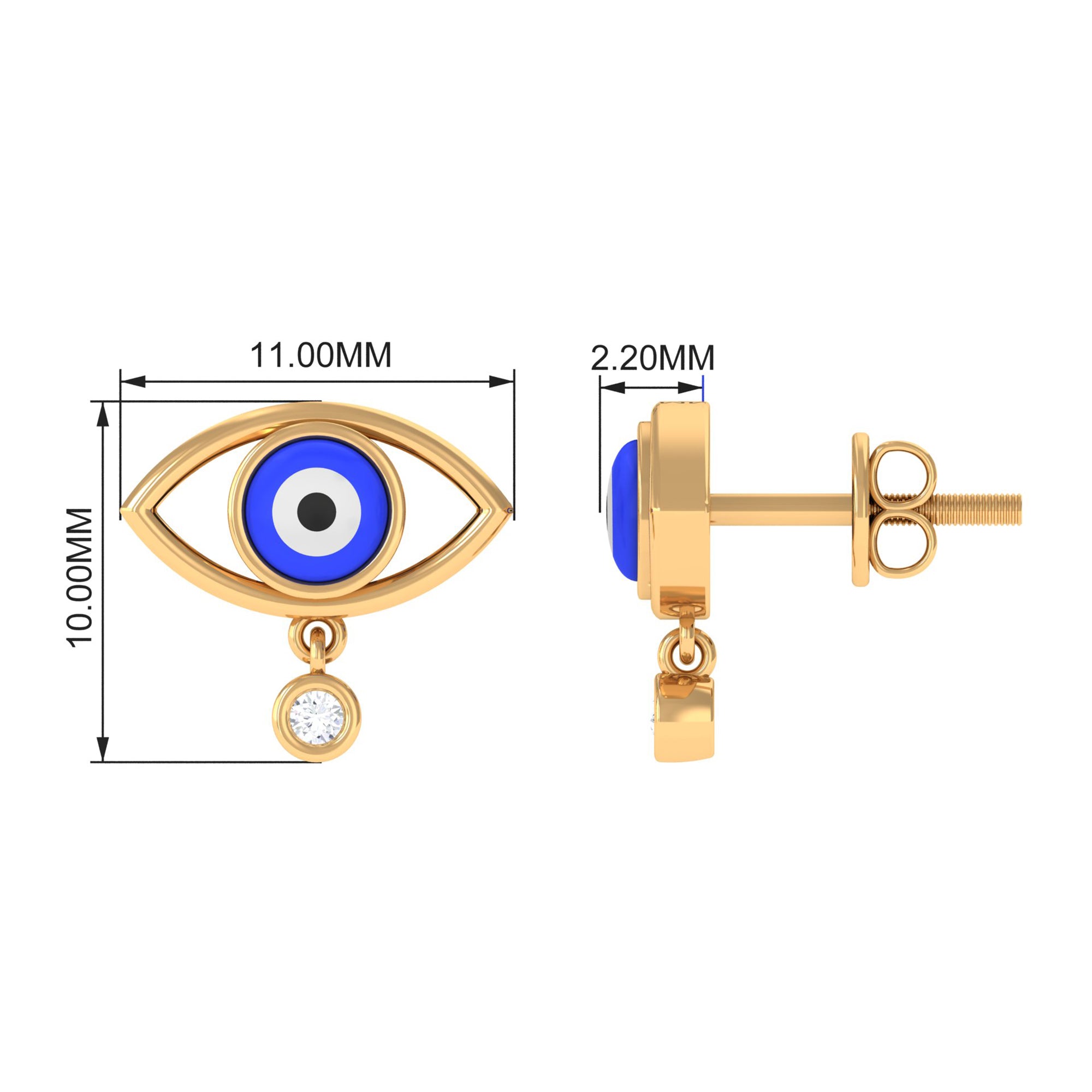 Classic Evil Eye Stud Earrings with Moissanite Drop in Bezel Setting