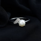 Classic Freshwater Pearl Solitaire Ring with Diamond Leaf