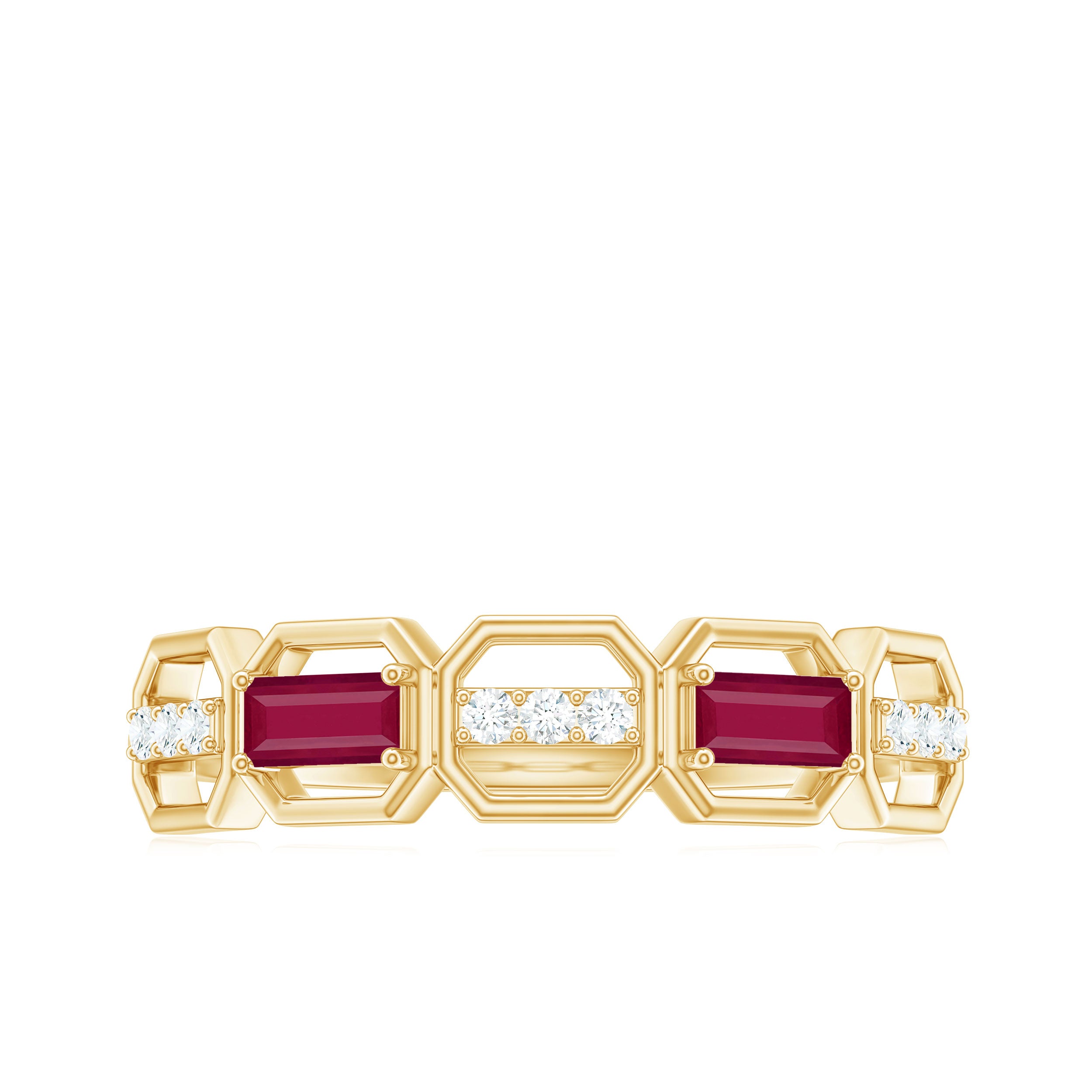 Embrace classic beauty with this Half Eternity Ring adorned with Ruby and Diamond gemstones. A timeless symbol of love and elegance.