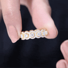 This Lab Grown Diamond Wedding Band is both striking and one-of-a-kind. Dazzling and glamorous, this Halo Wedding Band features exquisite detailing that truly distinguishes it. The Wide Band is adorned with 3 MM round brilliant cut lab grown diamonds of EF-VS quality throughout, with each stone surrounded by a halo, making it a true statement piece. Our classic prong setting enhances light and brilliance while securely holding the diamonds from all angles. This Full Eternity Band boasts a breathtaking appearance, serving as a stunning accessory for those who wish to feel empowered and beautiful. Chic and attention-grabbing, this Wedding Anniversary Band exudes a sense of luxury and glitter, destined to become your signature style. Make a statement with this Thick Wedding Band, which showcases a distinctive style that draws the eye. This Diamond Anniversary Band combines elegance with contemporary flair, making it ideal for those seeking a hint of luxury.