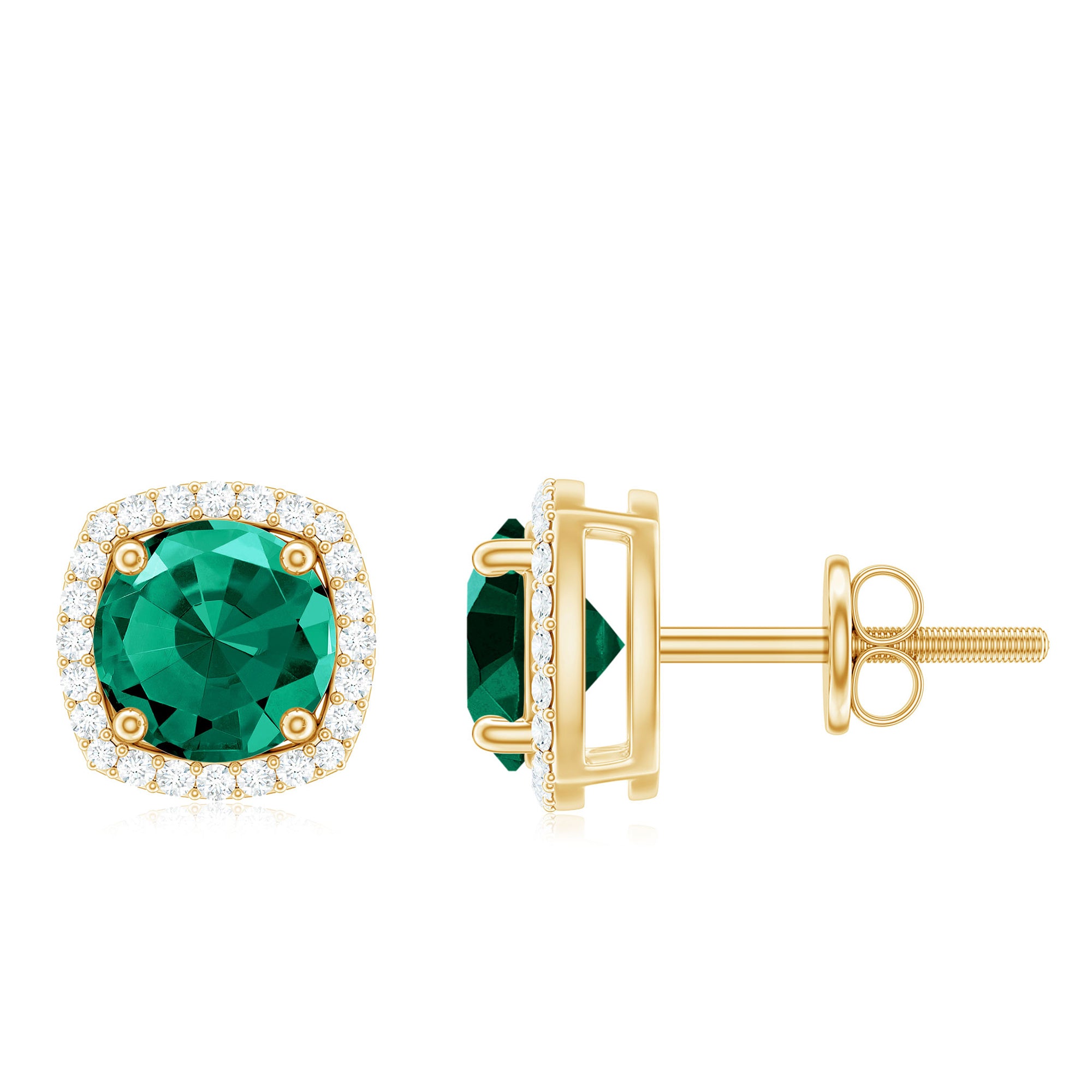 Classic Lab Grown Emerald Halo Stud Earrings with Certificate