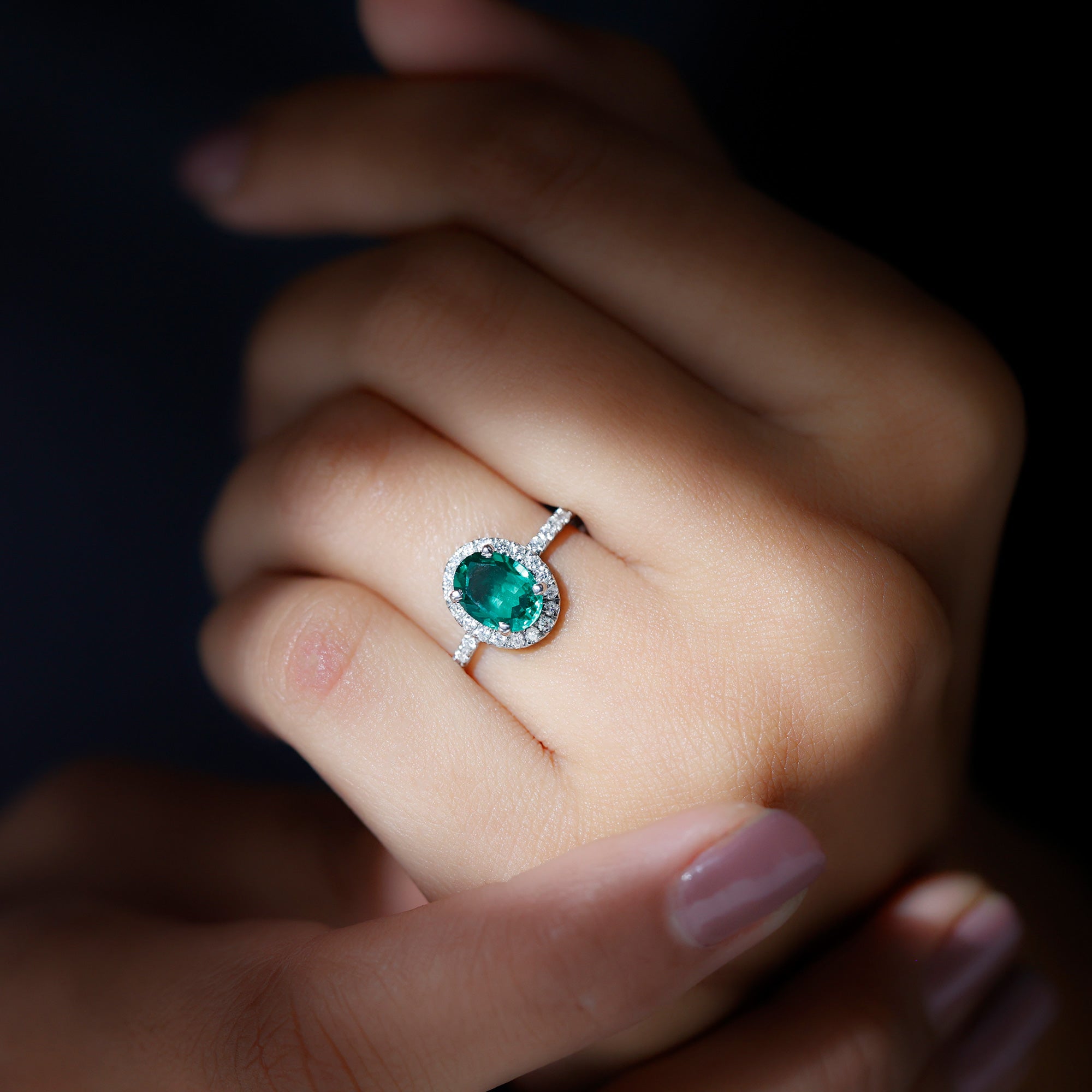 Classic Lab Grown Emerald Oval Engagement Ring with Diamond Halo