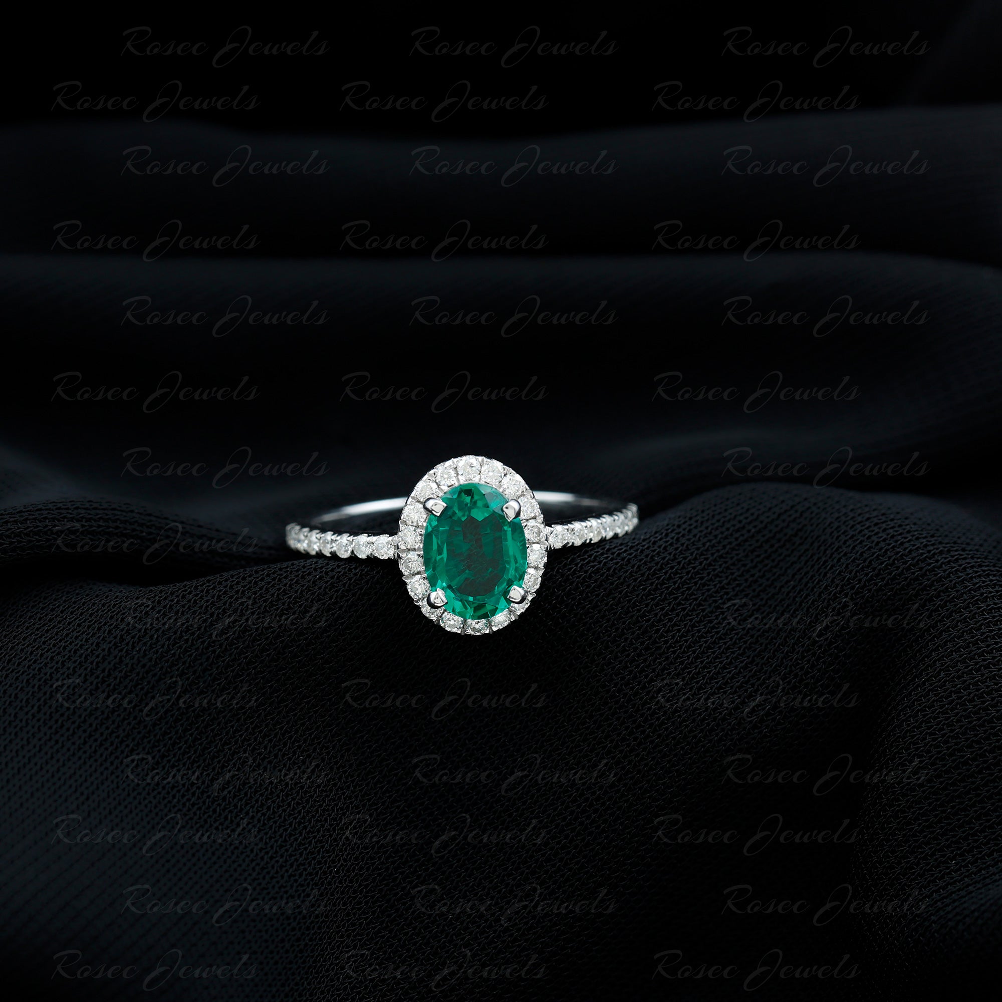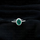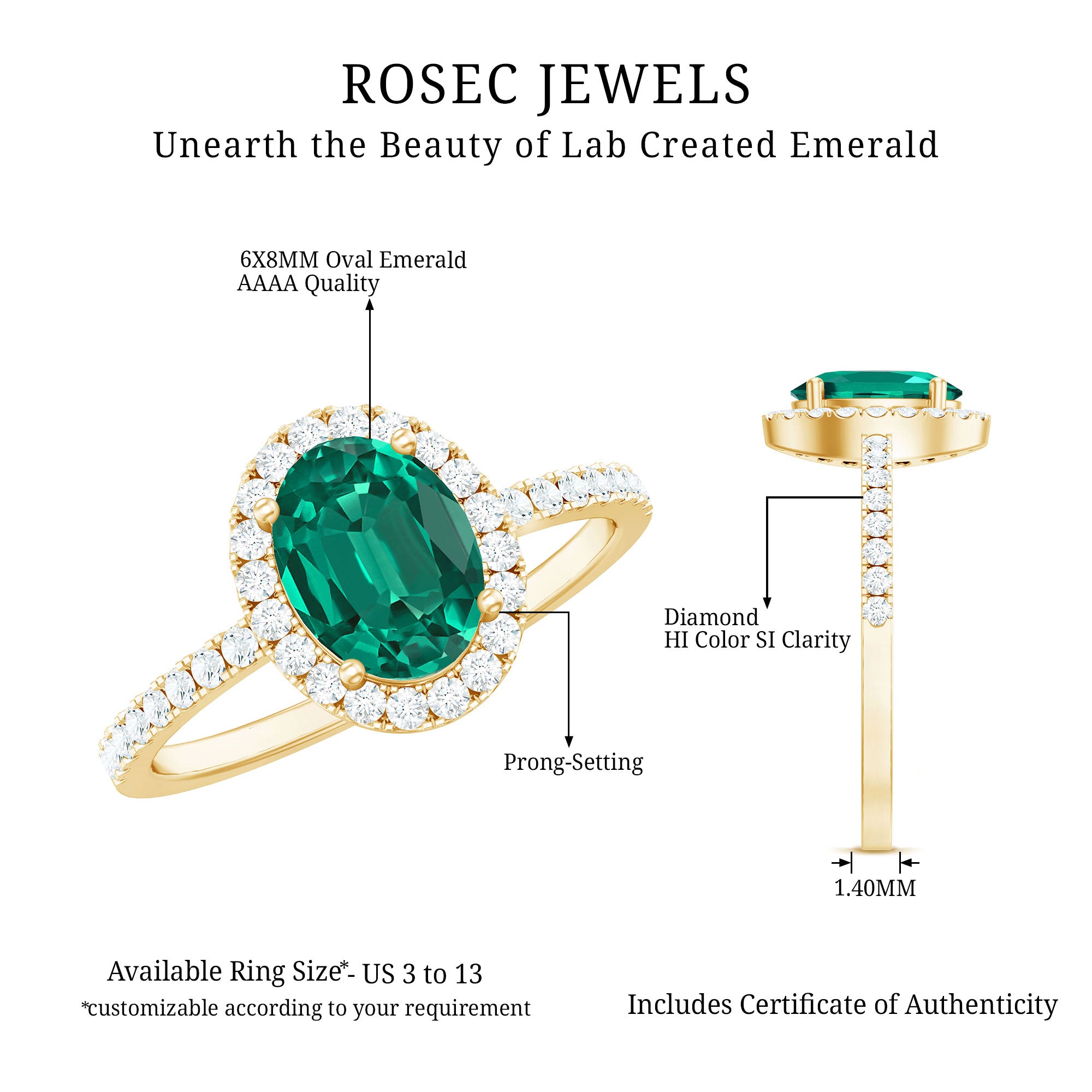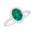 Classic Lab Grown Emerald Oval Engagement Ring with Diamond Halo