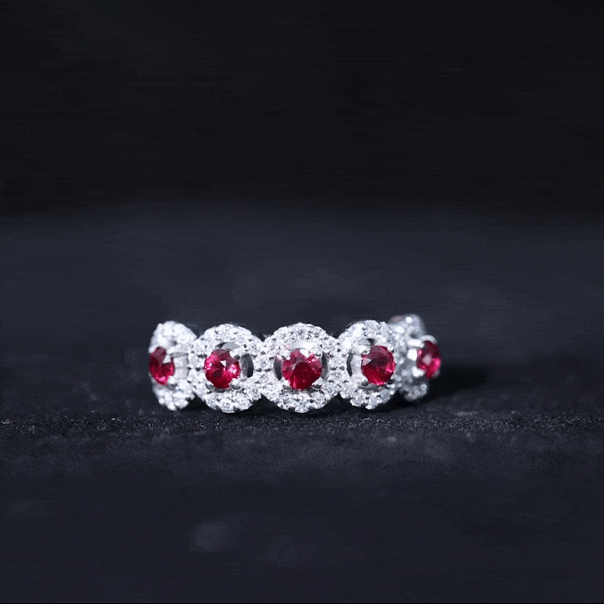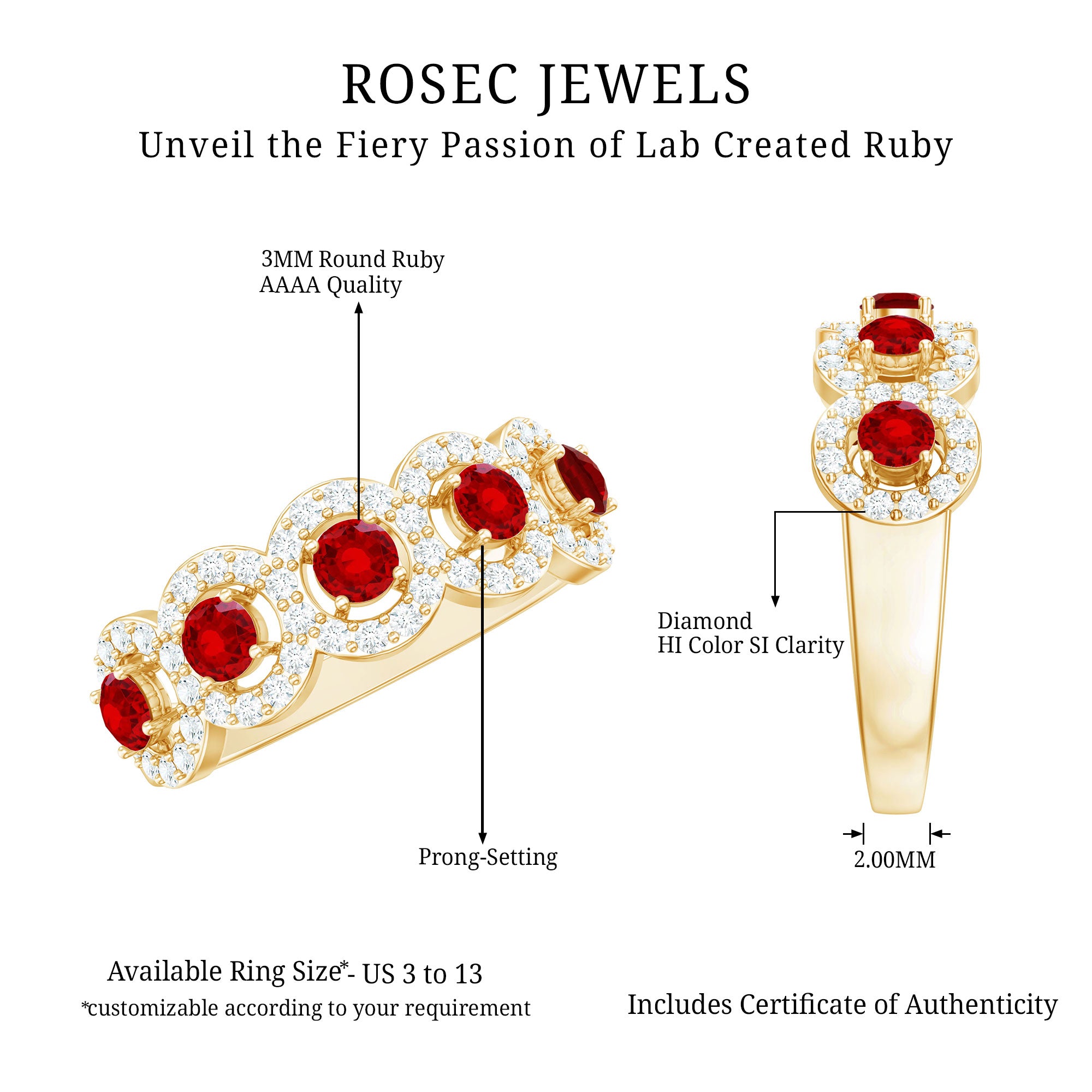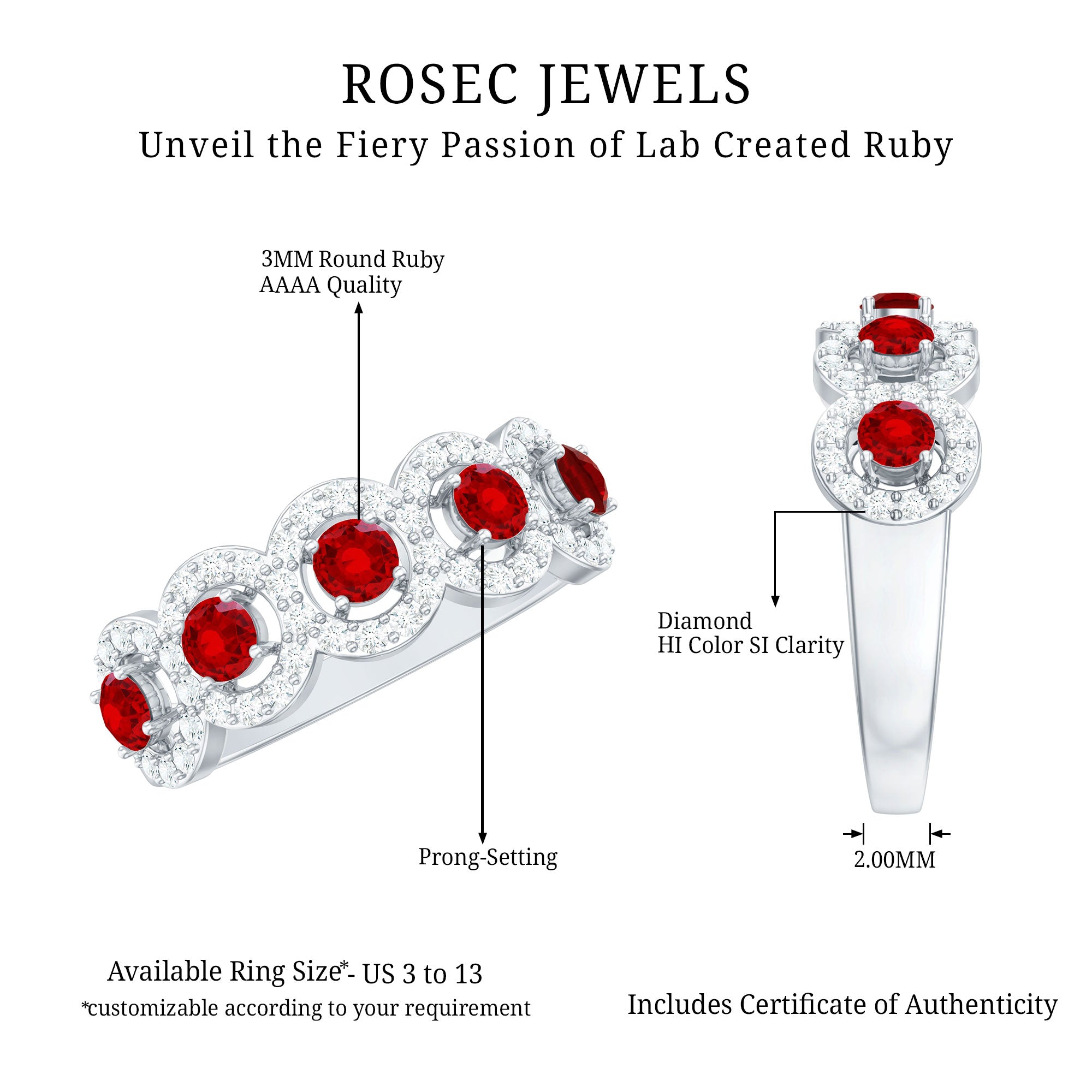 Classic Lab Grown Ruby and Diamond Halo Half Eternity Ring
