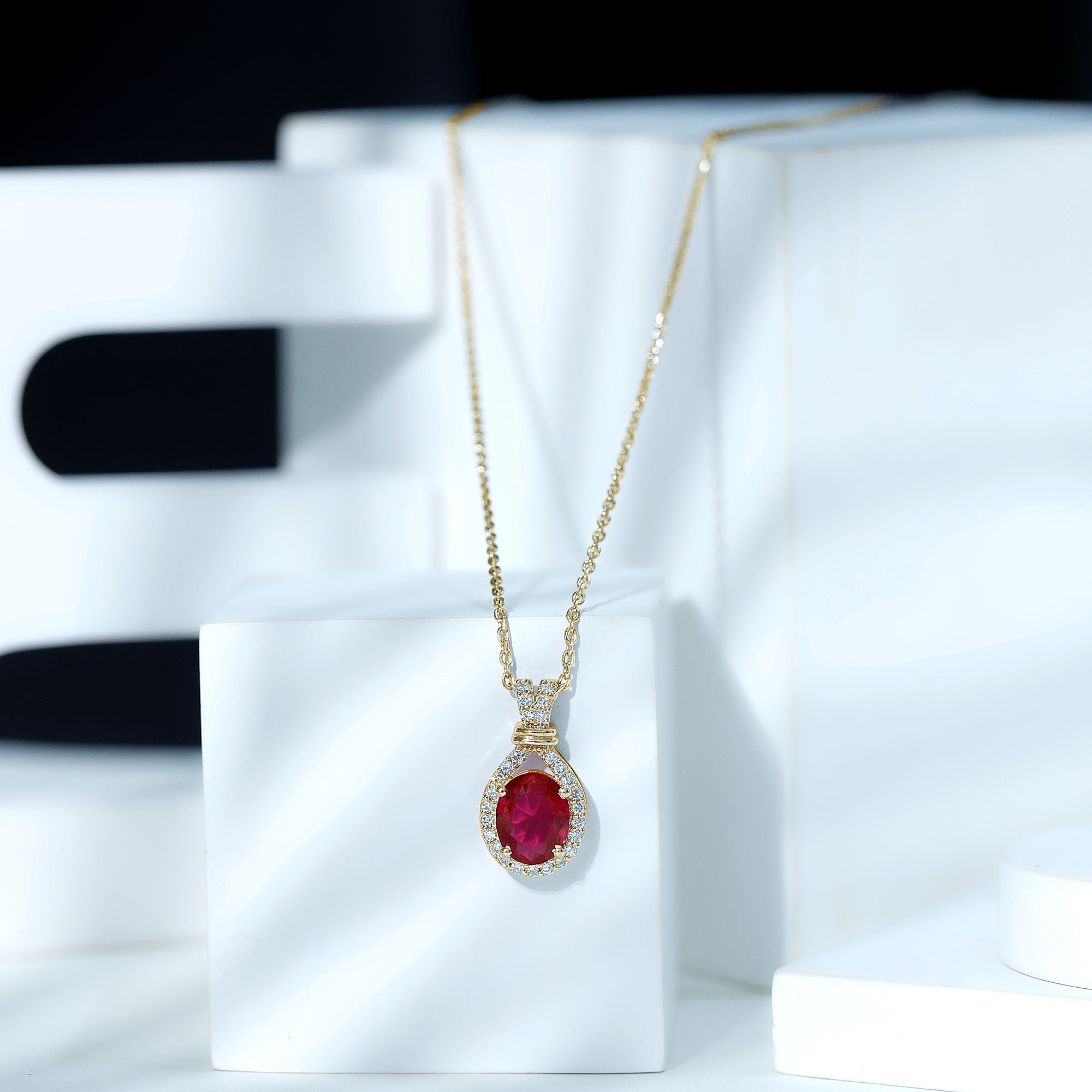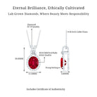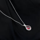 Classic Lab Grown Ruby Drop Pendant Necklace With Diamond Halo