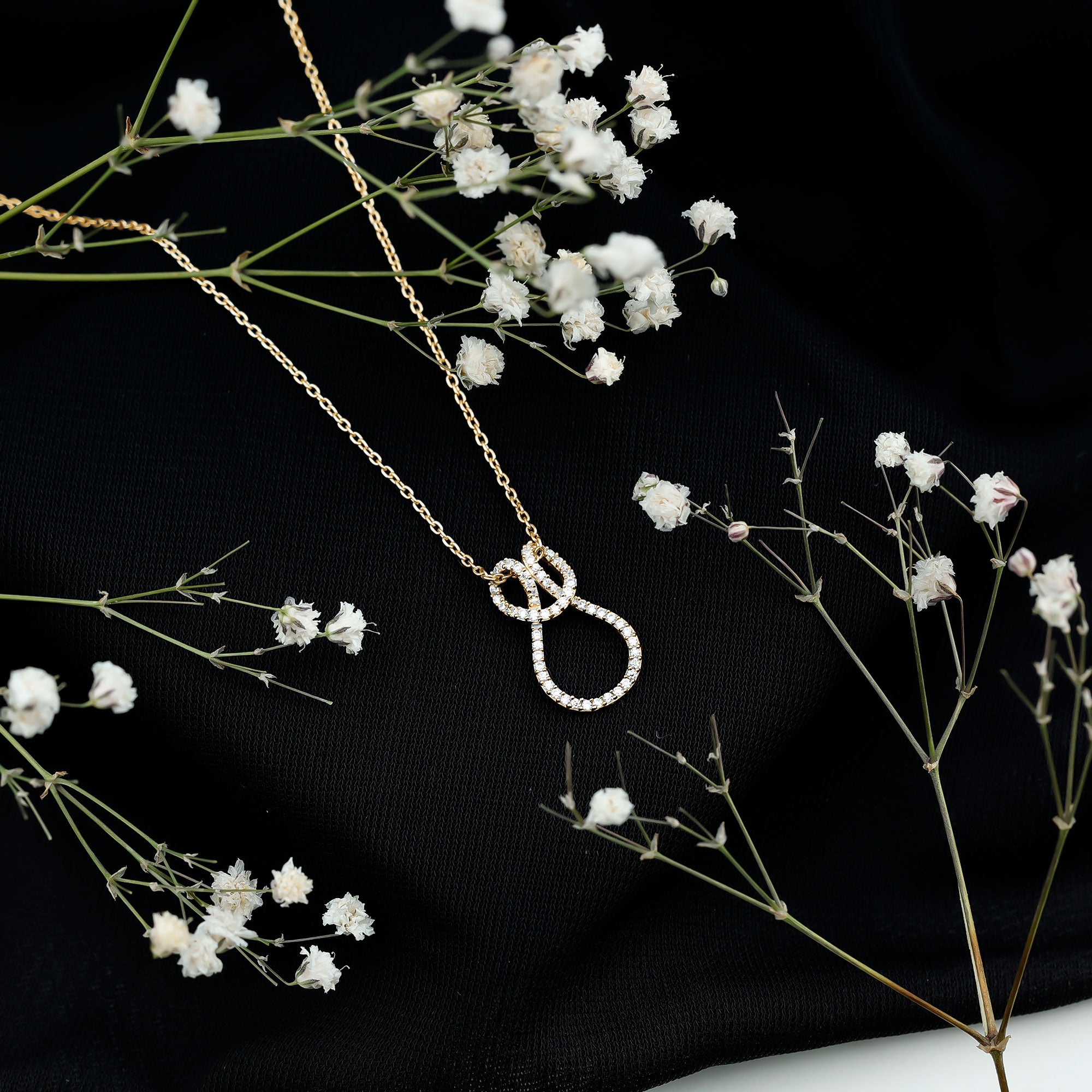 Experience a delightful twist on the traditional infinity symbol with this exquisite pendant necklace. The pendant showcases a beautifully twisted infinity design adorned with pave-set round moissanite, striking the perfect balance between timeless elegance and dazzling sparkle.