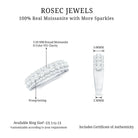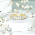 Celebrate your marriage with this enchanting Wedding Band Ring, where round Moissanite stones beautifully embellish half of the band in three rows, meticulously secured within prong settings. Choose from a selection of metal options to personalize this symbol of your love, ensuring its as unique as your journey together.