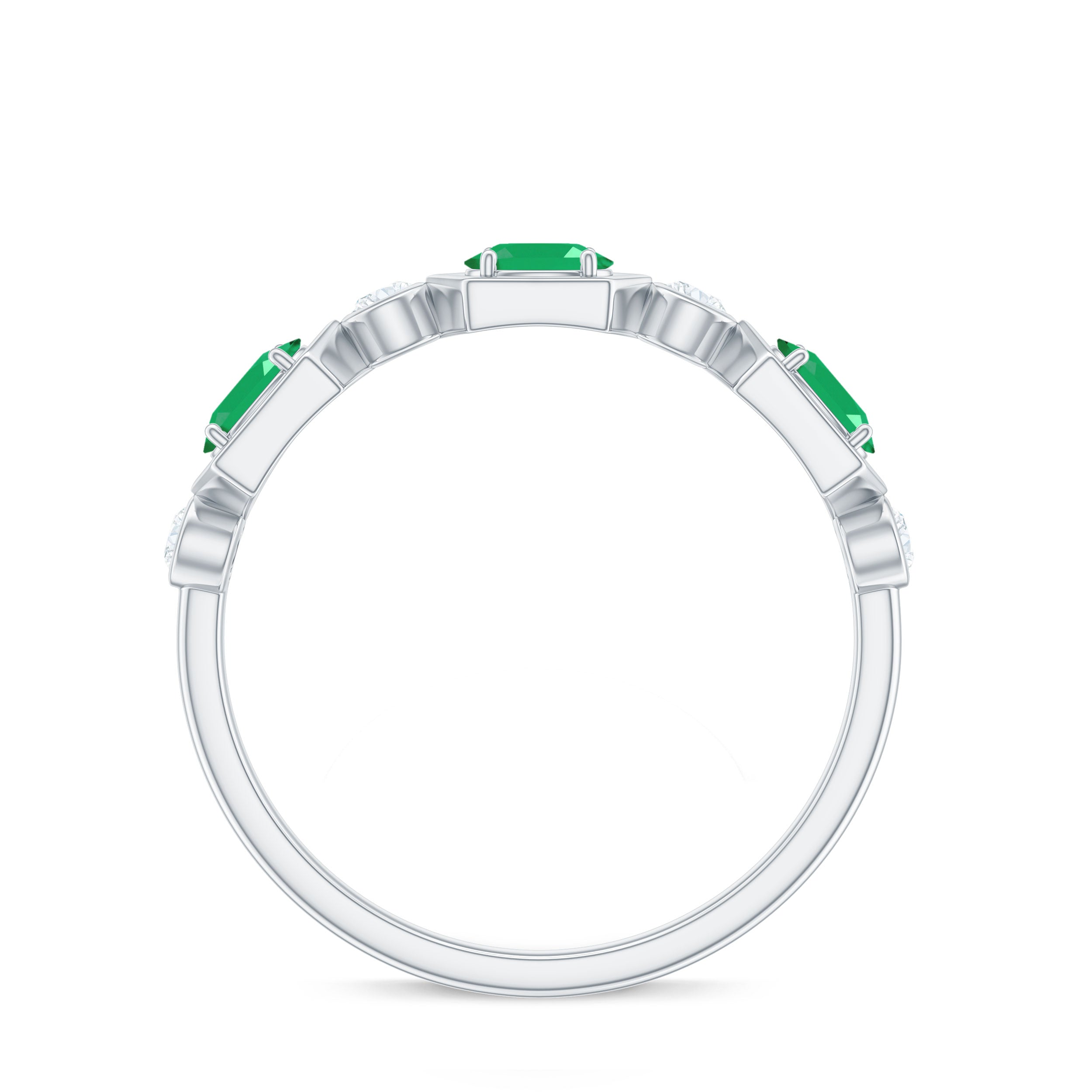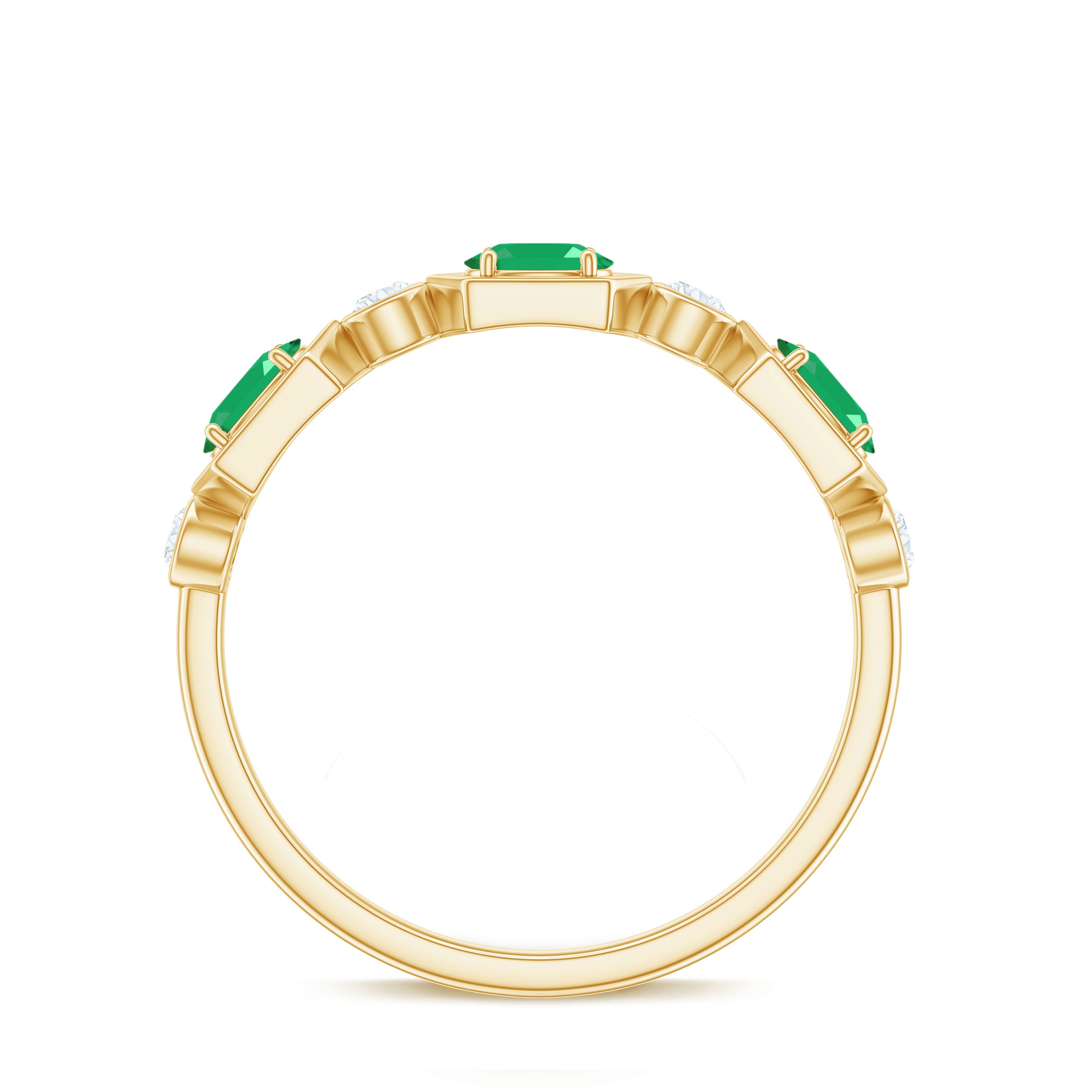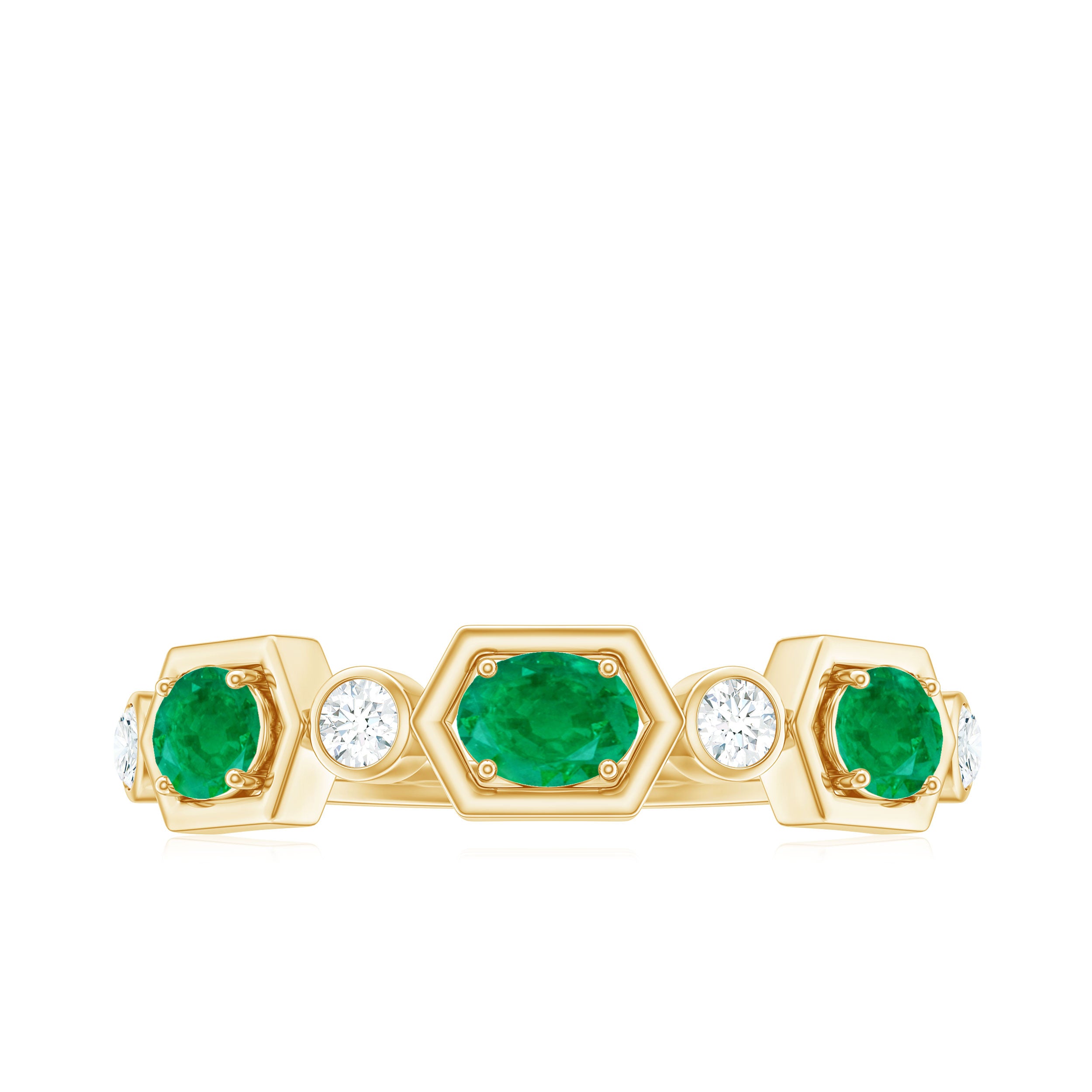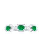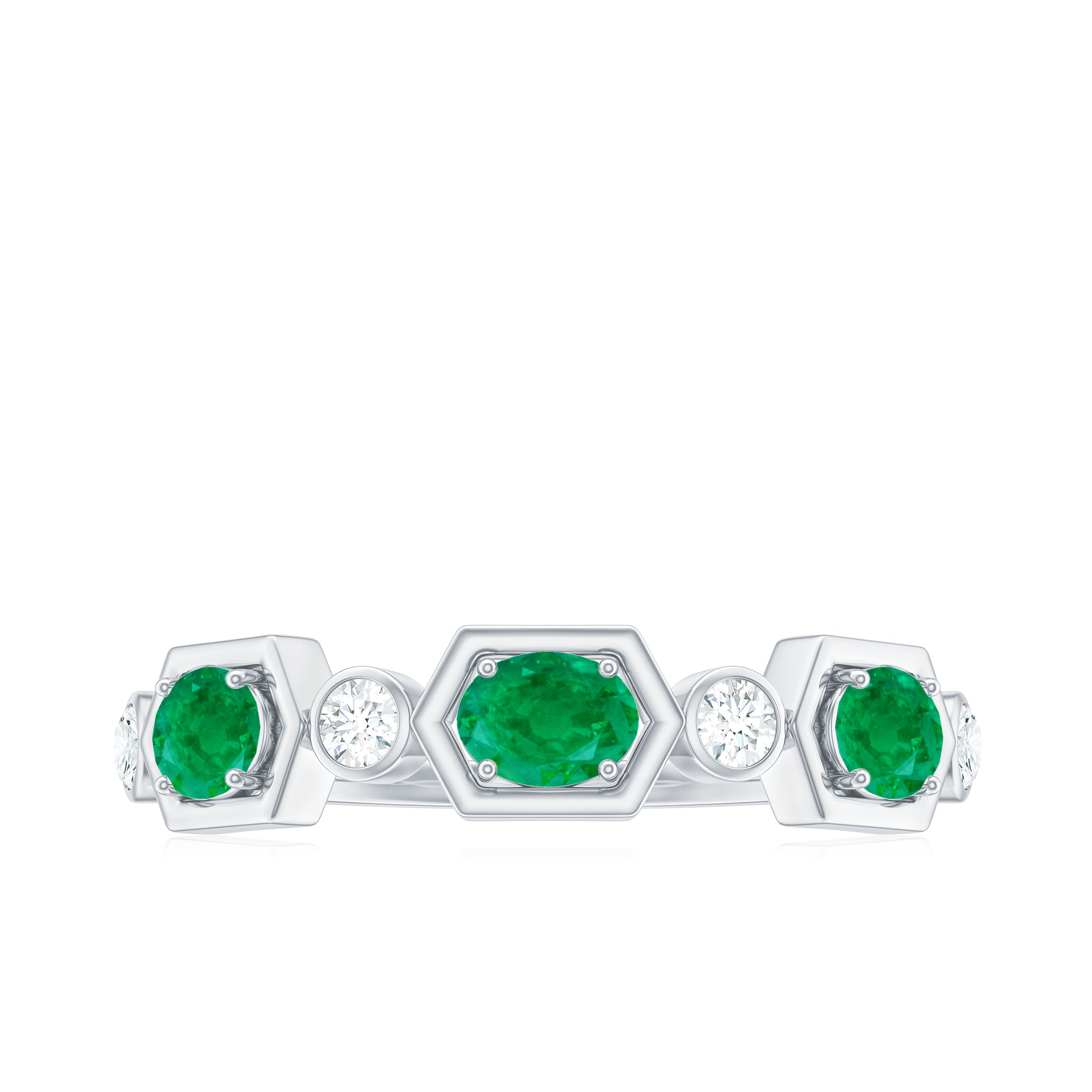 Classic Oval Emerald Diamond Half Eternity Band Ring in East West Style