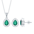 Classic Pear Shaped Created Emerald And Moissanite Teardrop Jewelry Set