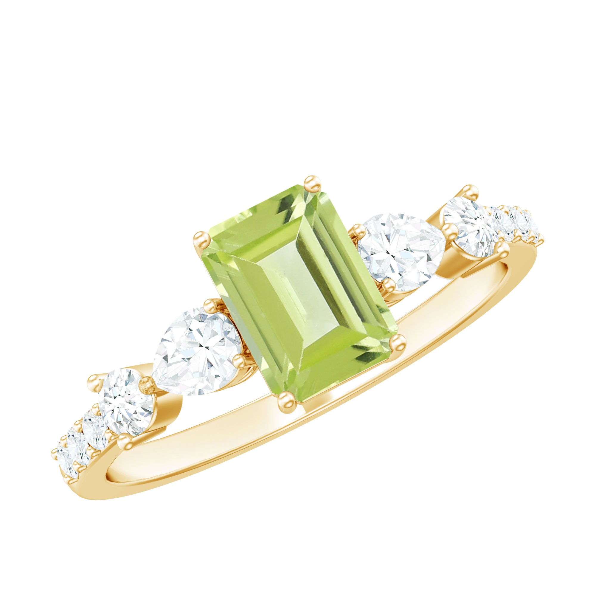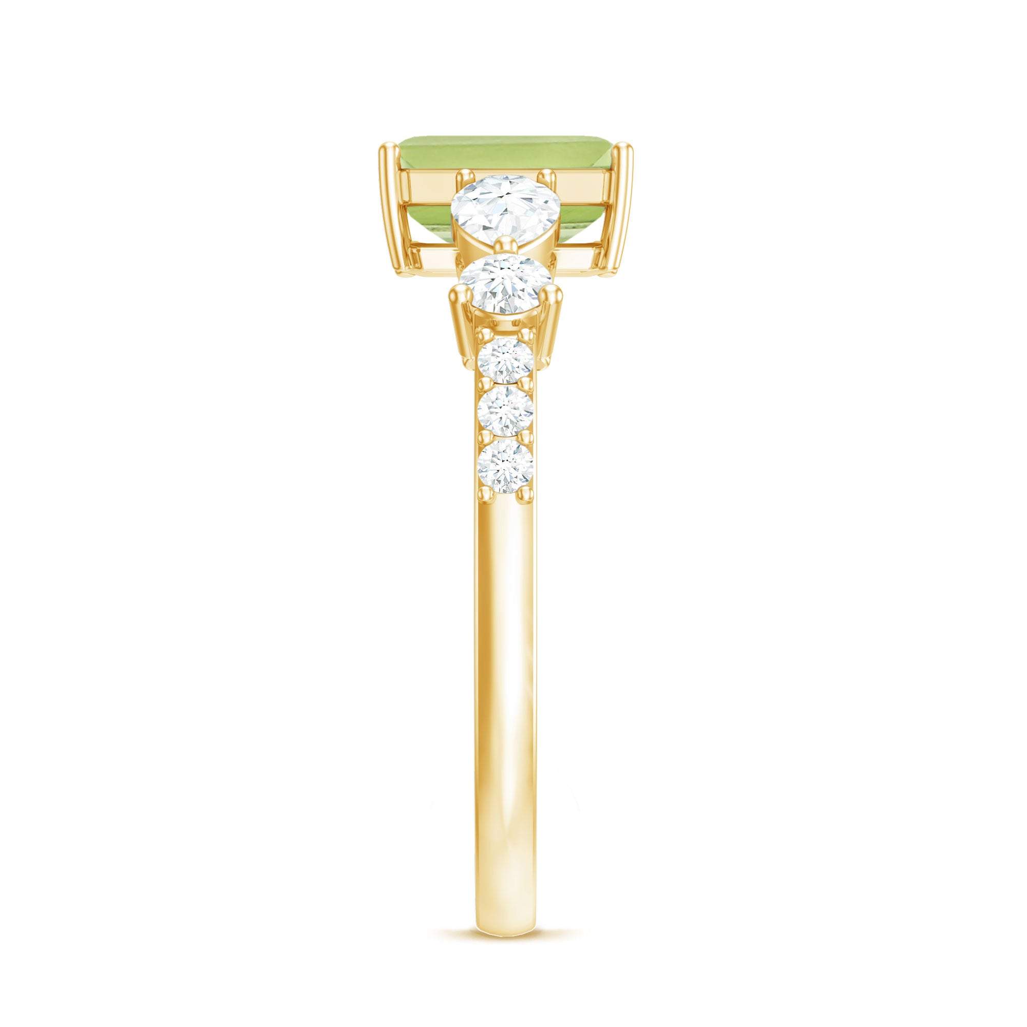 Classic Peridot Solitaire Ring with Moissanite Side Stones in Gold