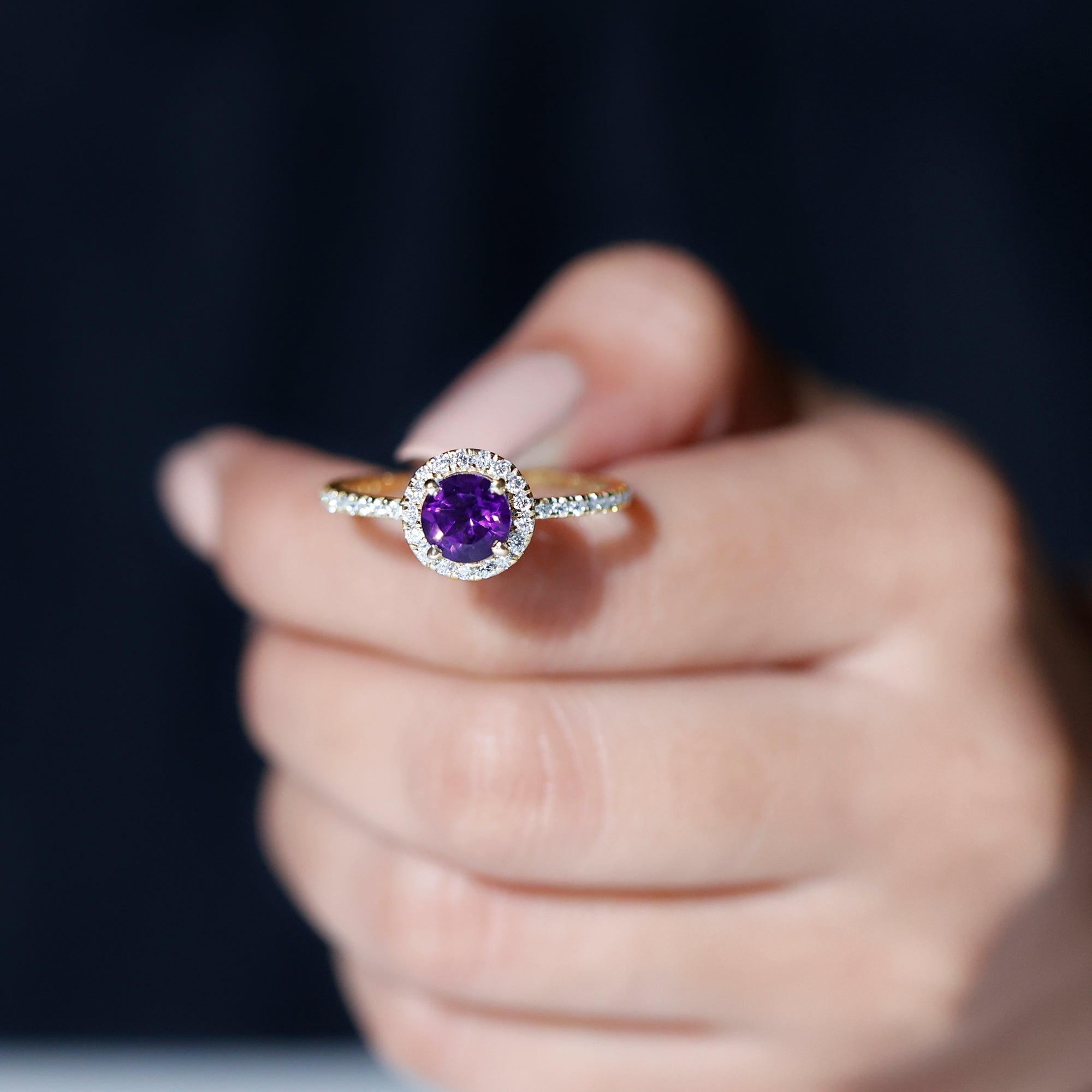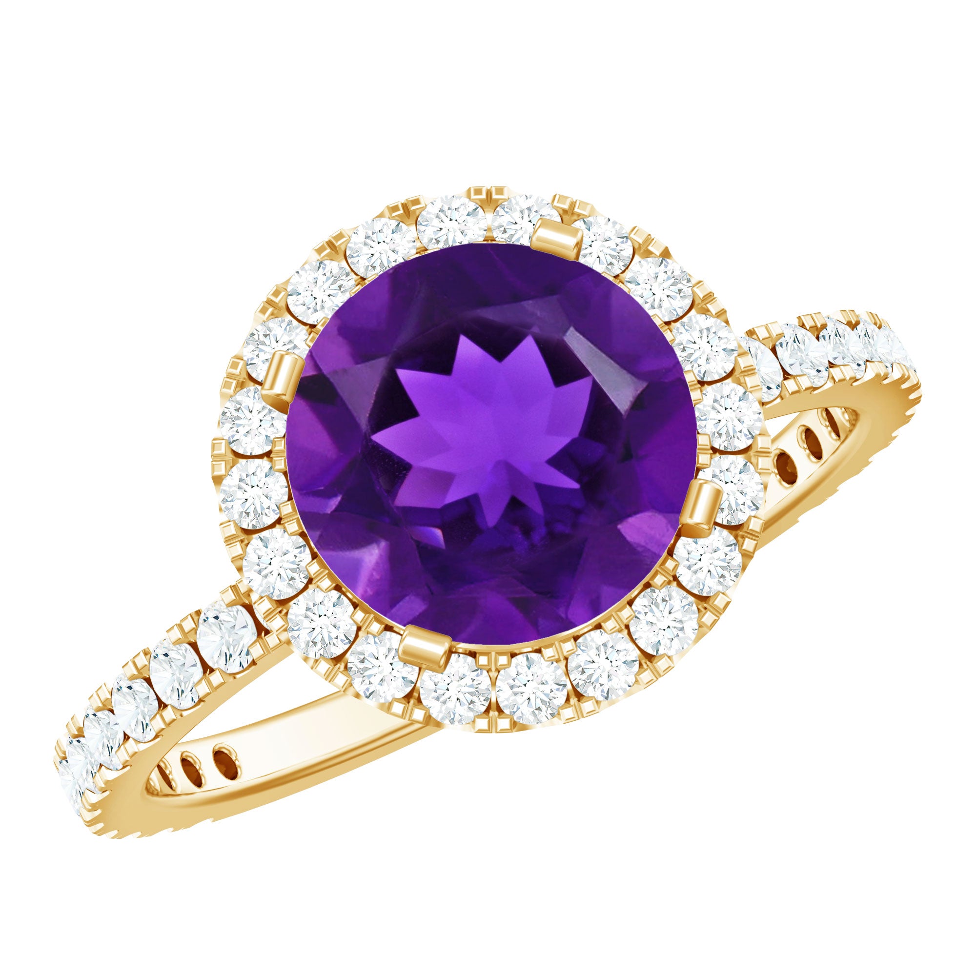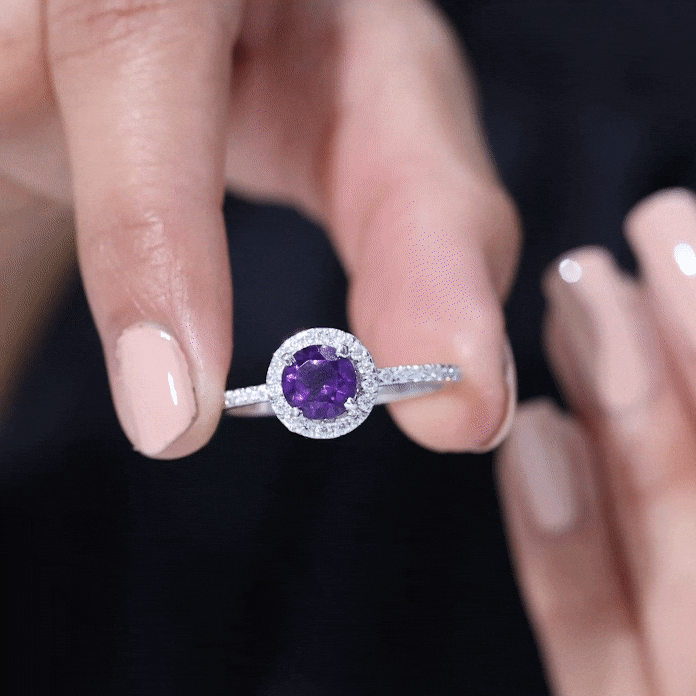 Classic Round Amethyst Engagement Ring with Moissanite Halo