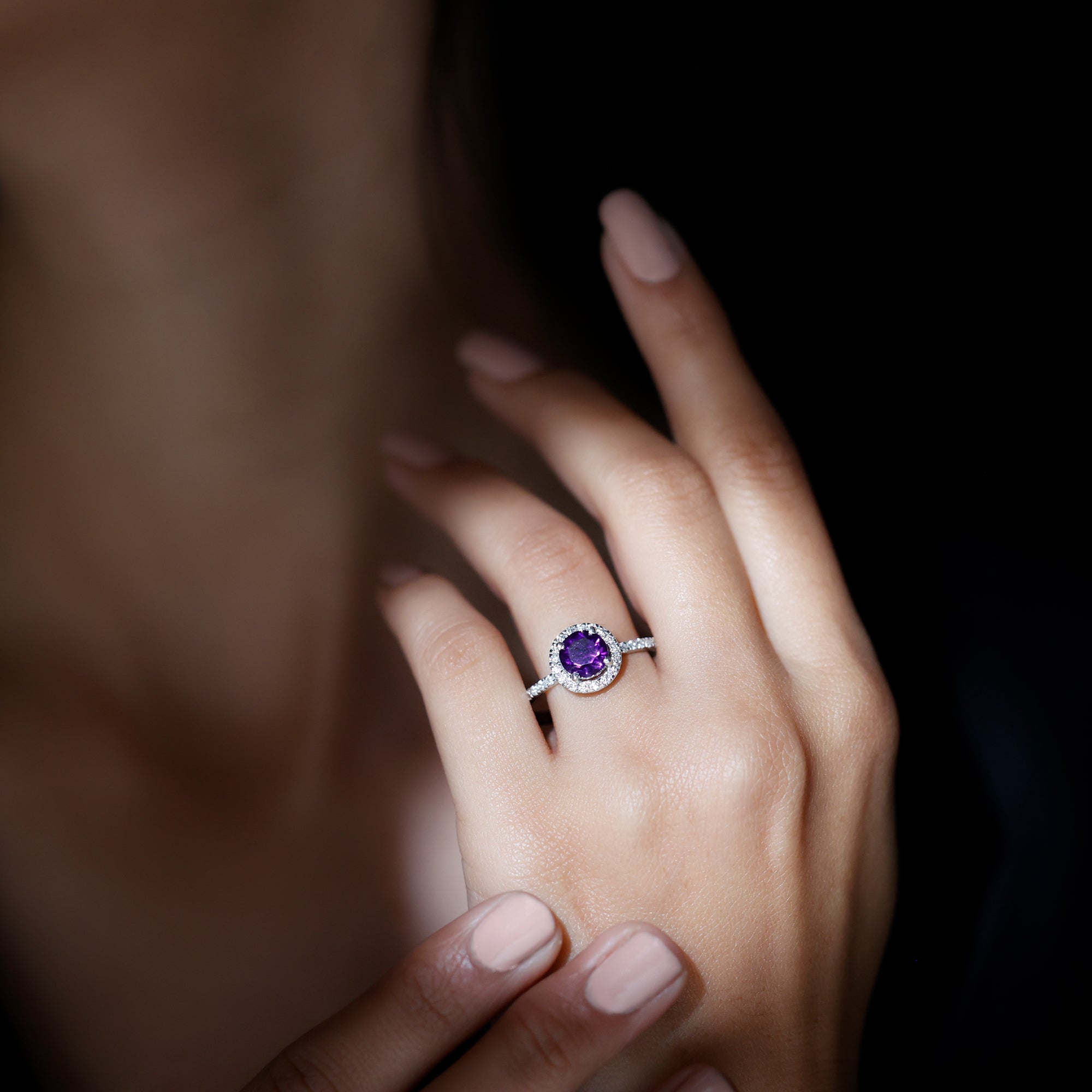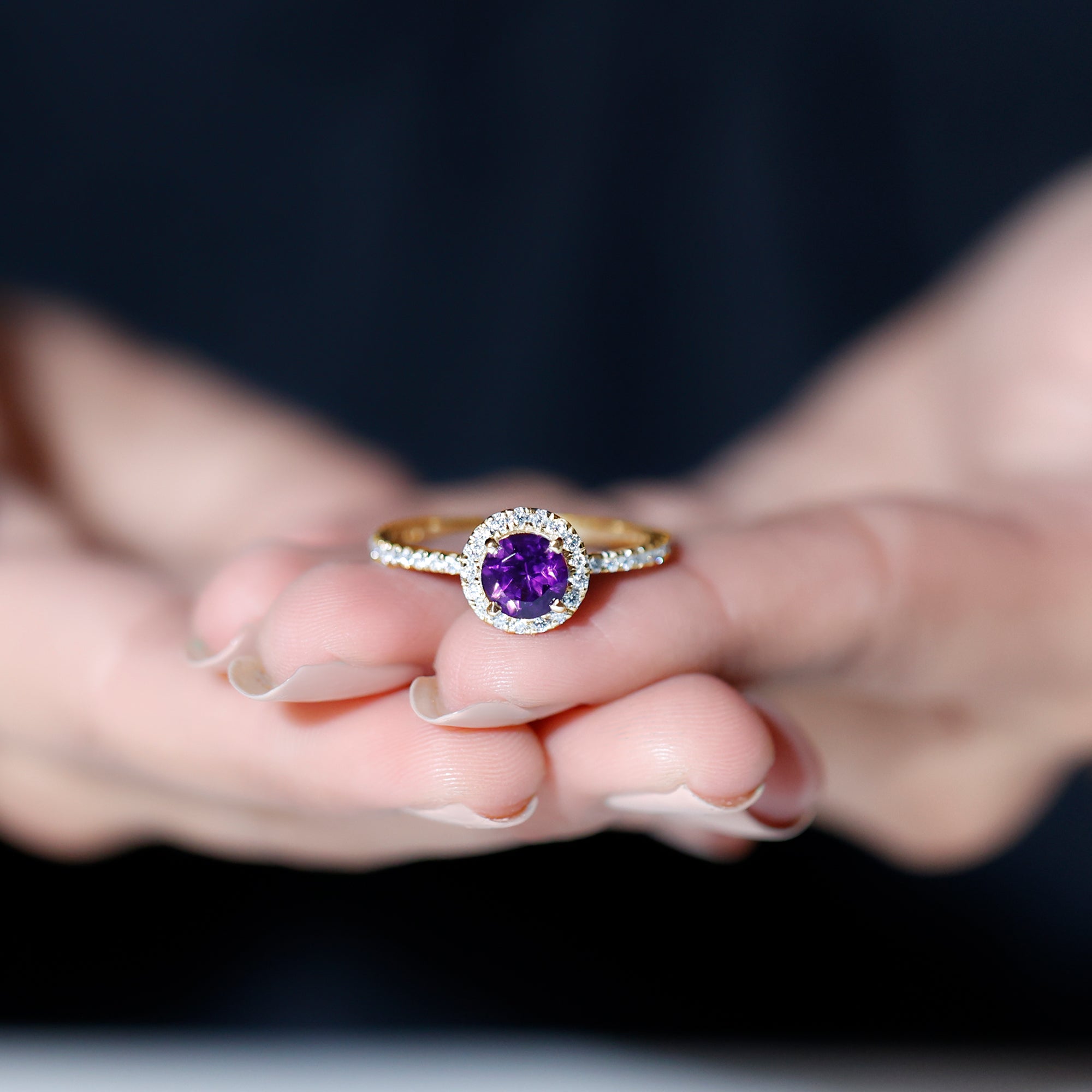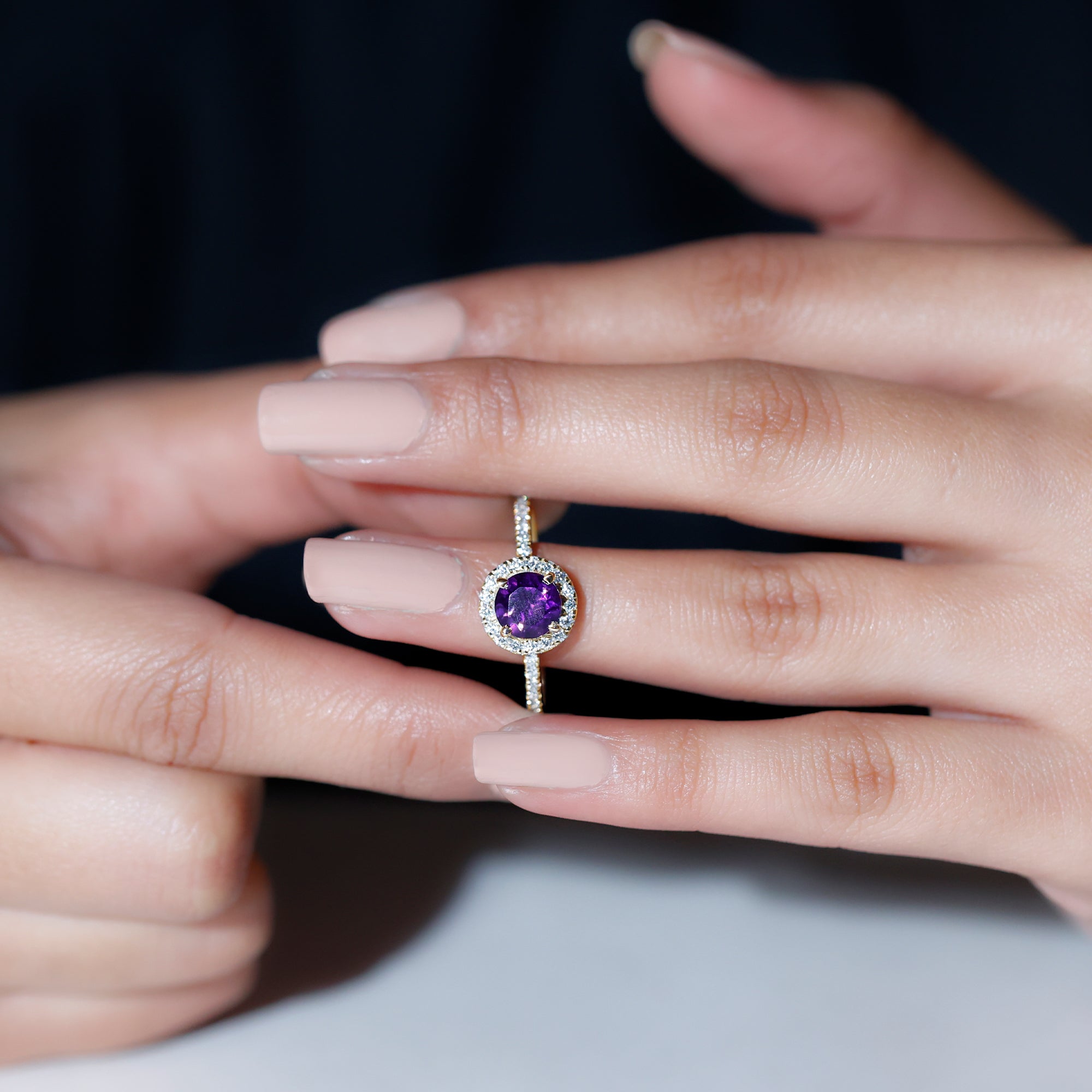 Classic Round Amethyst Engagement Ring with Moissanite Halo
