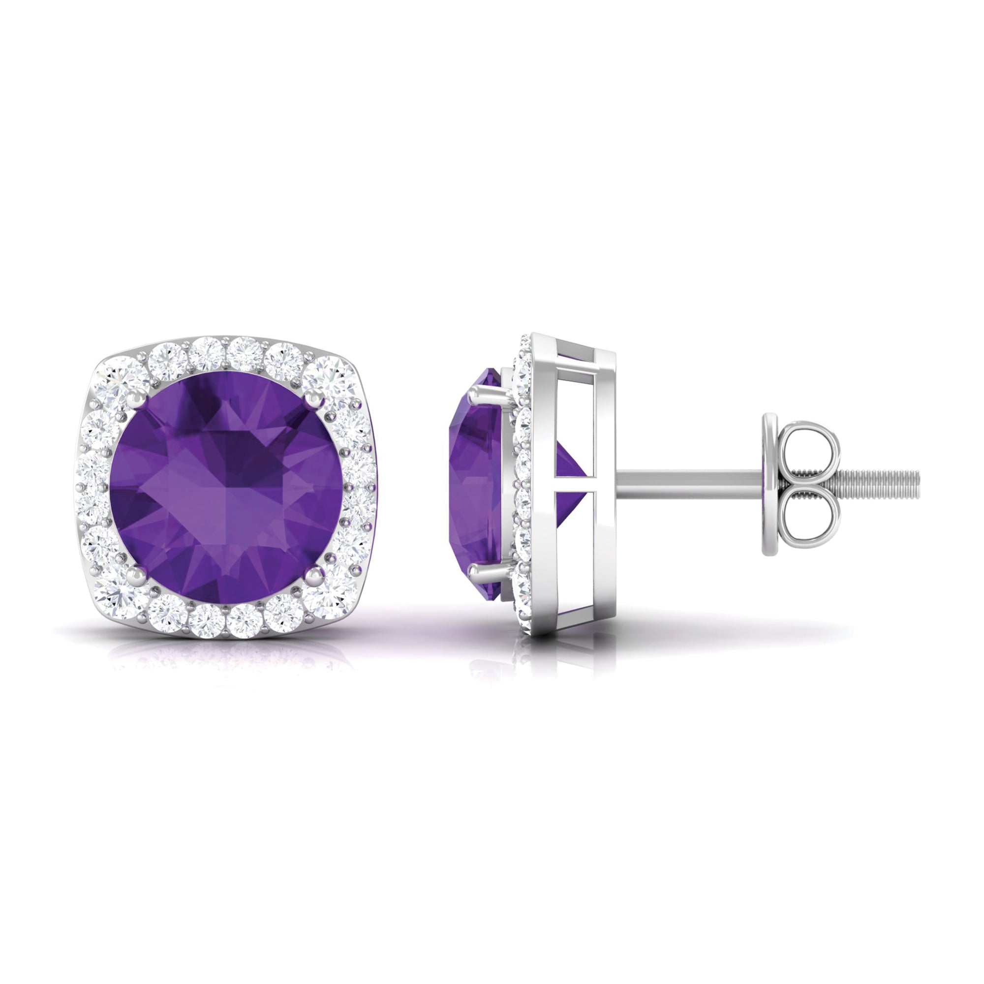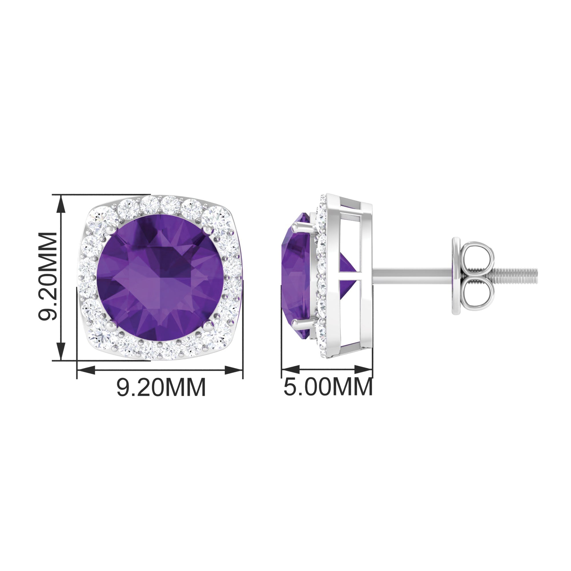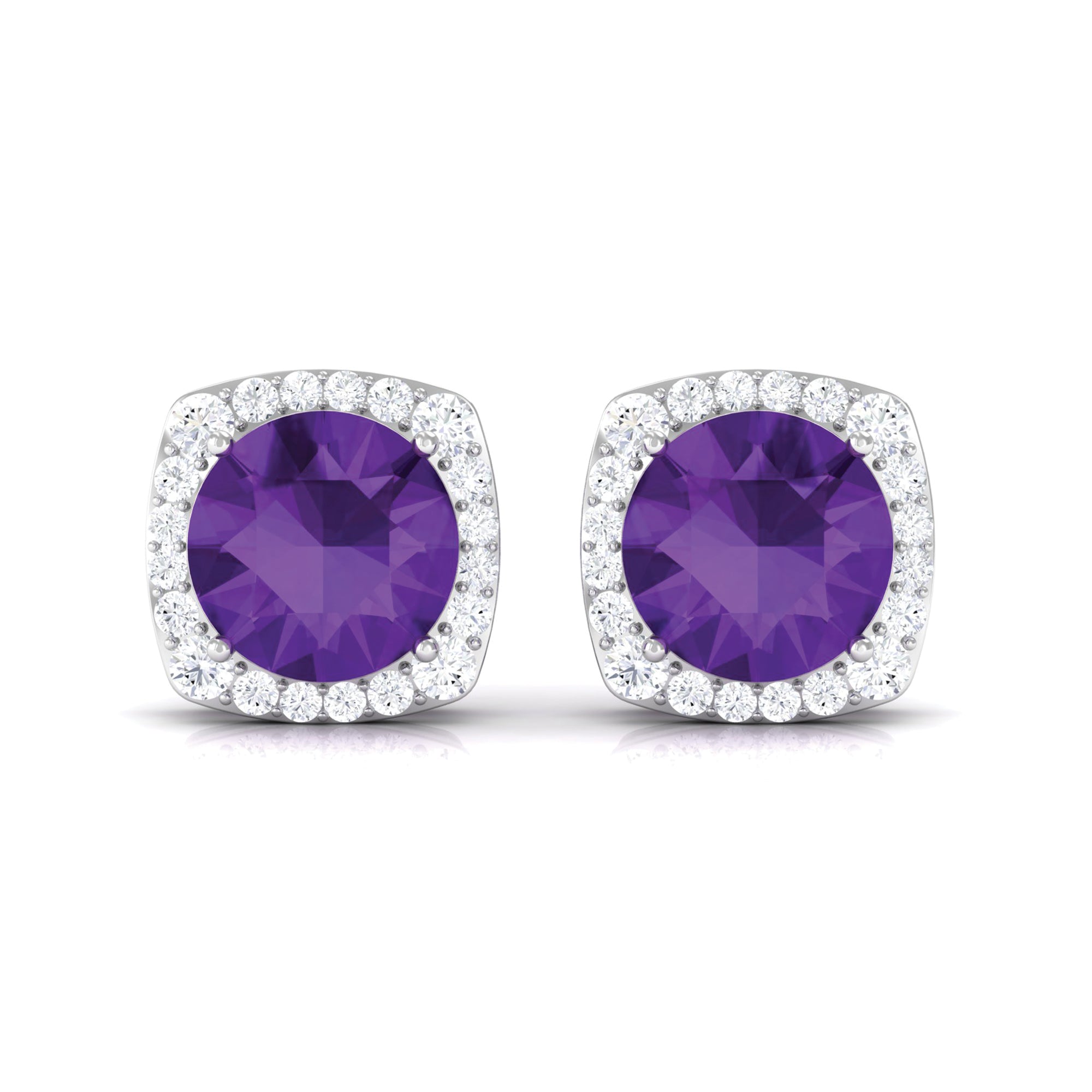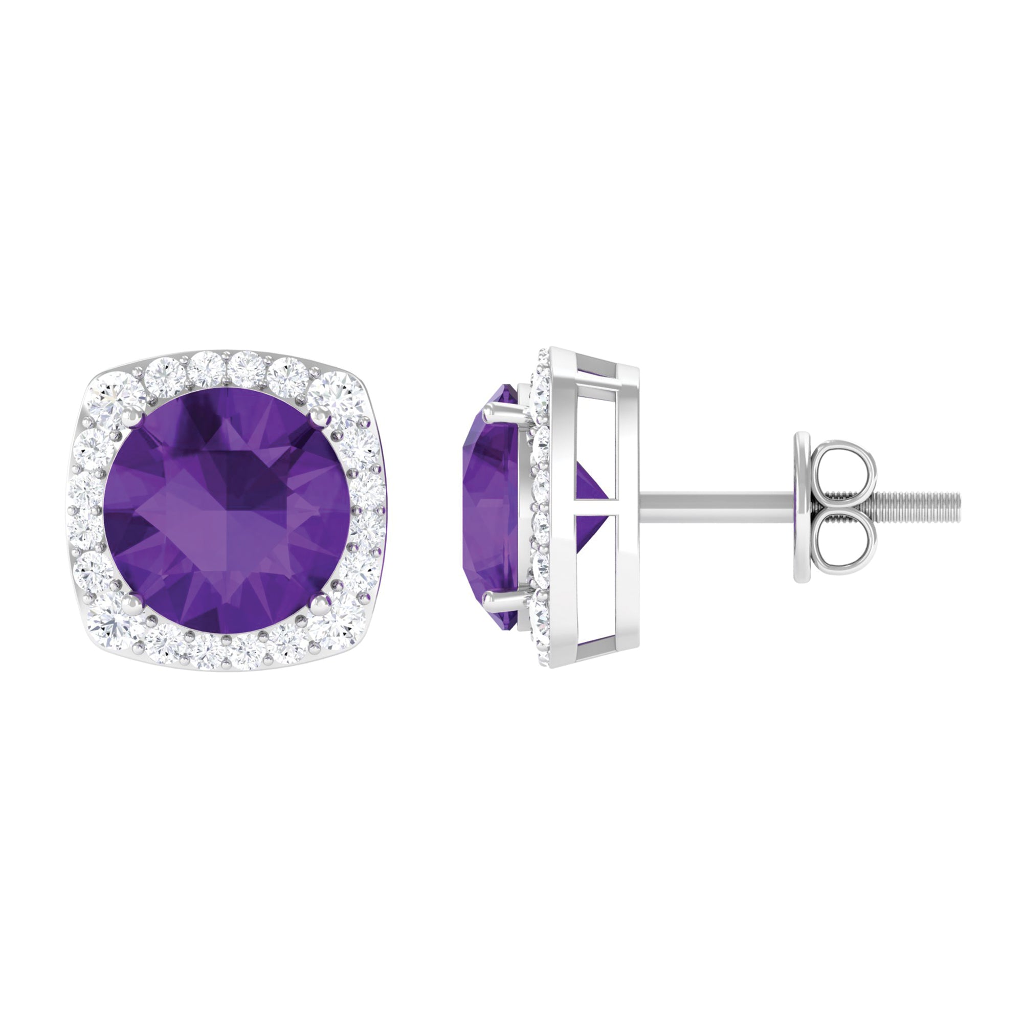 Classic Round Amethyst Halo Stud Earrings with Diamond
