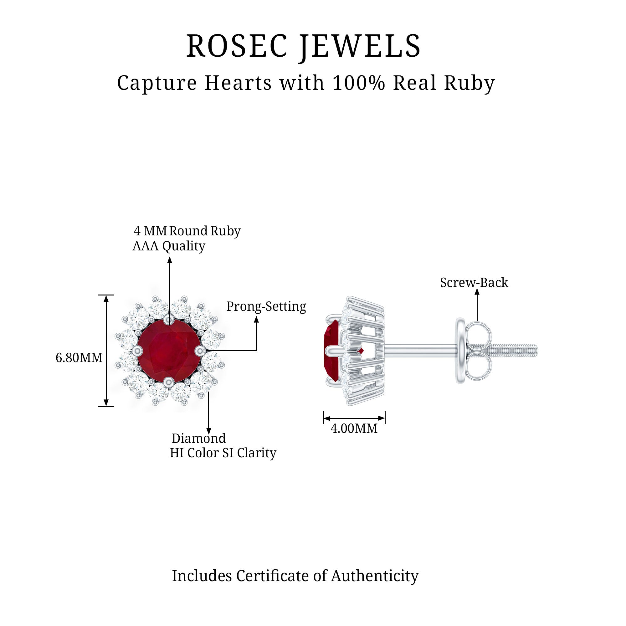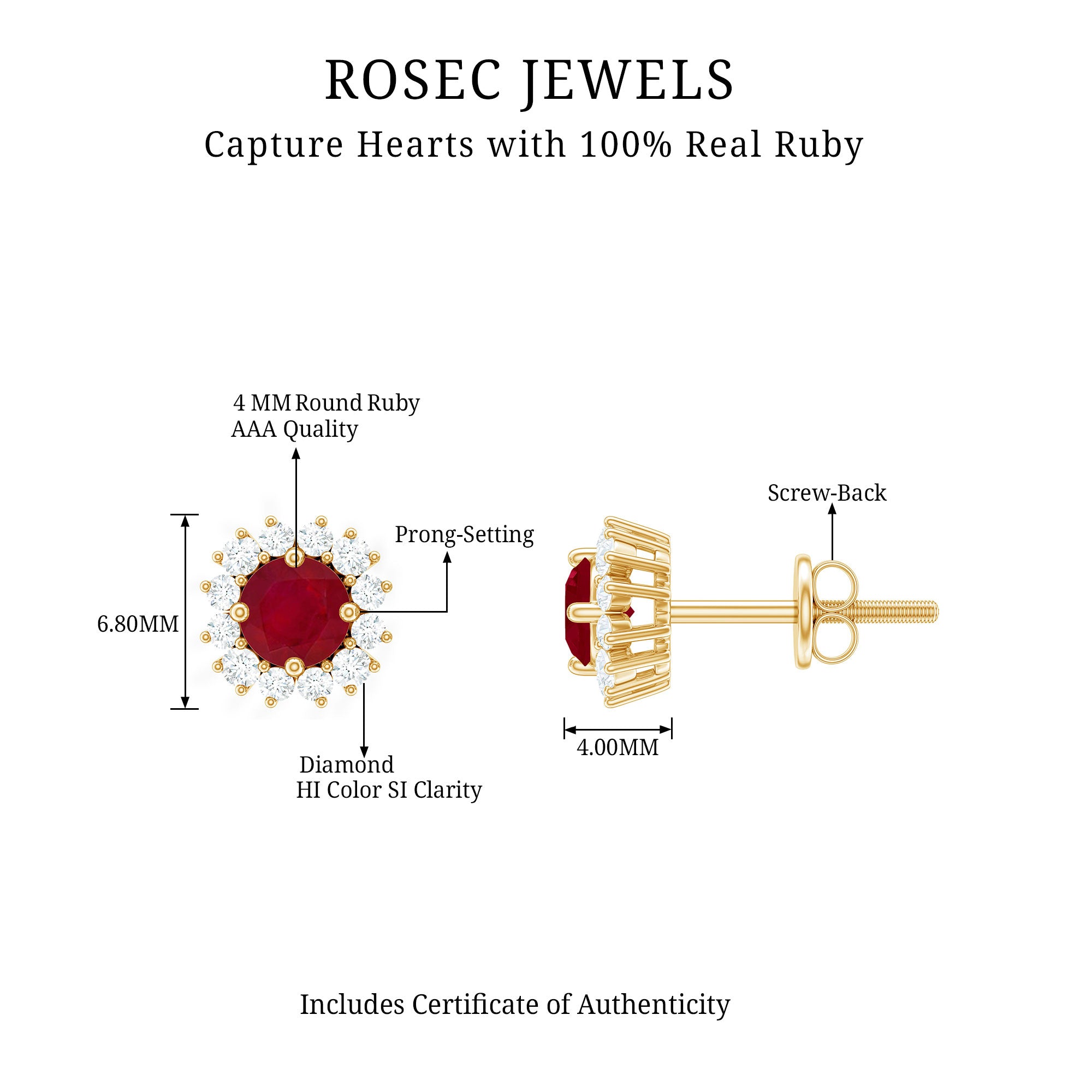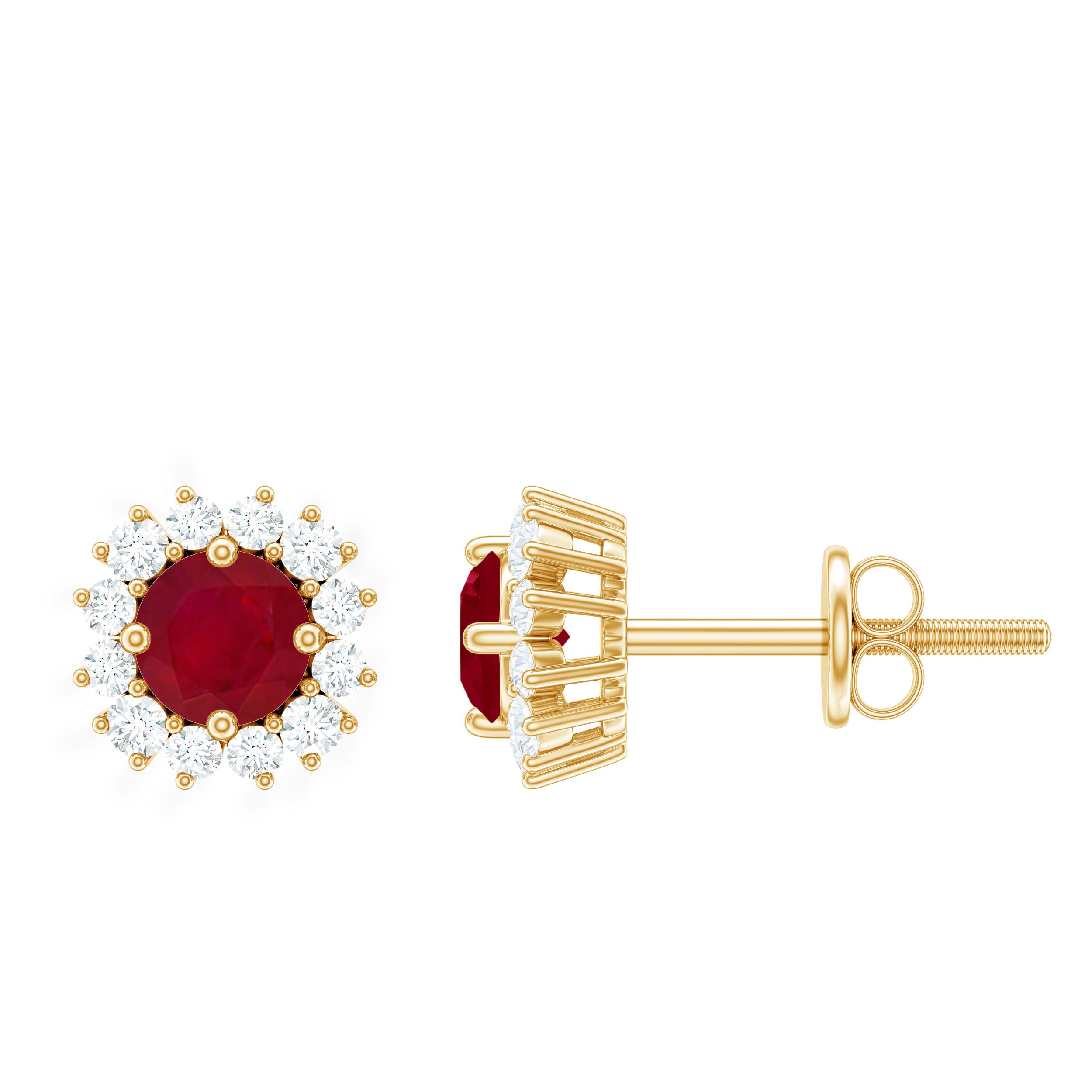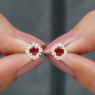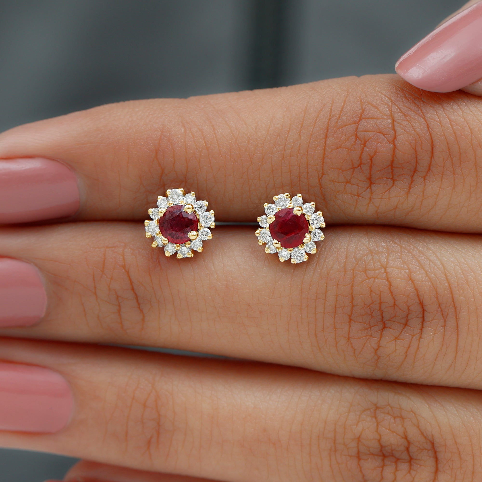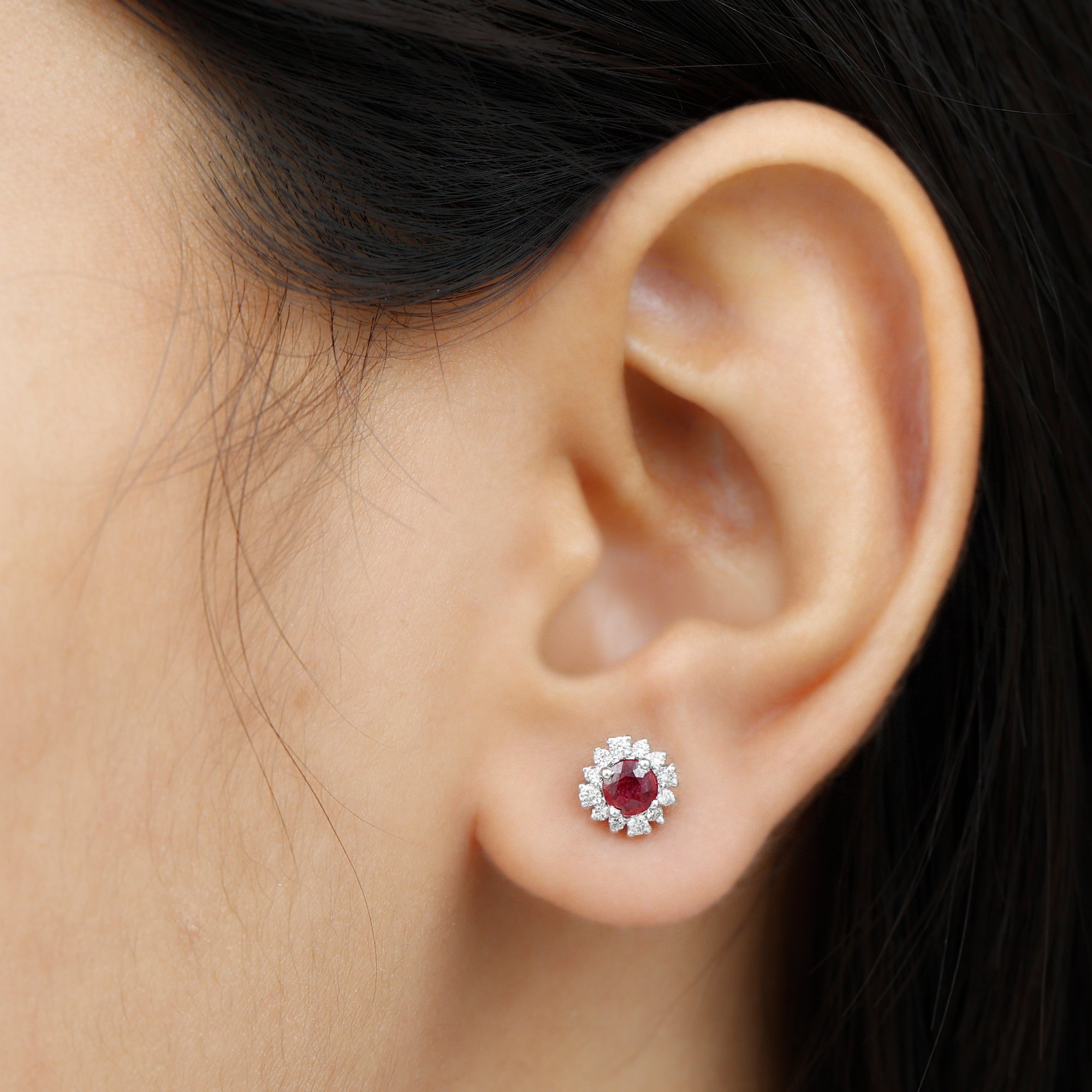 Introducing the exquisite creation designed exclusively for women: the Classic Earrings. These earrings feature a captivating round-cut ruby at the center, elegantly enhanced by accent settings adorned with round-cut Diamond stones. This timeless piece is a perfect blend of sophistication and beauty, sure to make a statement on any occasion.