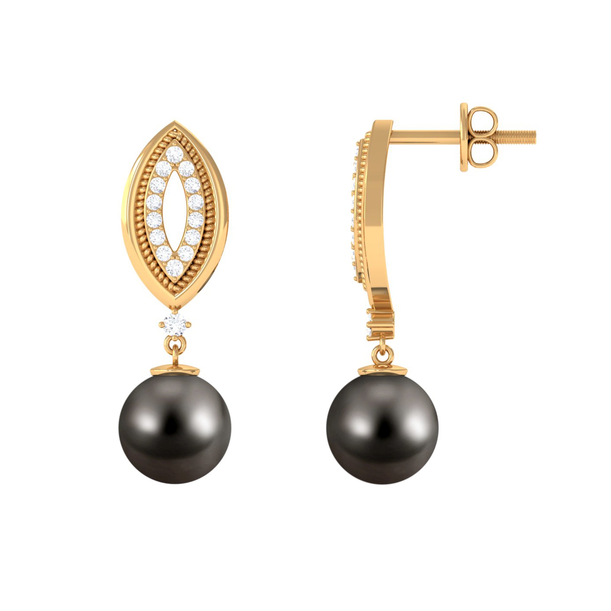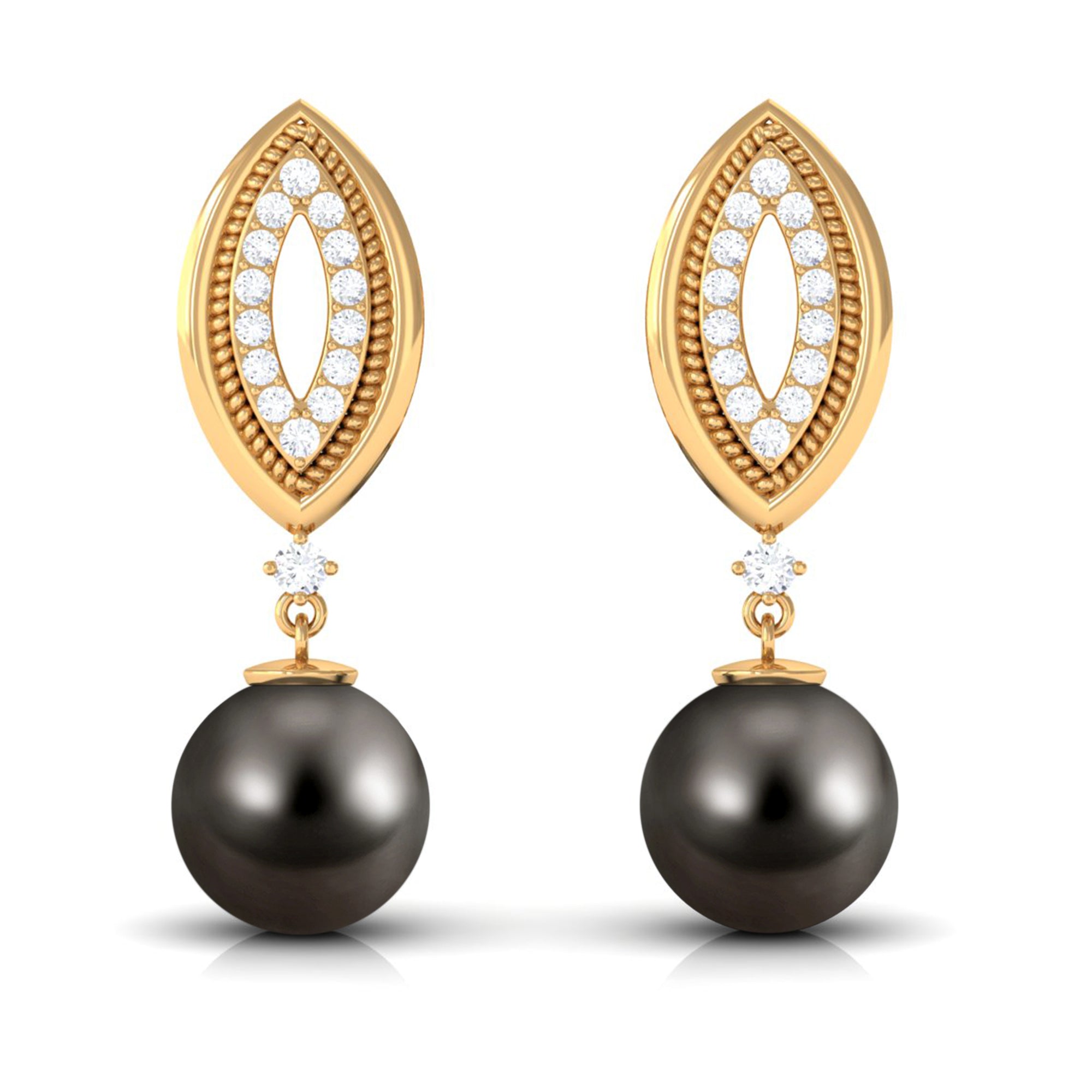 These Drop Earrings are a perfect choice for you. Embellished with a Round Shape Tahitian Pearl hanging as a drop while Round Diamonds accentuates its design and would instantly make you feel and look even prettier than you are. Glam up your looks with these Tahitian Pearl Earrings. Whether youre dressed up or down youll definitely steal all the attention.