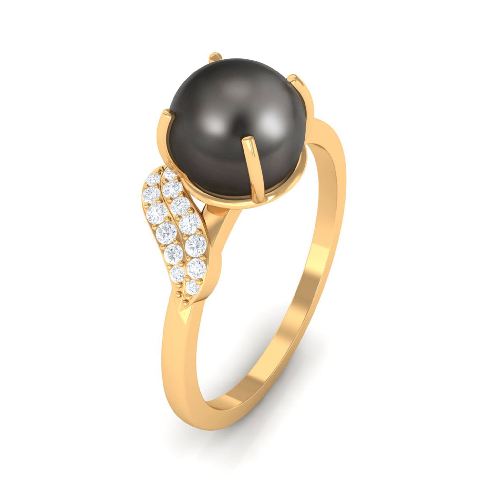 Light up her universe with this dazzling Tahitian Pearl Engagement Ring that sparkles like crazy. This absolutely stunning Tahitian Pearl and Diamond Engagement Ring will make her fall in love all over again. The Bliss features a gorgeous round shape tahitian pearl set as solitaire and Round Shape Diamond in a leaf pattern.