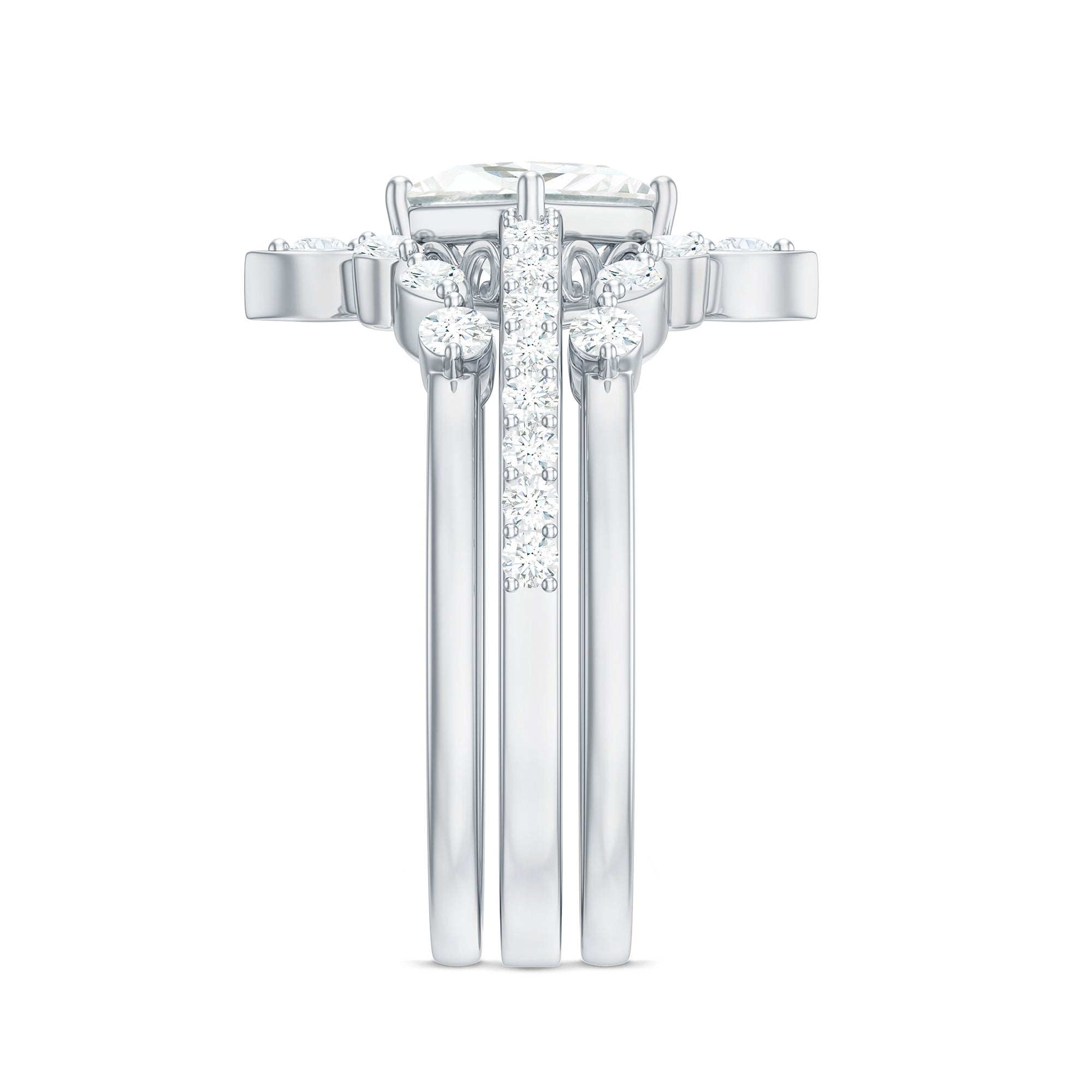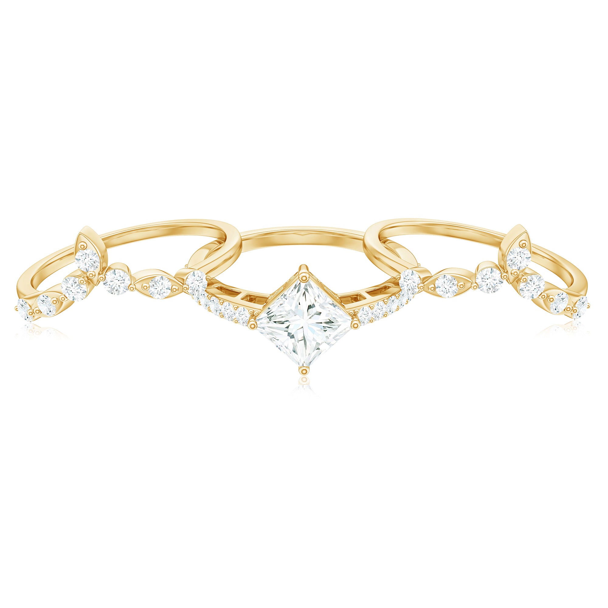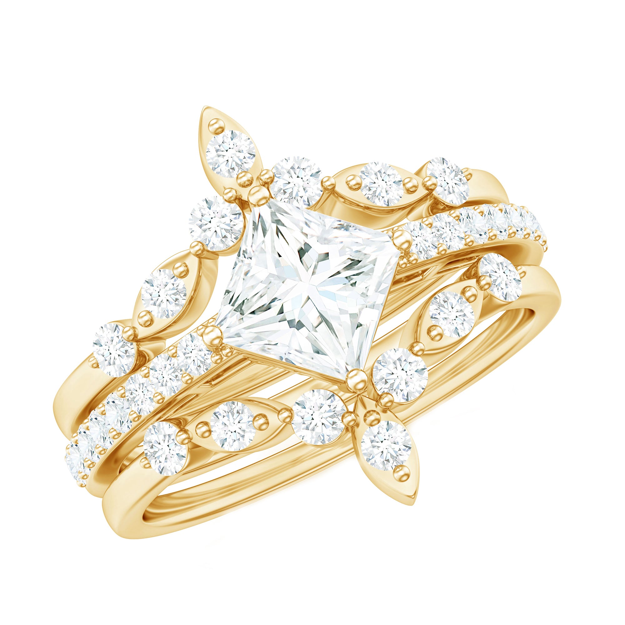 Classic Trio Bridal Ring Set with Princess and Round Cut Moissanites