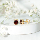 These Garnet Stud Earrings are absolutely stunning. Step up your accessory game with these Everyday Studs, where elegance meets a splash of color. These beautiful earrings are made from yellow gold plated silver and feature 6 MM round cut natural garnet in a claw setting. These Screw Back Earrings embody the essence of sophistication and exude a straightforward yet classy vibe, adding warmth and color to your look. Boost your style with these Red Garnet Earrings that will help you shine in a crowd. The rich red tone of AAA Quality Garnet radiates every sparkle and is a classic choice that never fades away. Even with their simplicity, these January Birthstone Earrings showcase the charm and importance of garnet, making them perfect for effortless elegance.