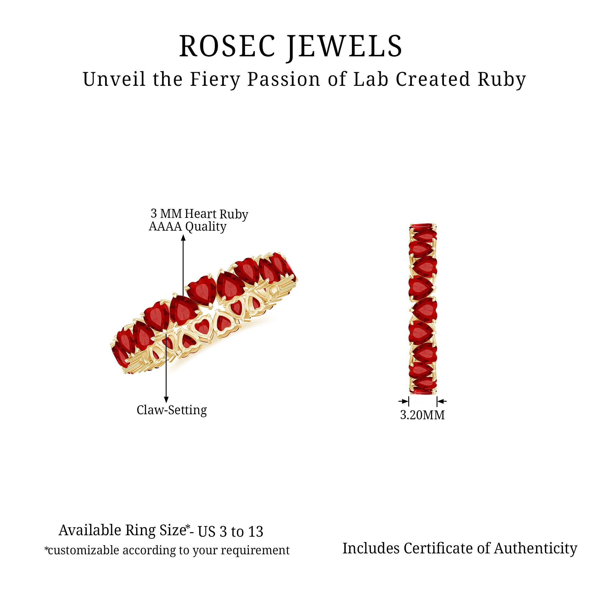 Claw Set Created Ruby Heart Eternity Band Ring in Gold