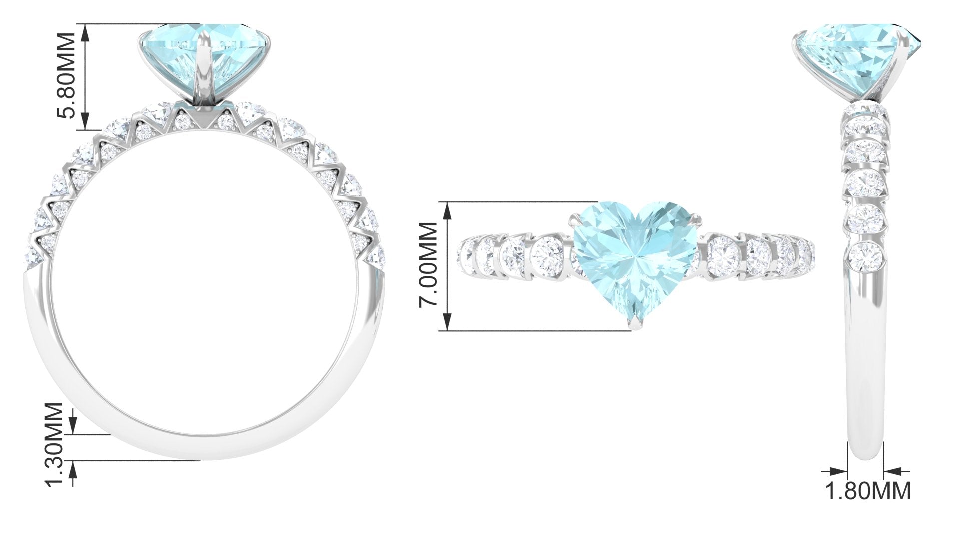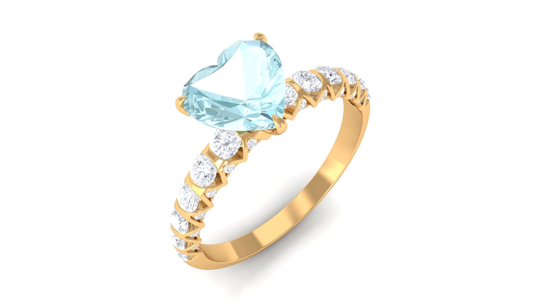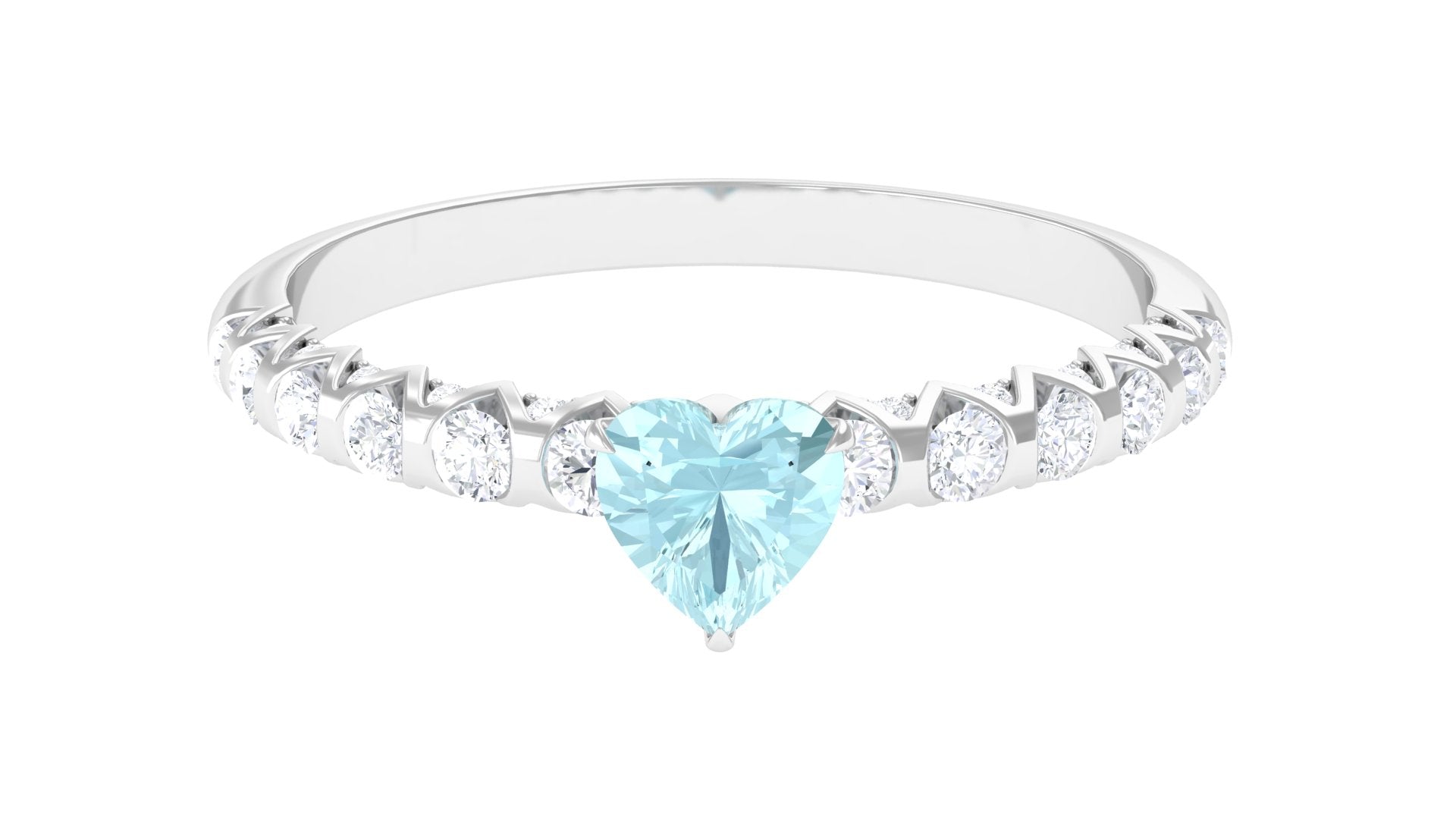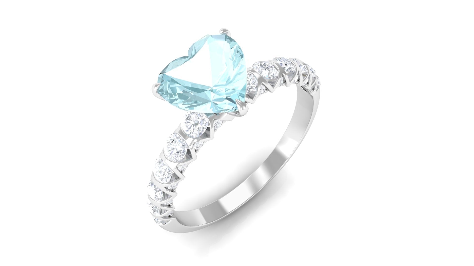 Claw Set Heart Sky Blue Topaz and Diamond Engagement Ring