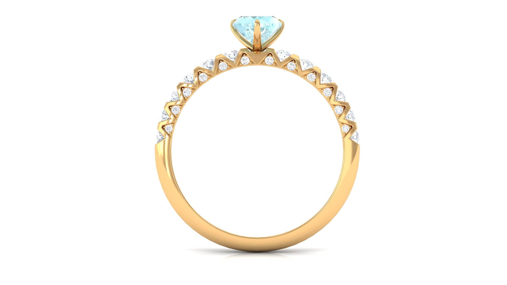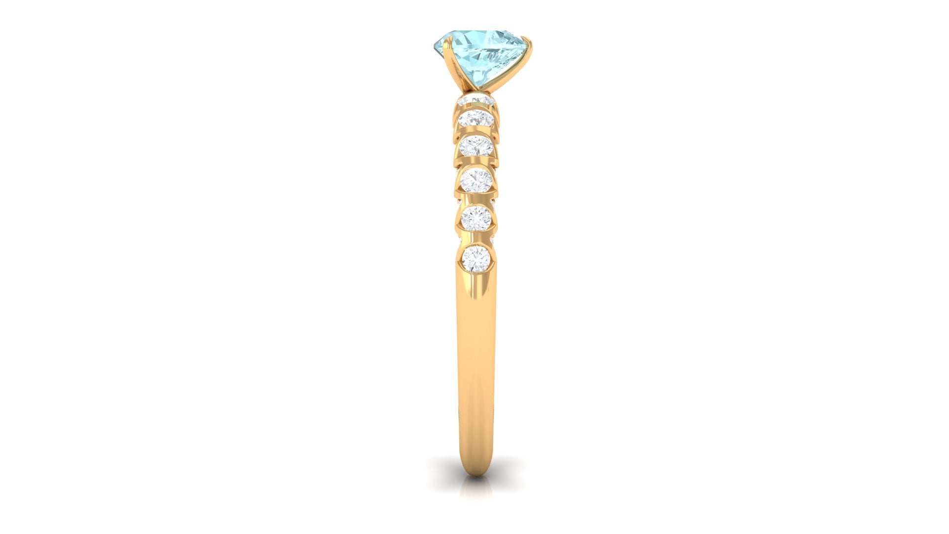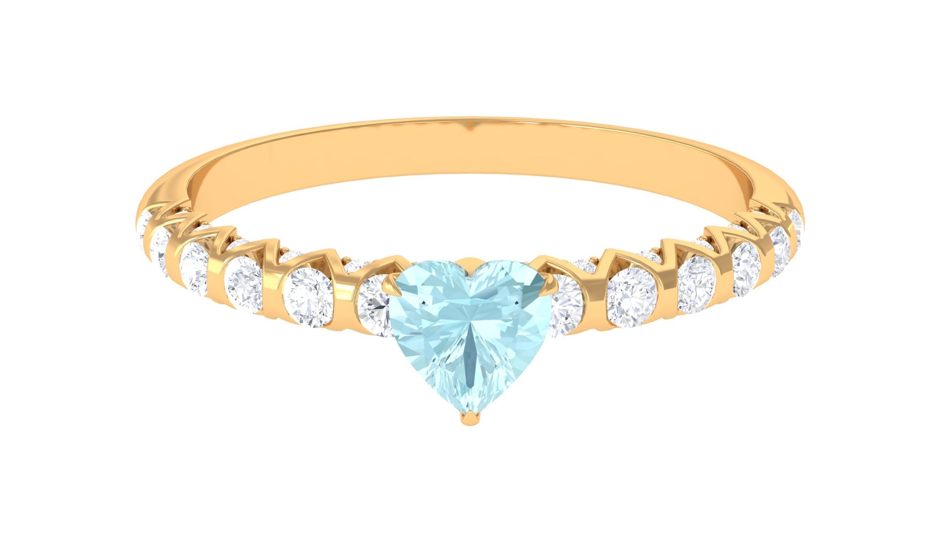This Heart Engagement Ring is designed in vintage style embellished with Heart Shape Sky Blue Topaz set as a Solitaire in a claw setting and round shape Diamond in the half bezel setting exceptionally for you.