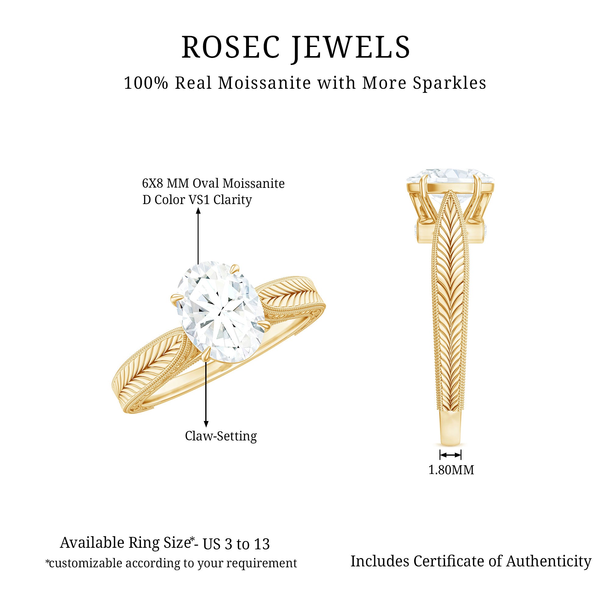 6X8mm Oval Cut Moissanite Vintage Looking Engagement Ring