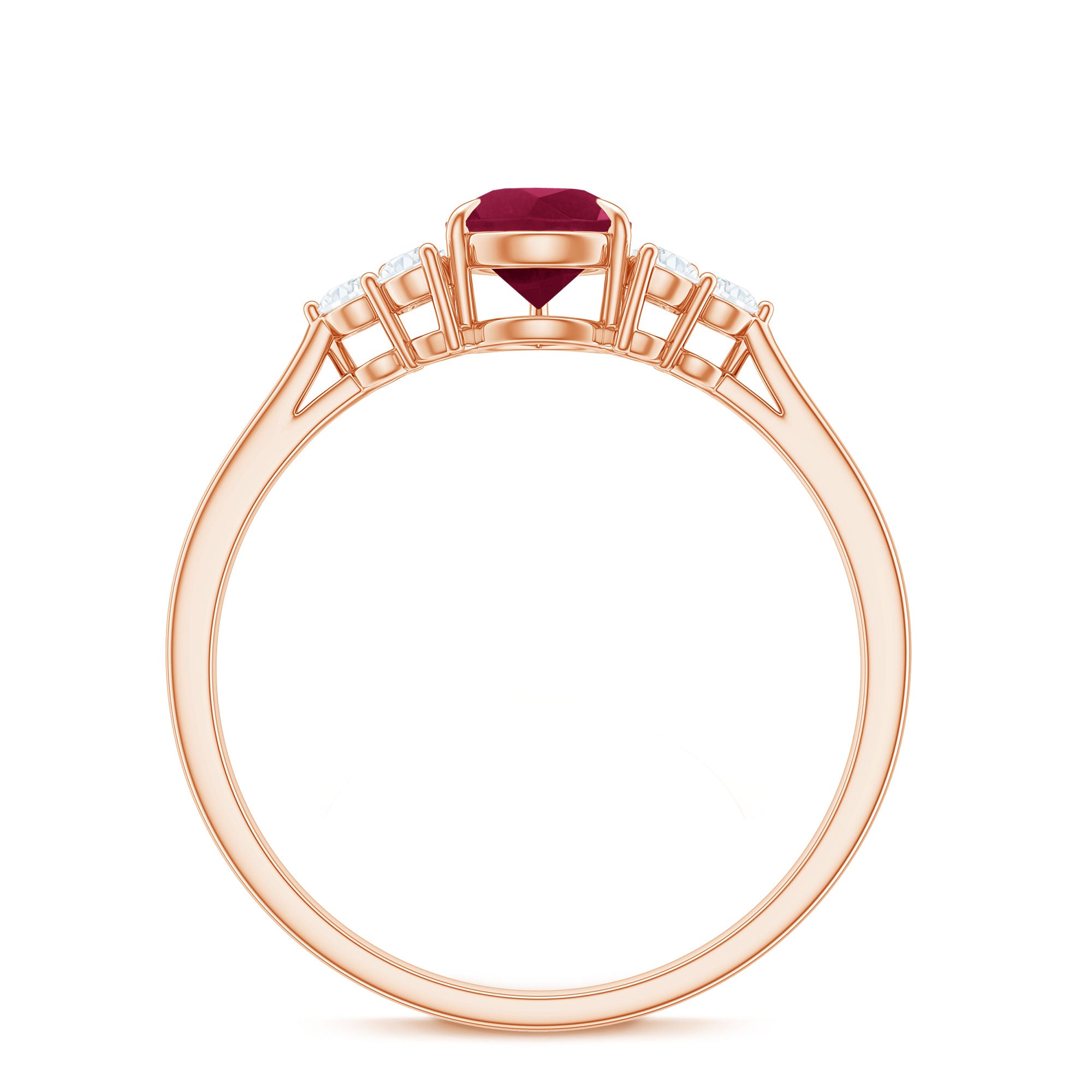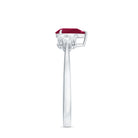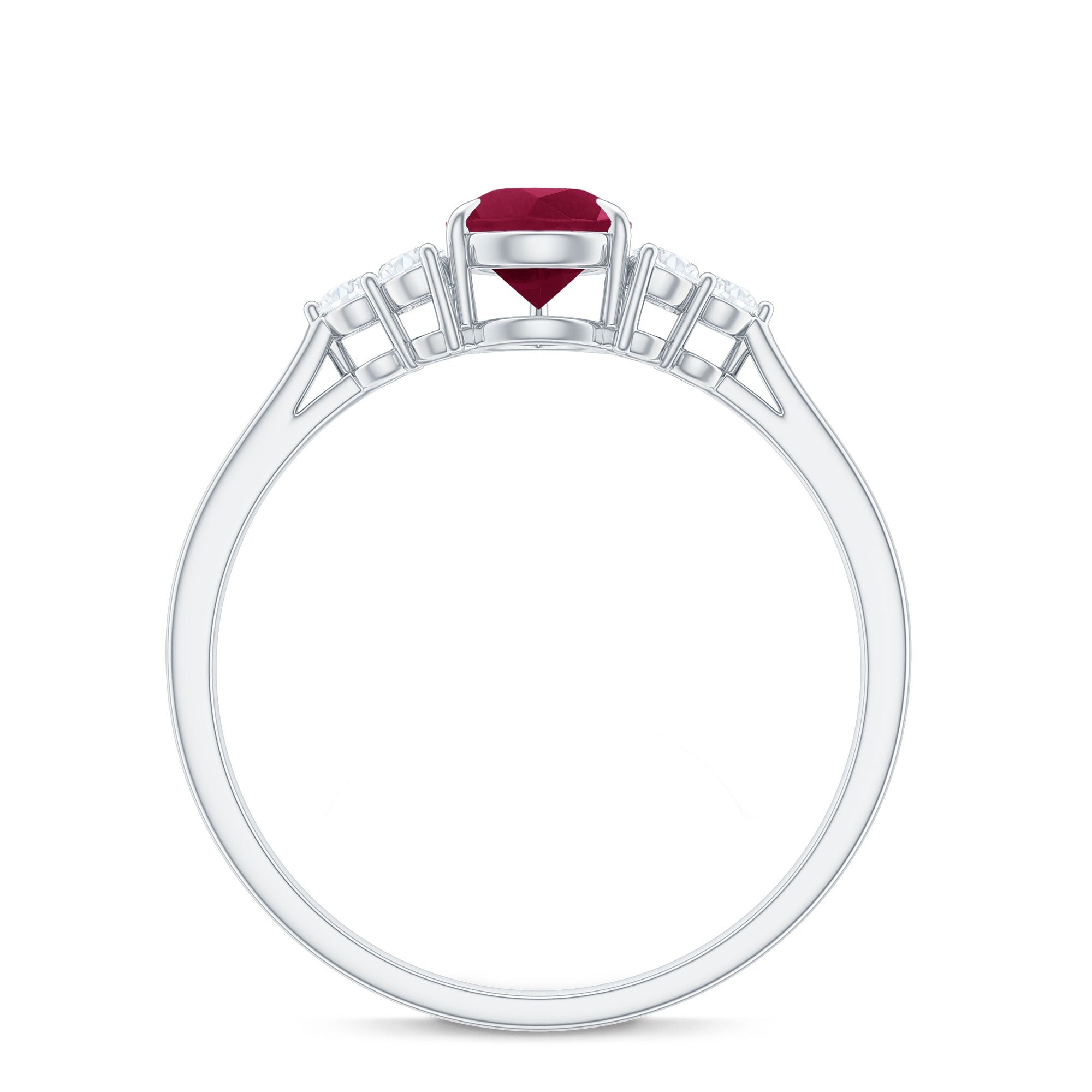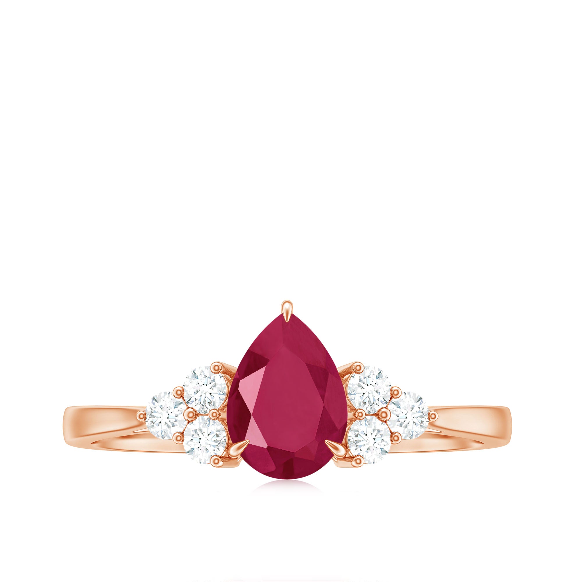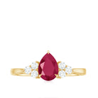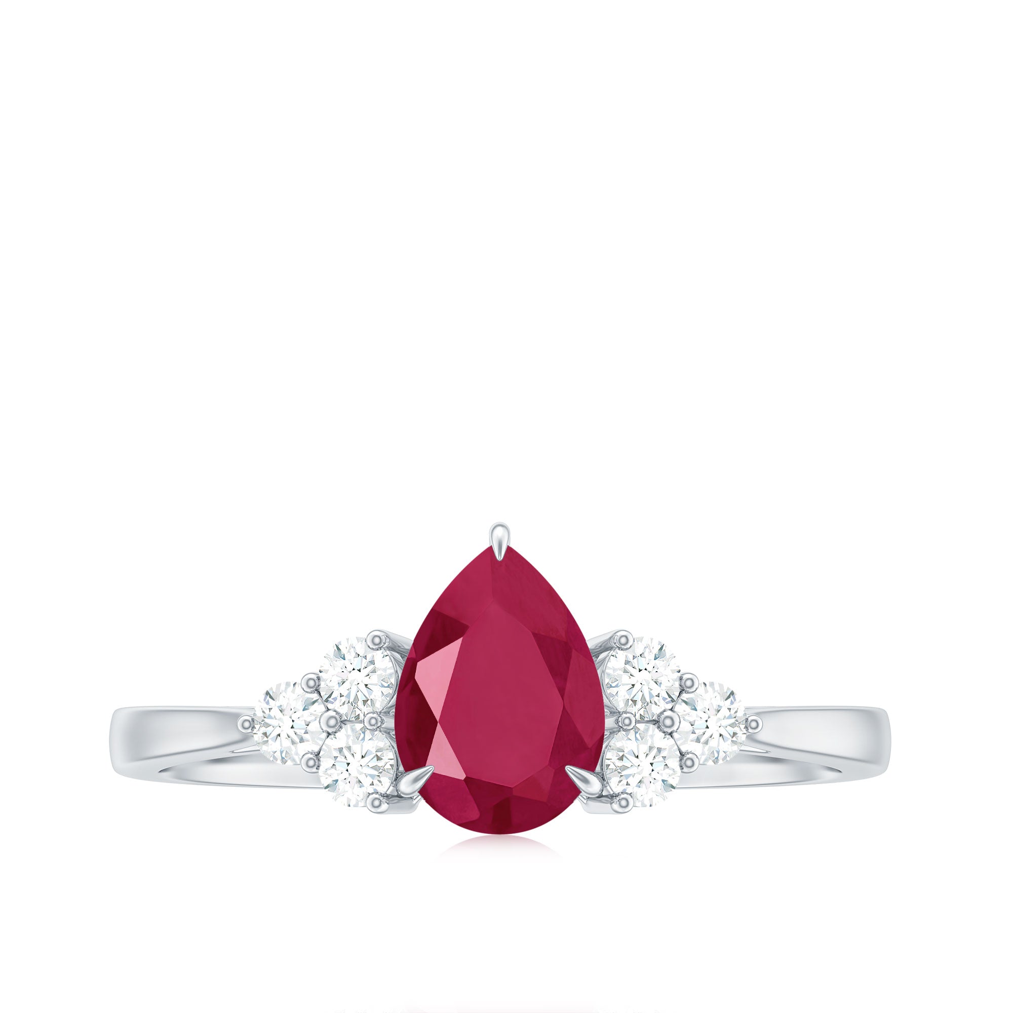 Claw Set Pear Cut Ruby Engagement Ring with Diamond Trio