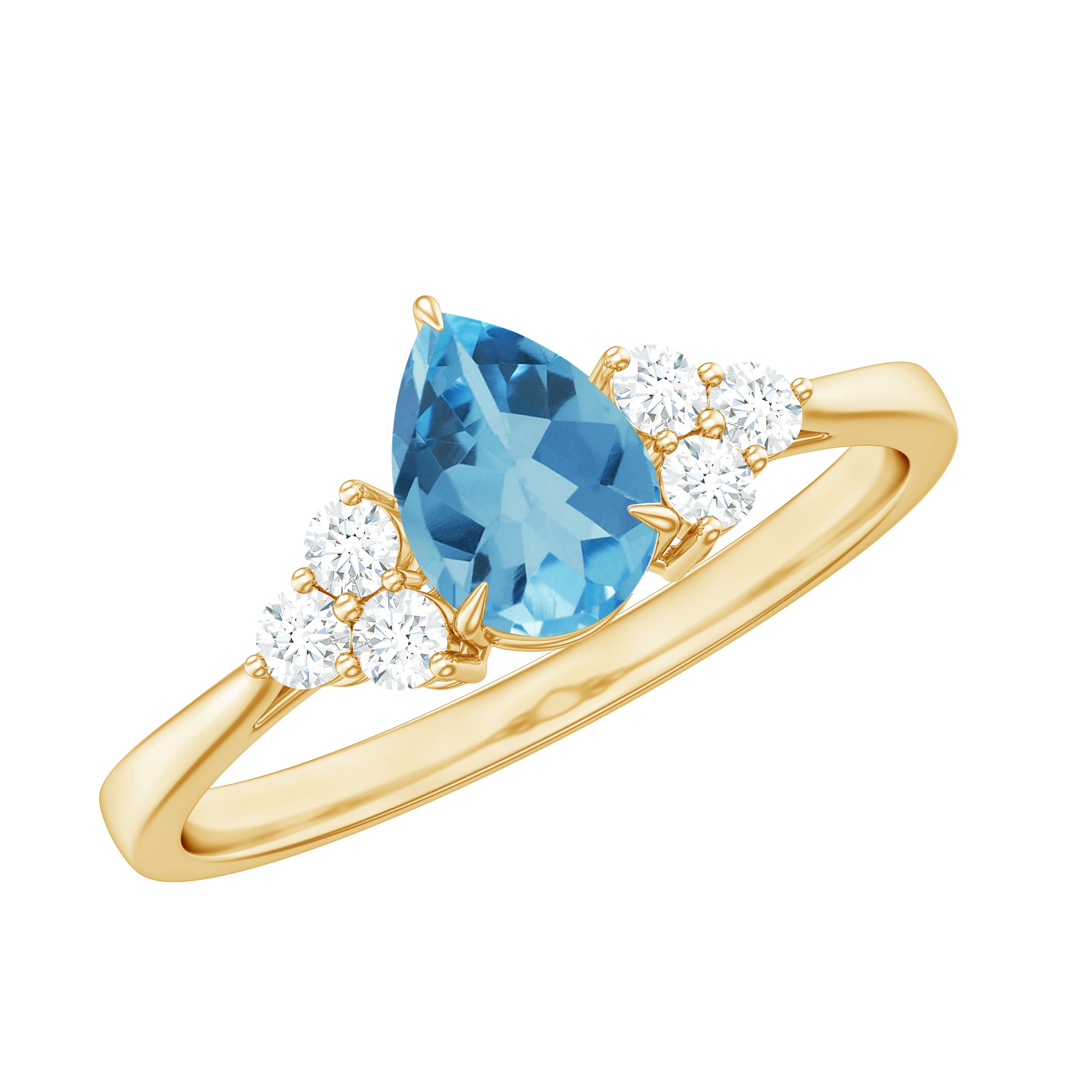 Elevate your style with a pear-cut sky blue topaz solitaire ring, beautifully set in claws and accompanied by a trio of sparkling Diamond stones.
