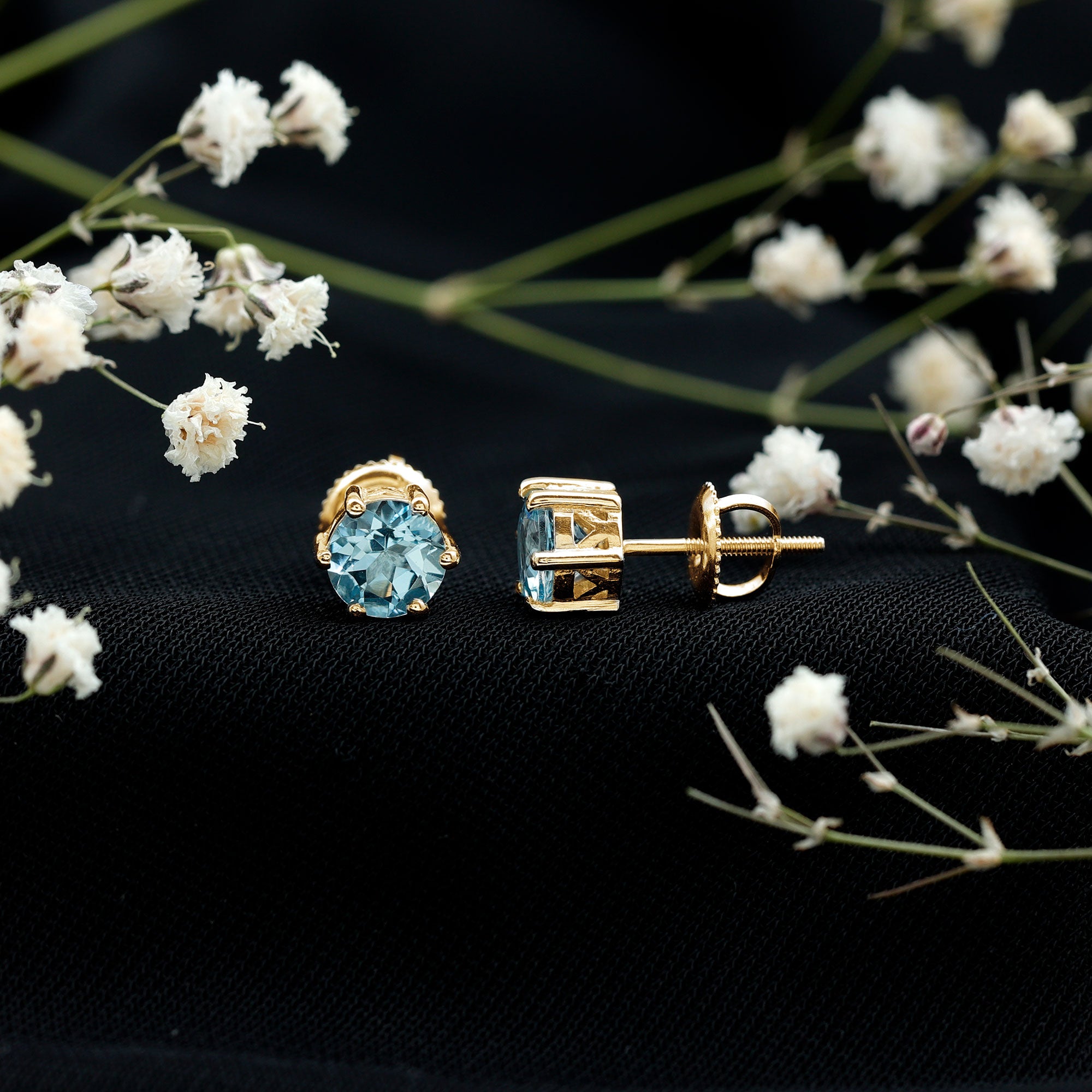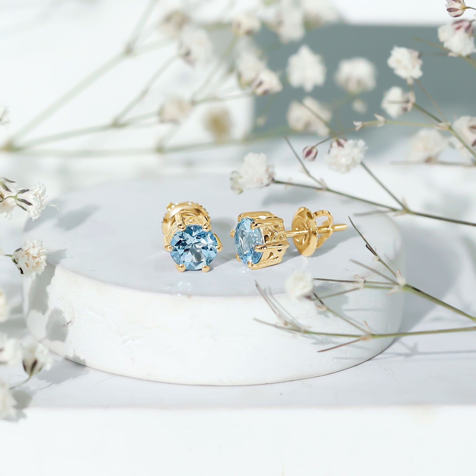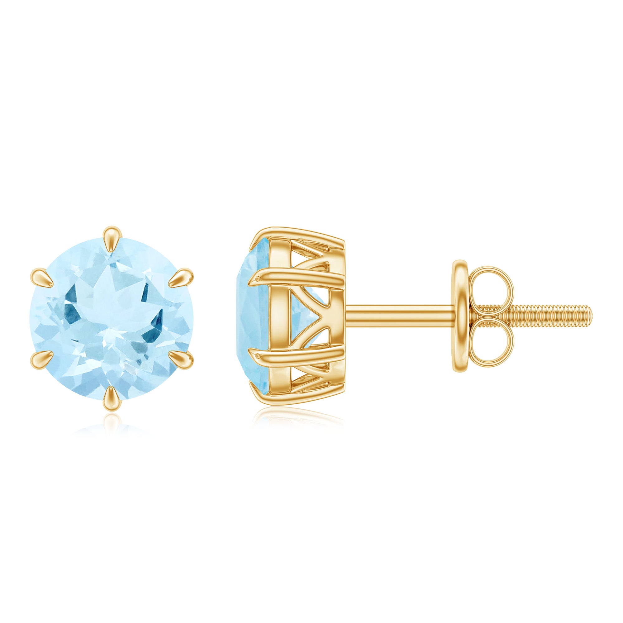 Elevate your style with these stunning Simple Stud Earrings. They make a statement with Round Shape Aquamarine gems, expertly secured in a Claw setting. Perfect for both everyday wear and special occasions, these march birthstone earrings effortlessly capture attention and radiate elegance.