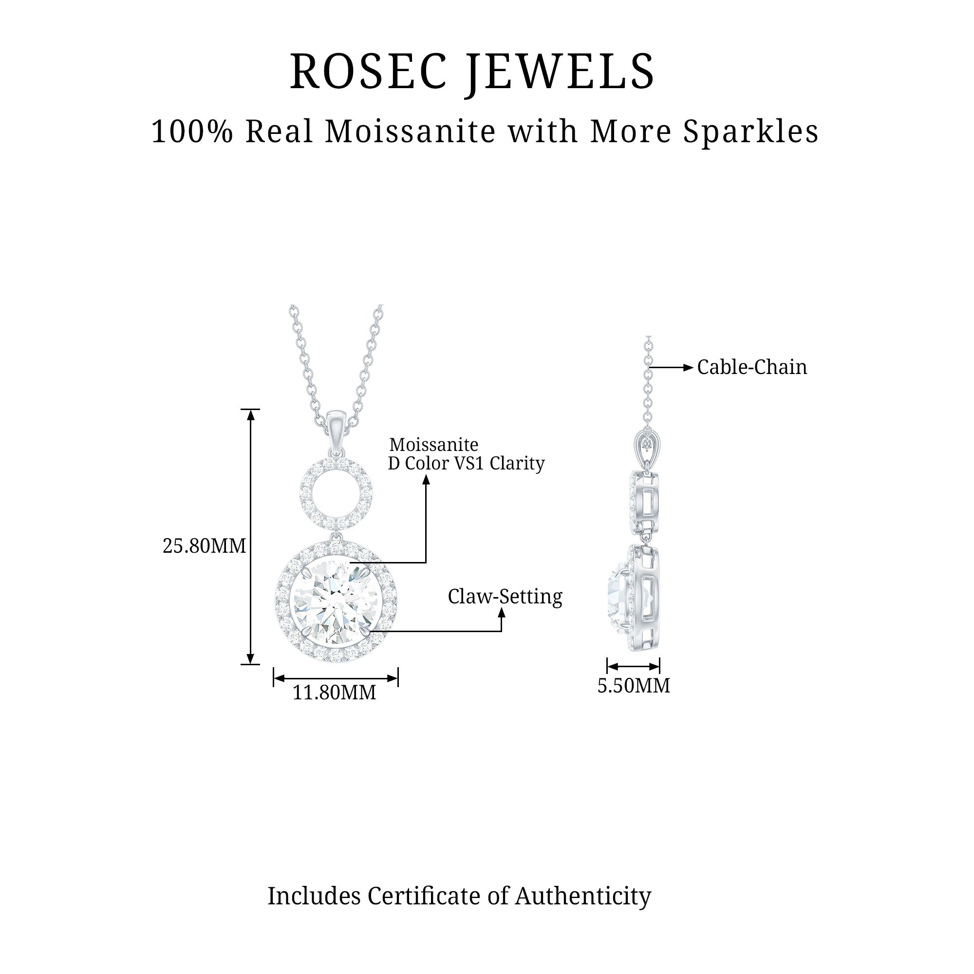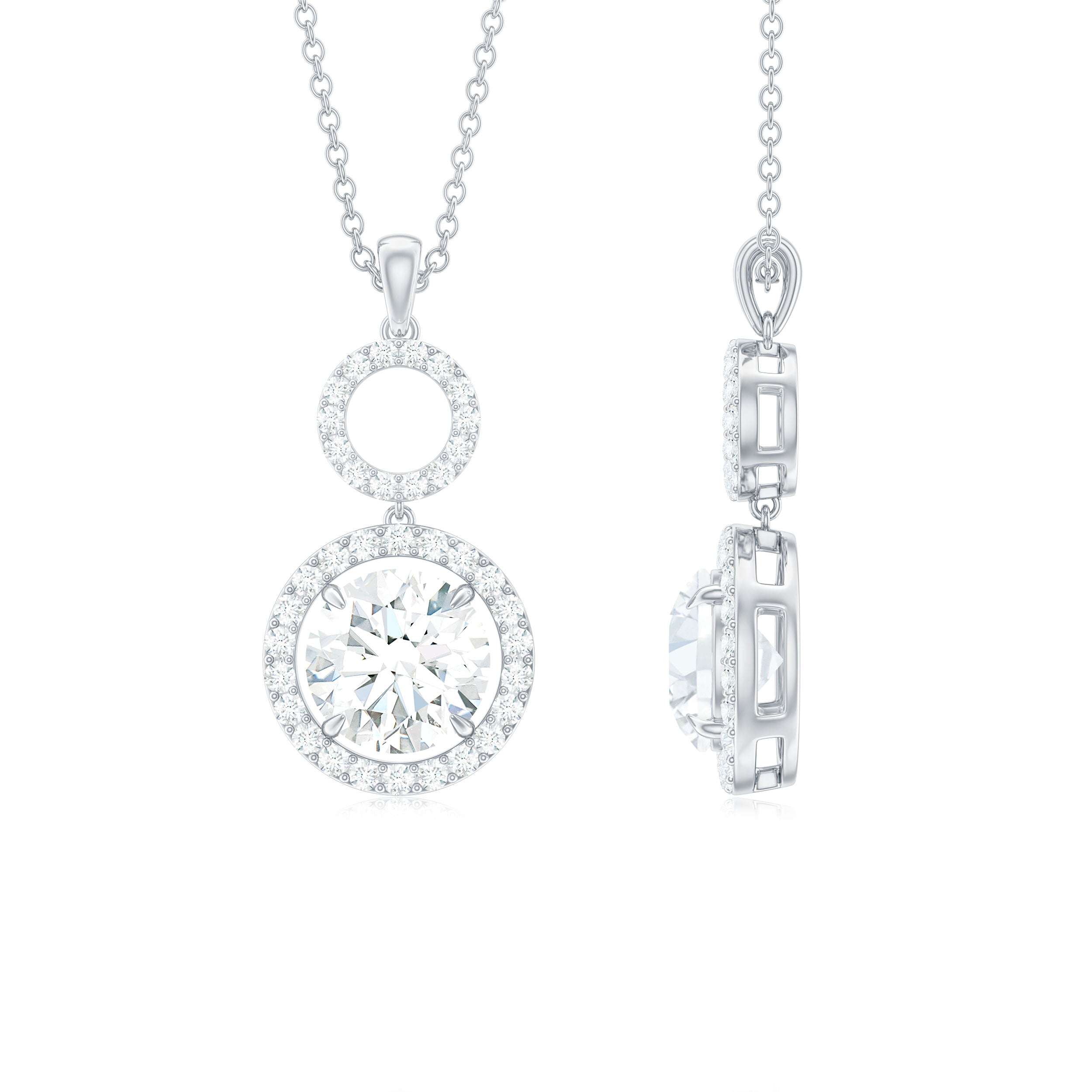 Claw Set Round Moissanite Halo Dangle Pendant Necklace