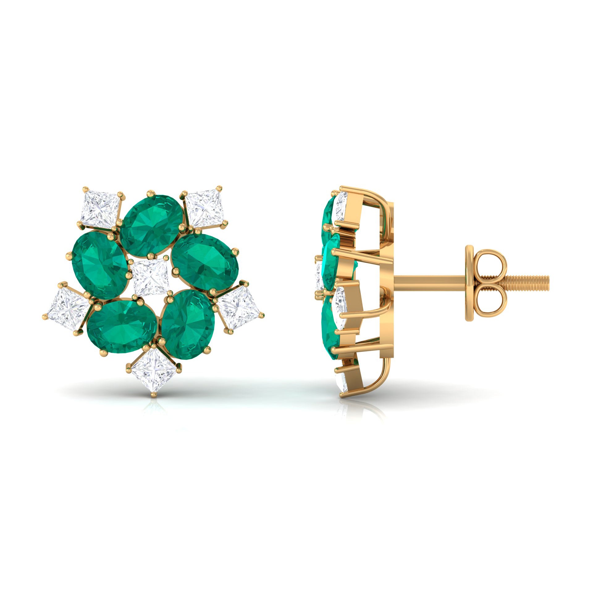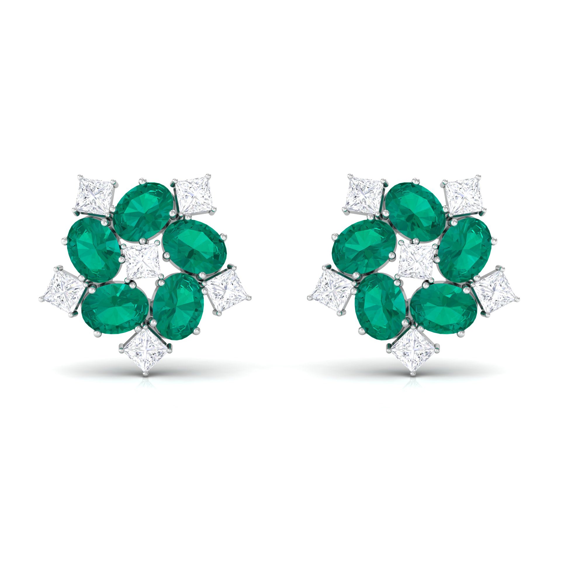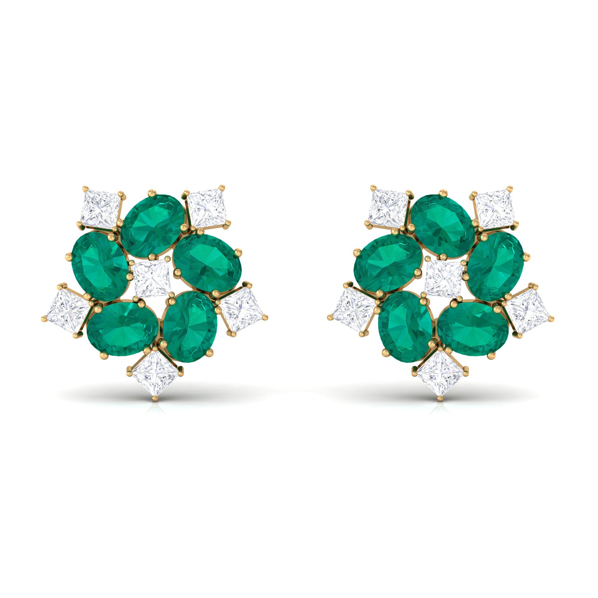 Stand out your look with these Cluster Stud Earrings and make a statement, embellished with Oval Emerald and Princess Cut Moissanite set in Prong Setting.
