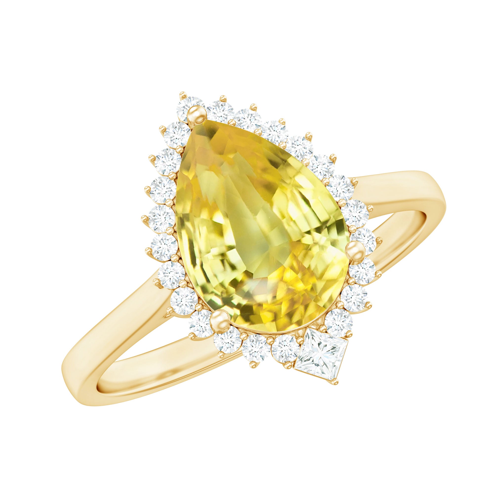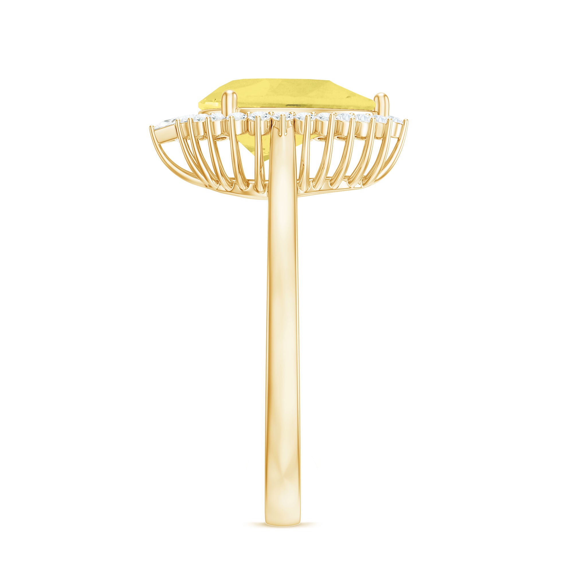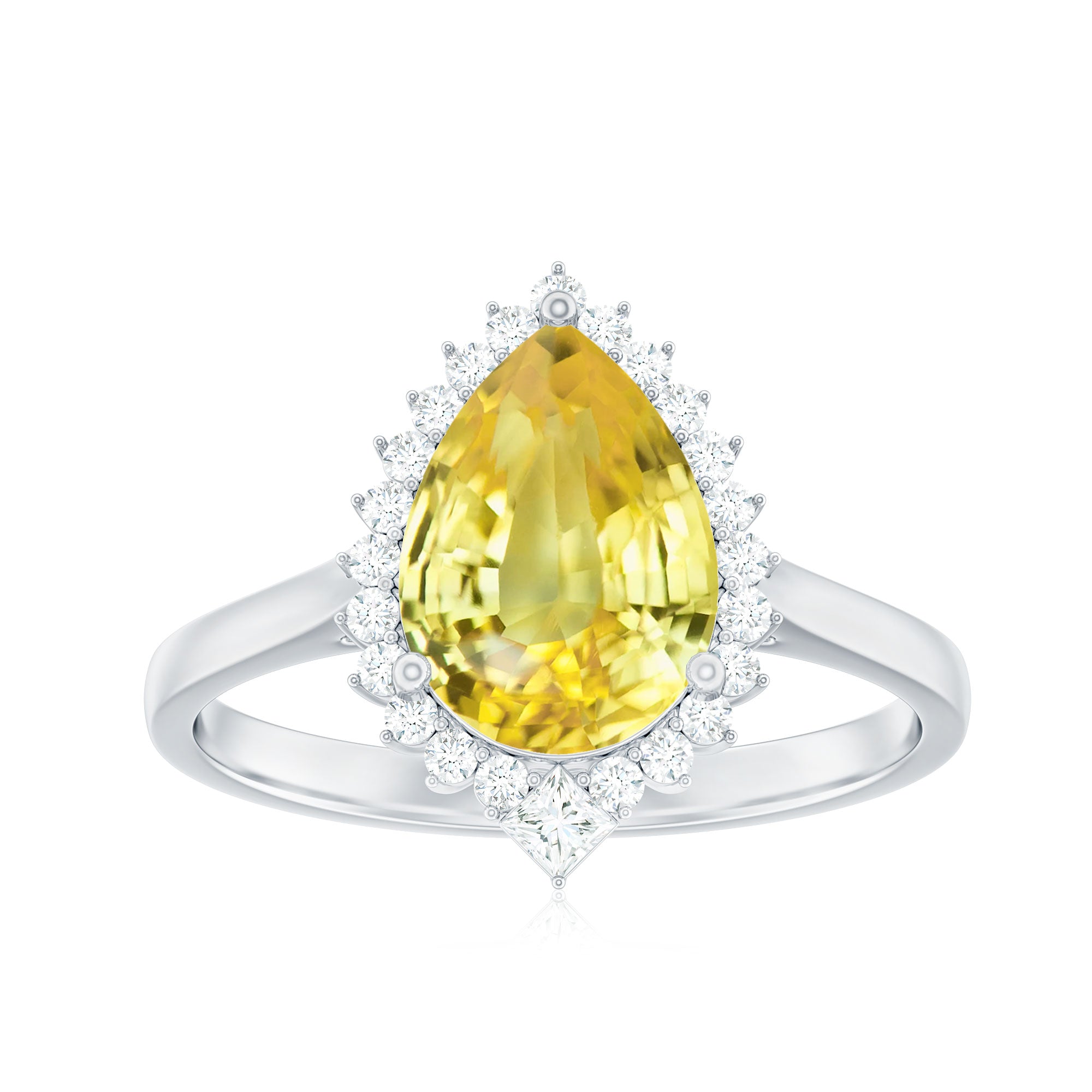 The Cocktail Engagement Ring is an eloquent expression of emotions, making it the perfect token of love for your beloved. The Pear Cut Created Yellow Sapphire, embraced by a dazzling Diamond Halo, exudes a glistening allure that symbolizes your everlasting love and commitment.