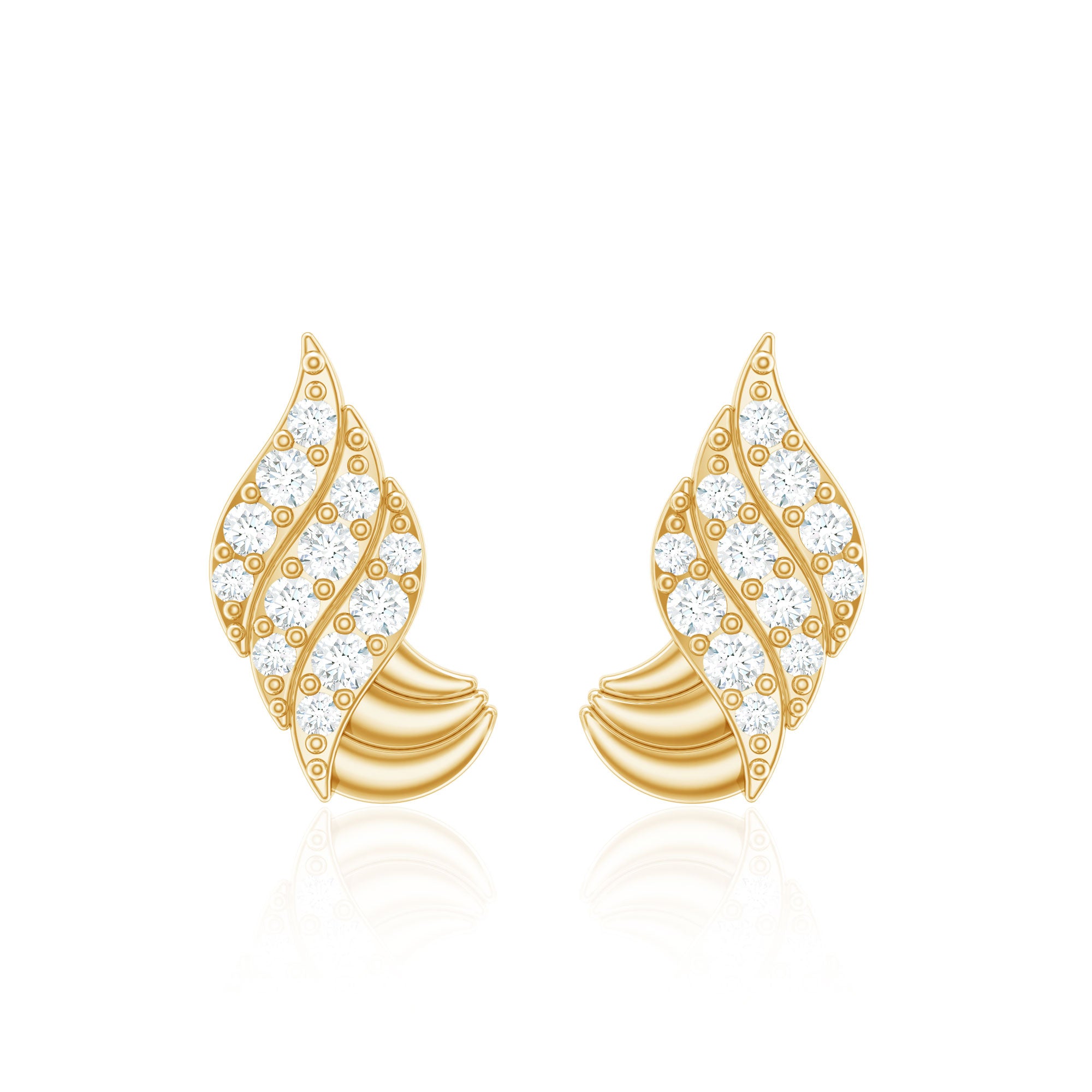 Adorn yourself with the delicate elegance of these Diamond Stud Earrings, thoughtfully designed to capture hearts. Each earring features a graceful leaf like motif, adorned with dazzling Diamond stones that shimmer subtly with every movement. The Screw Back Closure ensures they stay secure and comfortable, perfect for all-day wear, whether you are at the office, attending a special event or enjoying a casual outing. Their versatile design makes them easy to pair with anything, from a chic evening dress to your everyday wardrobe. These Diamond Ear Studs also make a meaningful and stylish gift, arriving in a sleek jewelry box ready to impress and delight. The contemporary design blends modern flair with timeless elegance, making these Diamond Studs a piece that can be treasured for years to come.