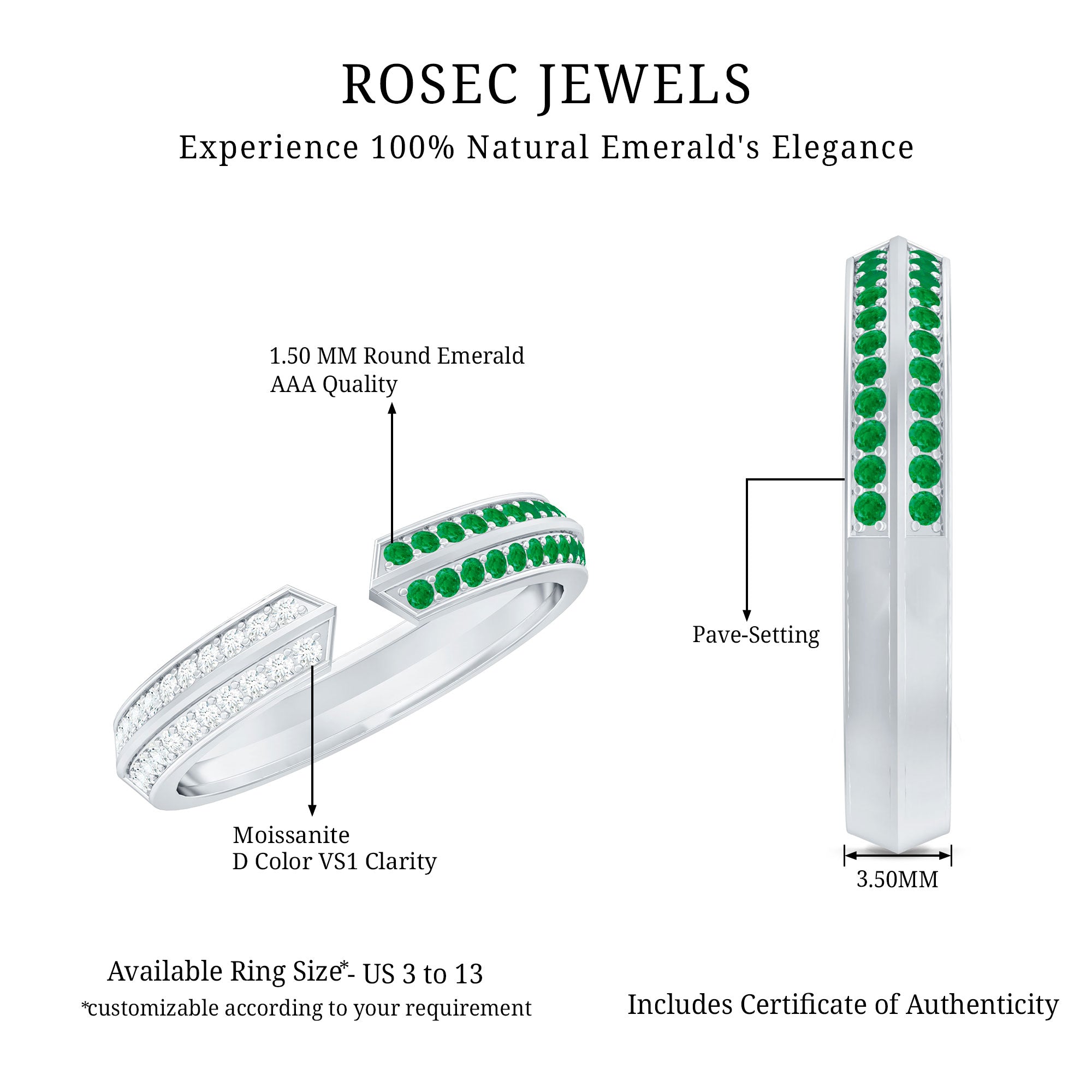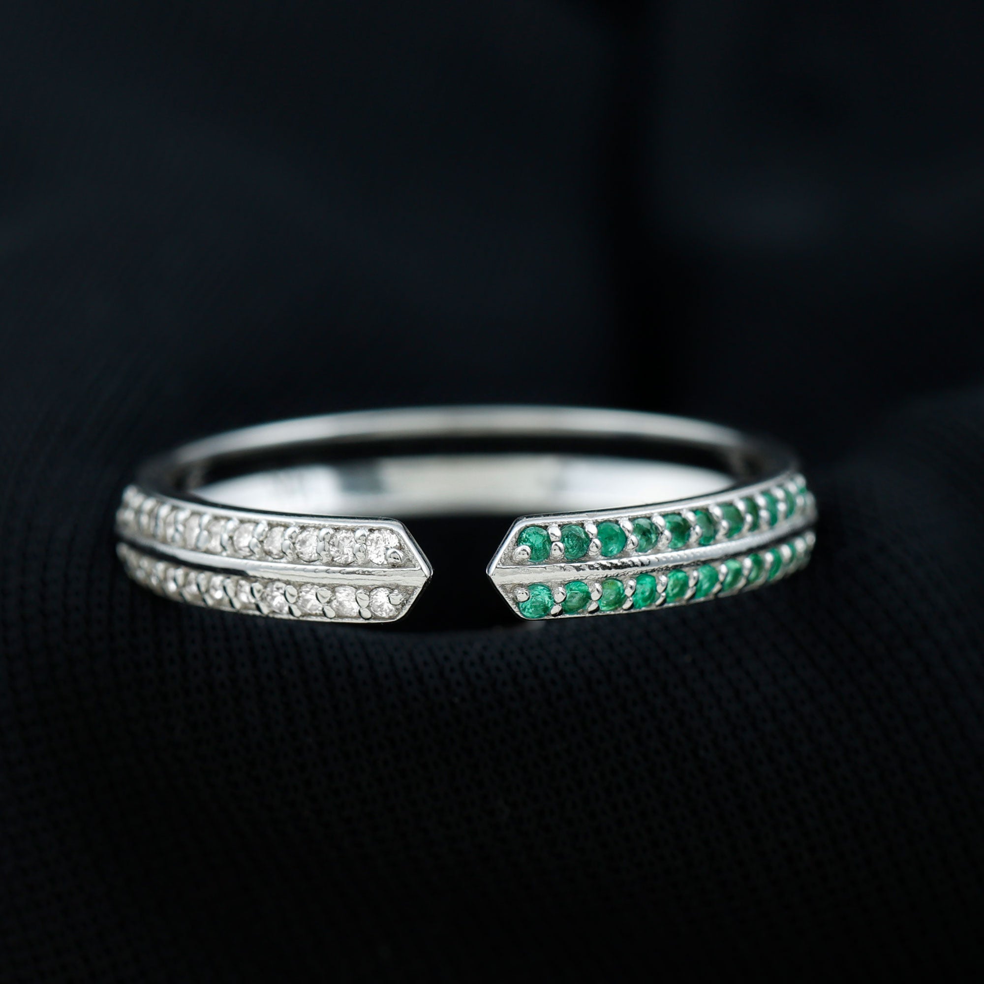 Contemporary Emerald and Moissanite Open Wedding Band Ring
