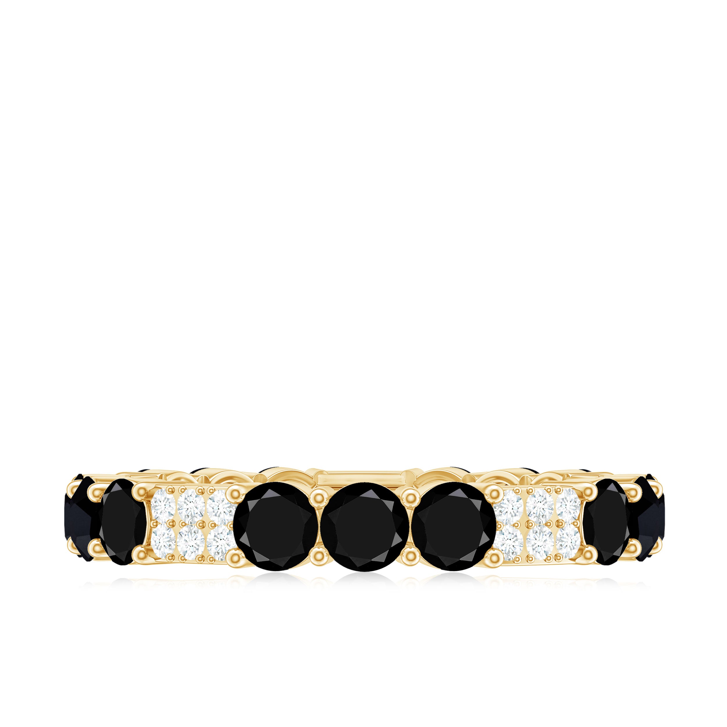 See your lady getting compliments when she will flaunt this Minimal Created black diamond and Diamond Ring. Its an Eternity Ring where 6 Diamond stones are set in two rows after every three Created Black Diamond Stone. The Ring is crafted in Solid Gold which she will cherish forever.