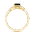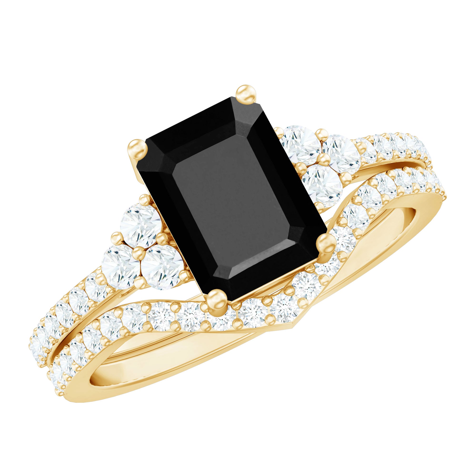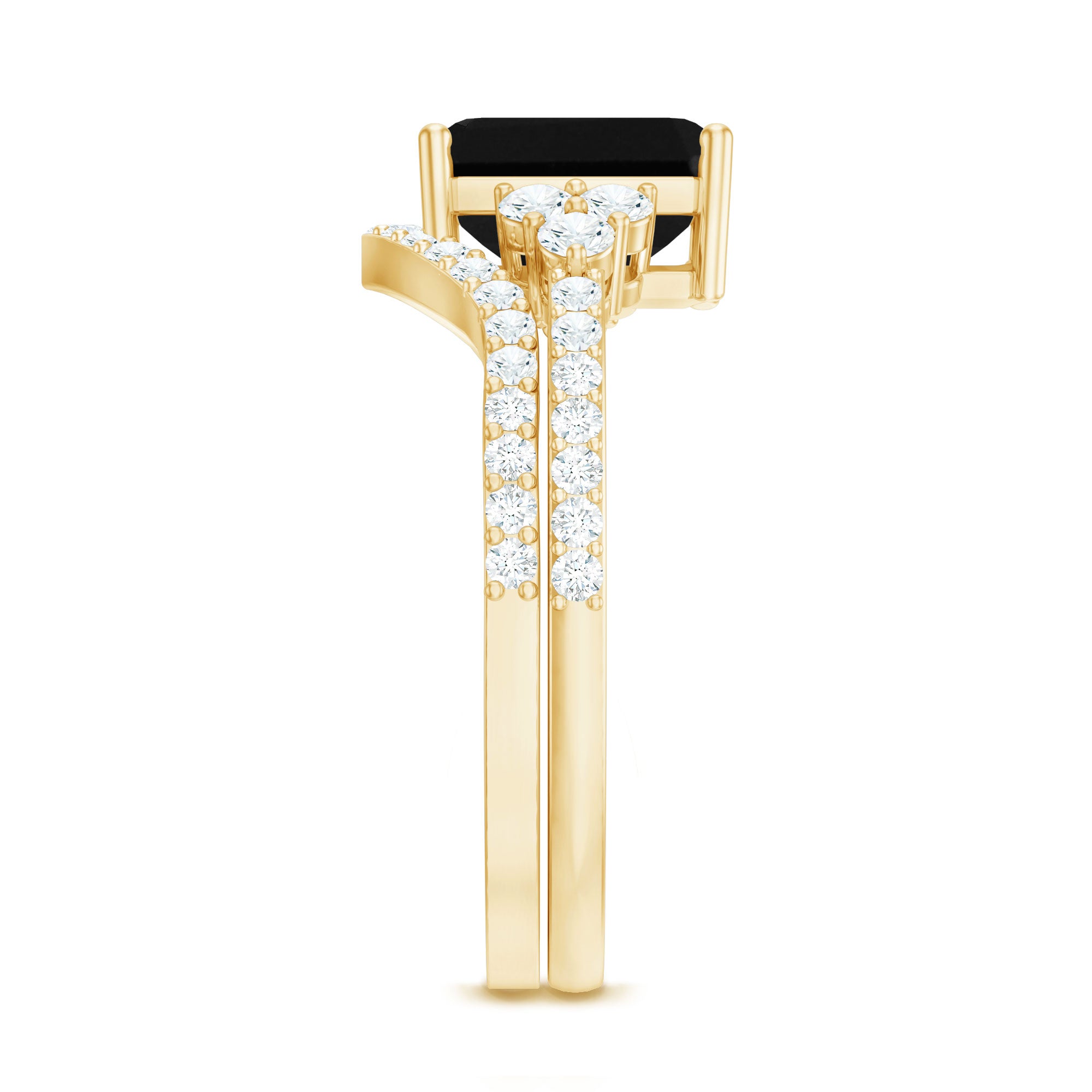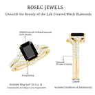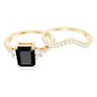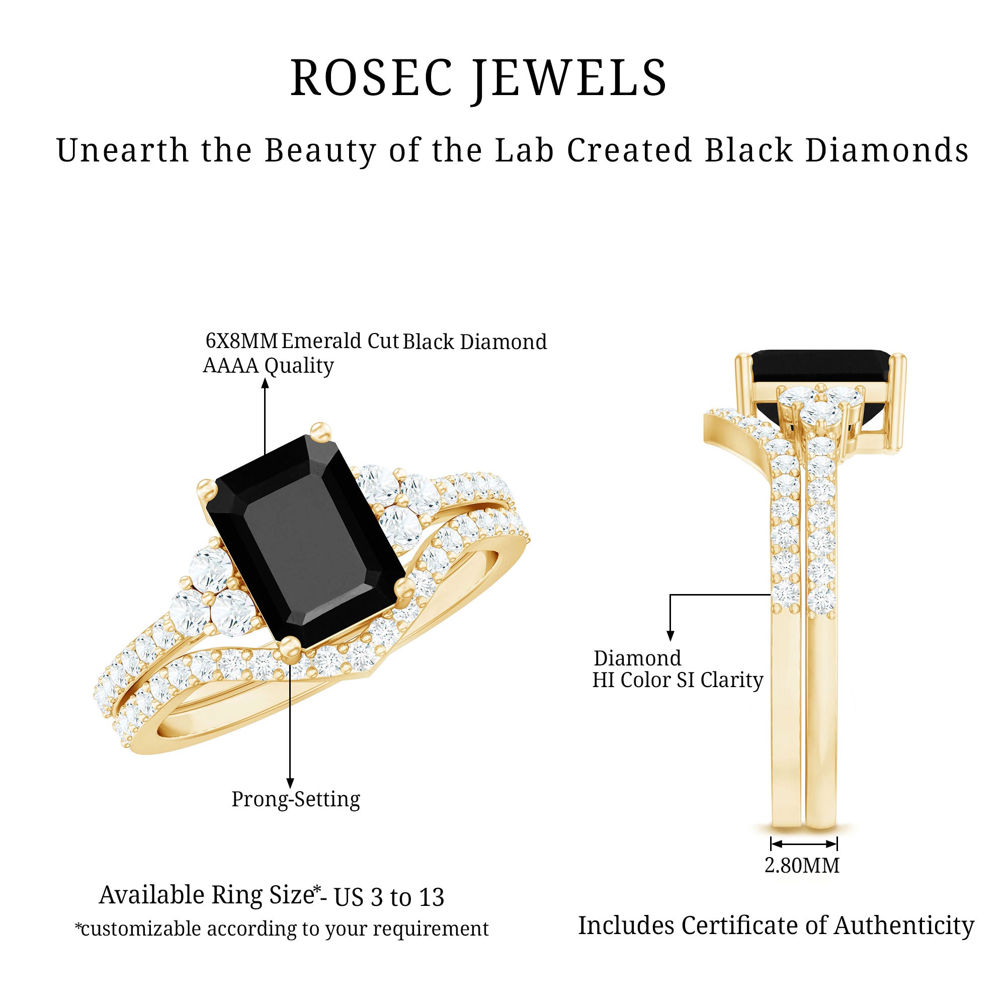 The stunning Engagement Ring Set features an Emerald Cut Lab Created Black Diamond secured in Prong Setting while dainty Round Diamonds studded on the shank and on the enhancer ring. Let her shine like a diva with this Ring Set, surely this Wedding Ring Set would be an amazing Surprise Gift For her.