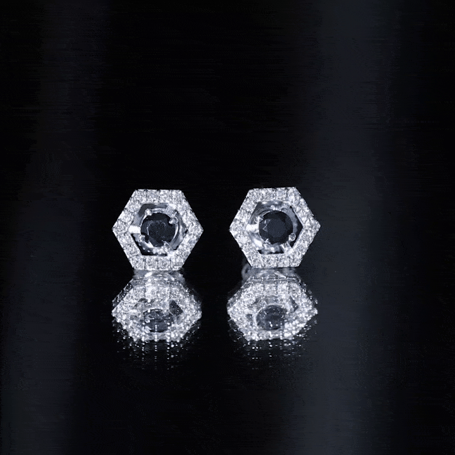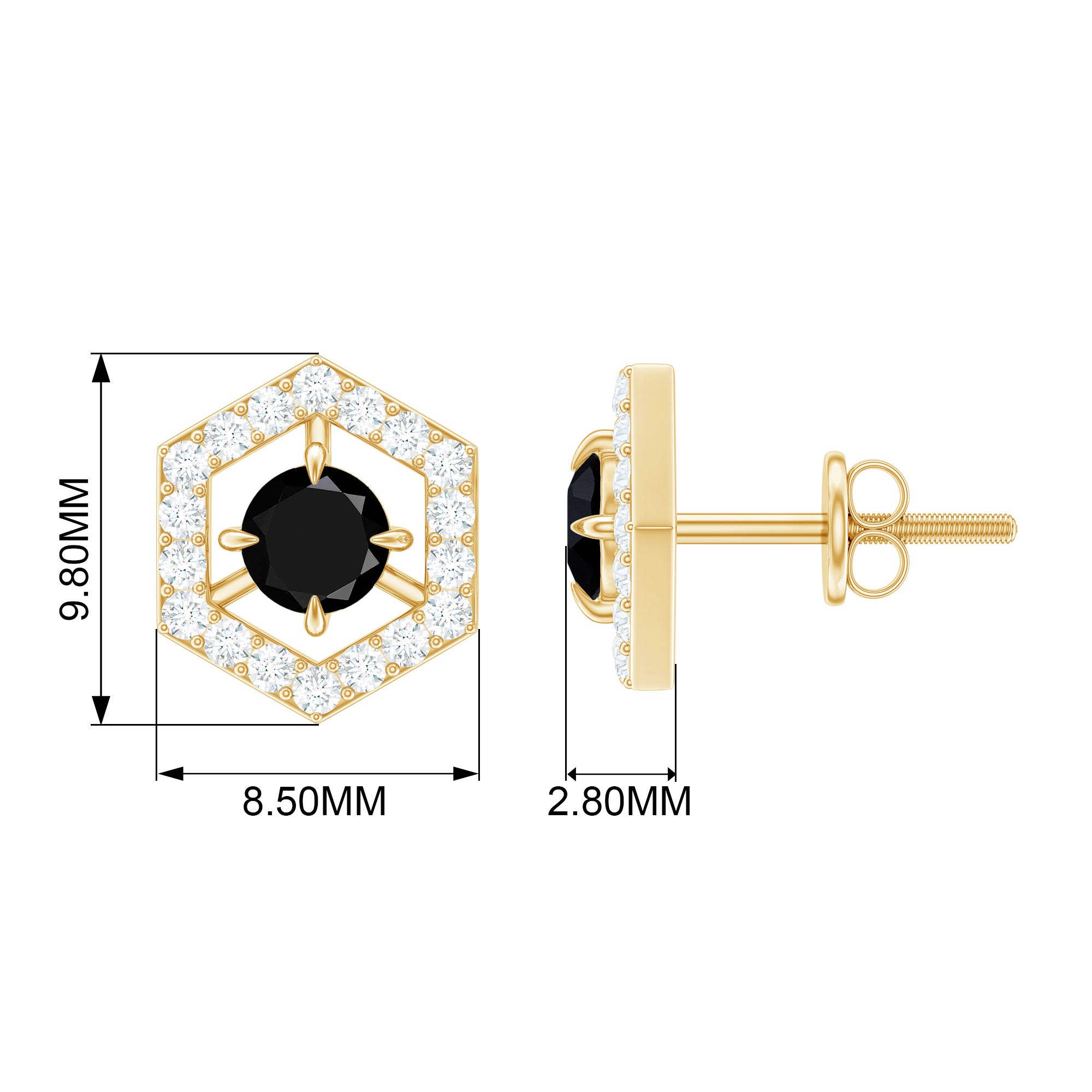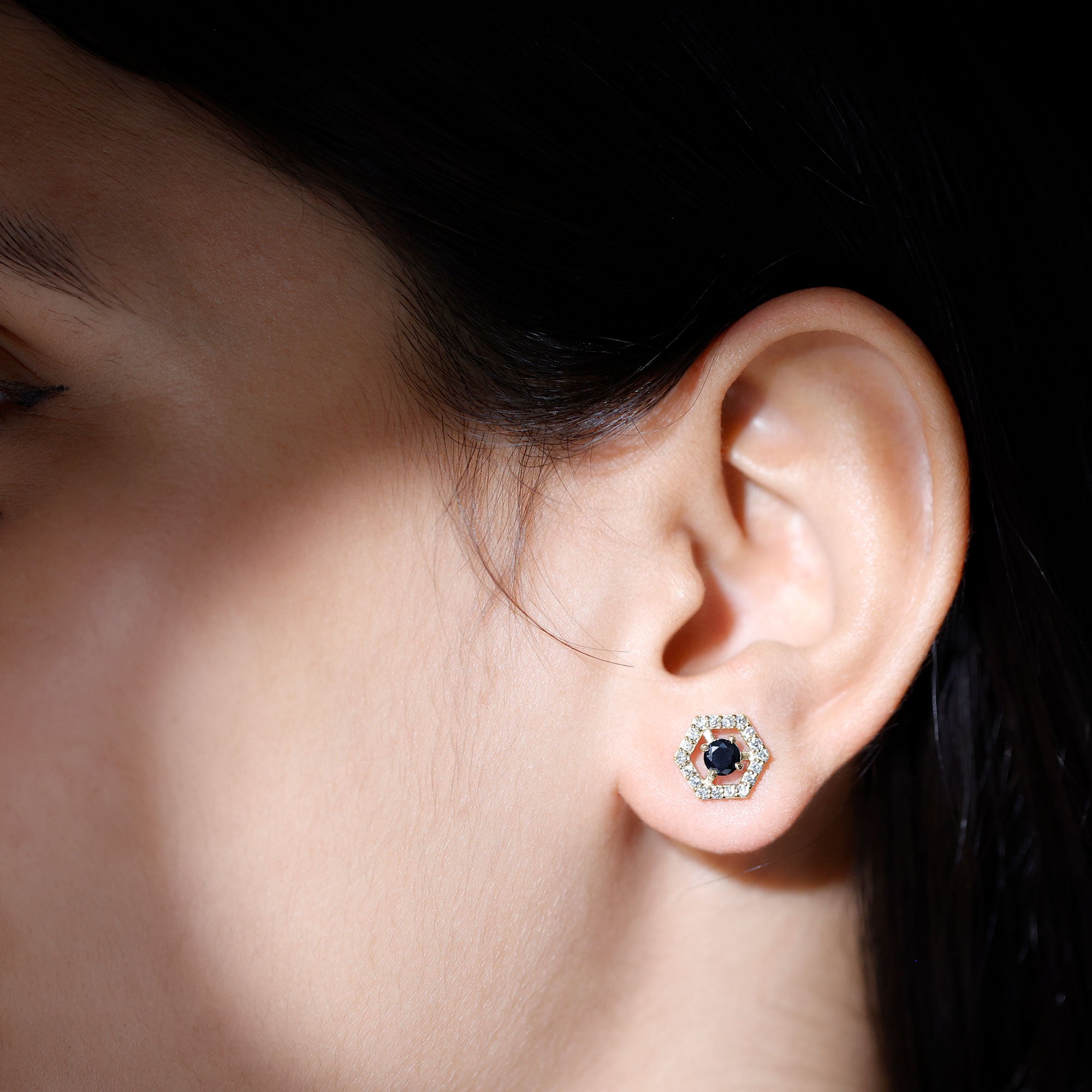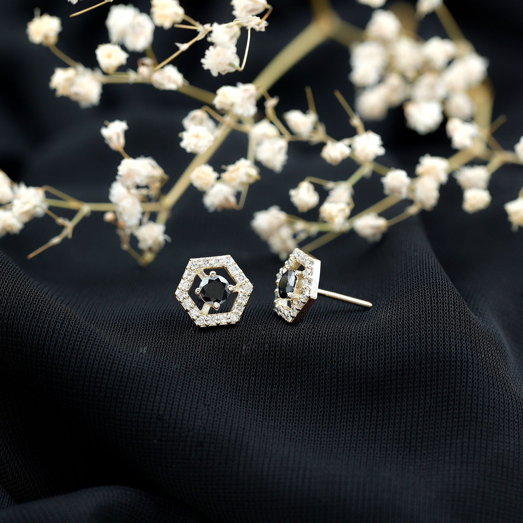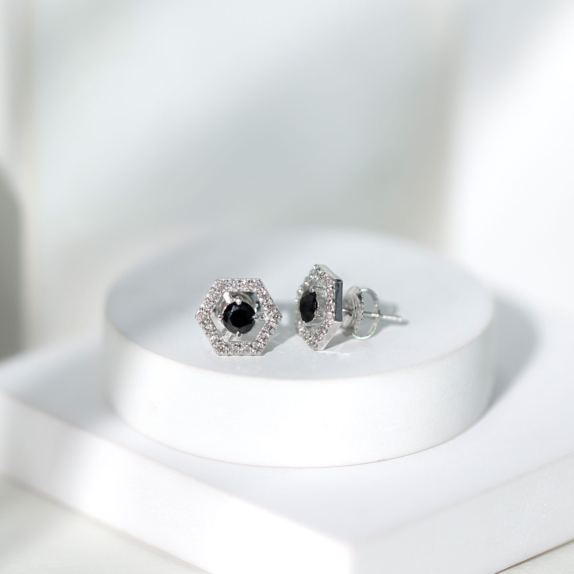 Embrace your individuality with these striking Geometric Stud Earrings. They feature a Round Shape Created Black Diamond Gemstone as the center stone, beautifully complemented by Diamond accents. Let these earrings be a reflection of your unique personality, adding a touch of elegance and sophistication to any ensemble.