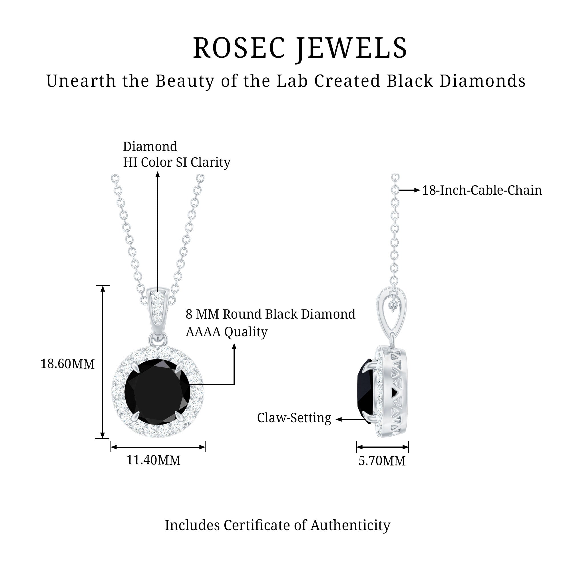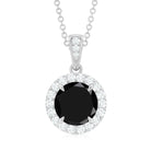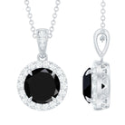 Created Black Diamond and Diamond Halo Pendant Necklace