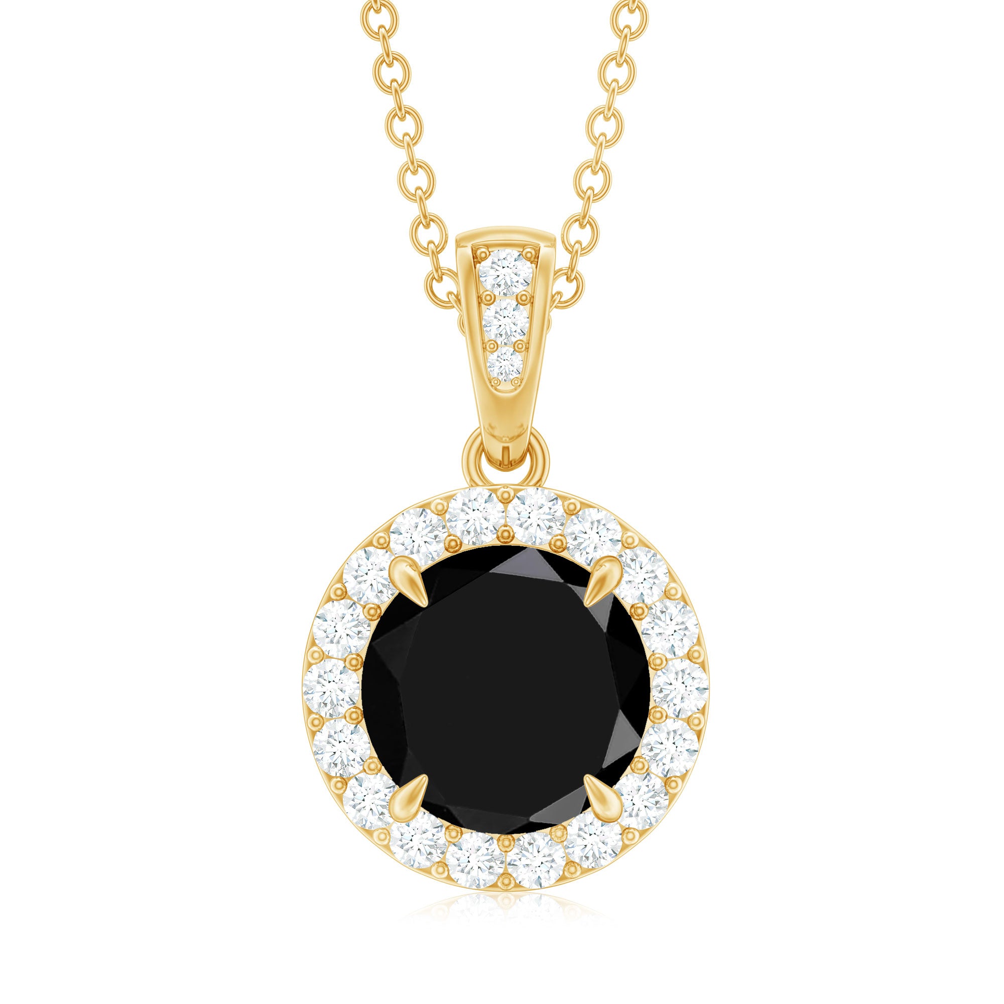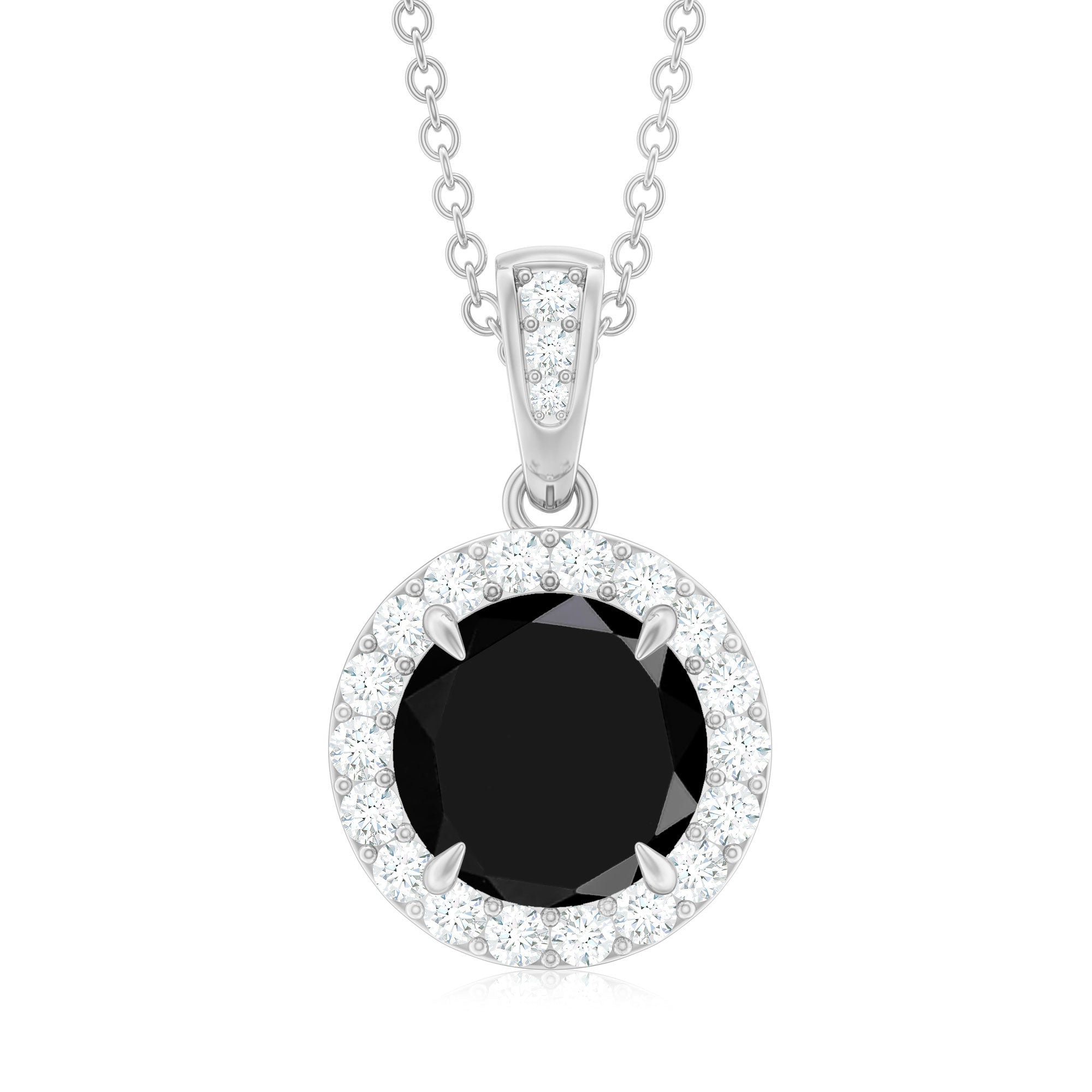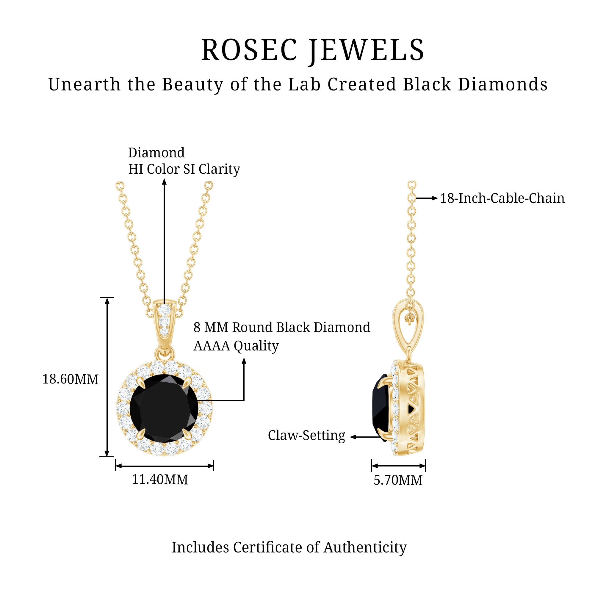 Our Halo Pendant Necklace is embellished with Round Shape Lab Created Black Diamond secured in Claw Setting while Round Diamonds studded as Halo and on the bail of the pendant. A vibrant symbol for all your styling possibilities, Halo Pendant Necklace showcases a simple yet stunning design and has always been a classic statement piece for women of all ages.