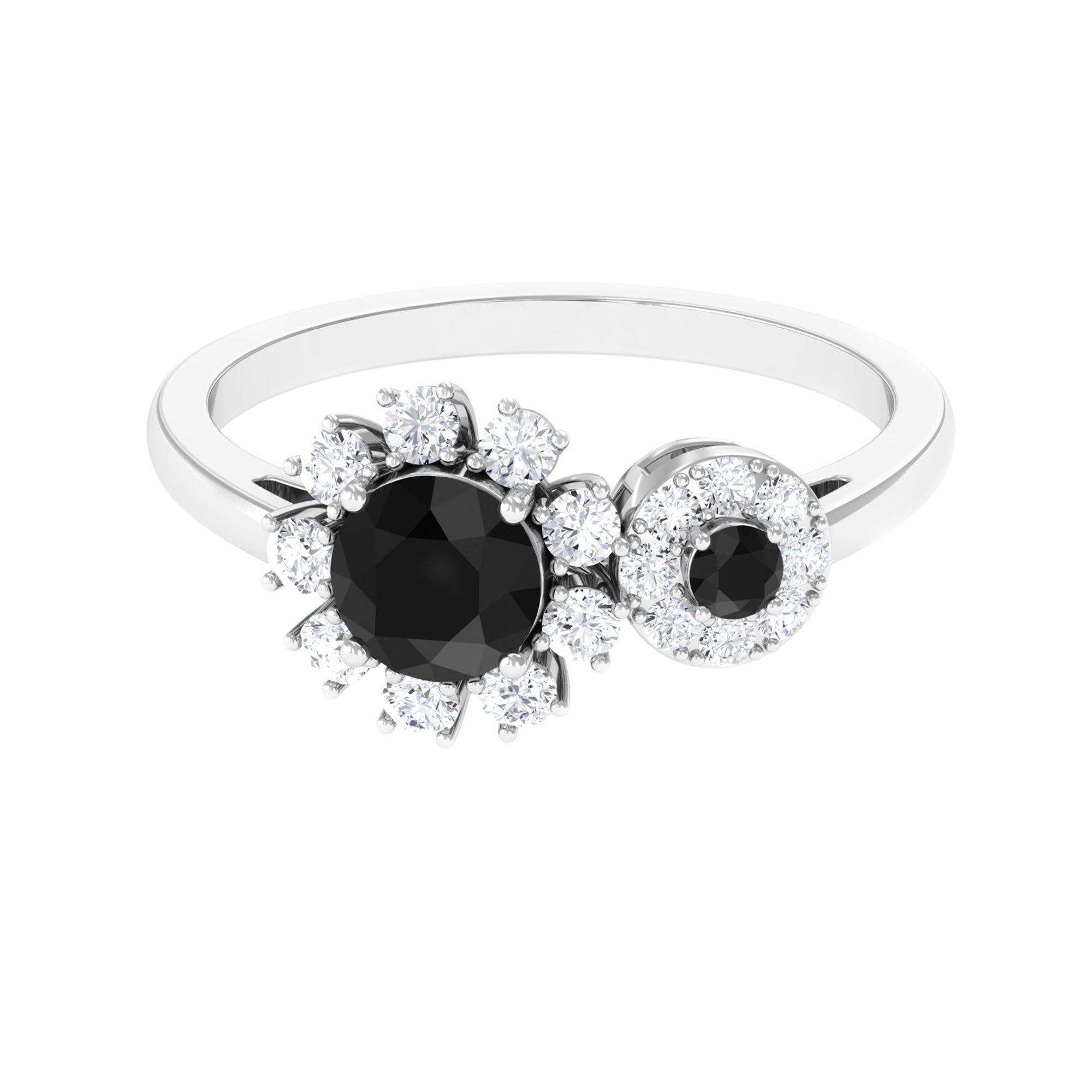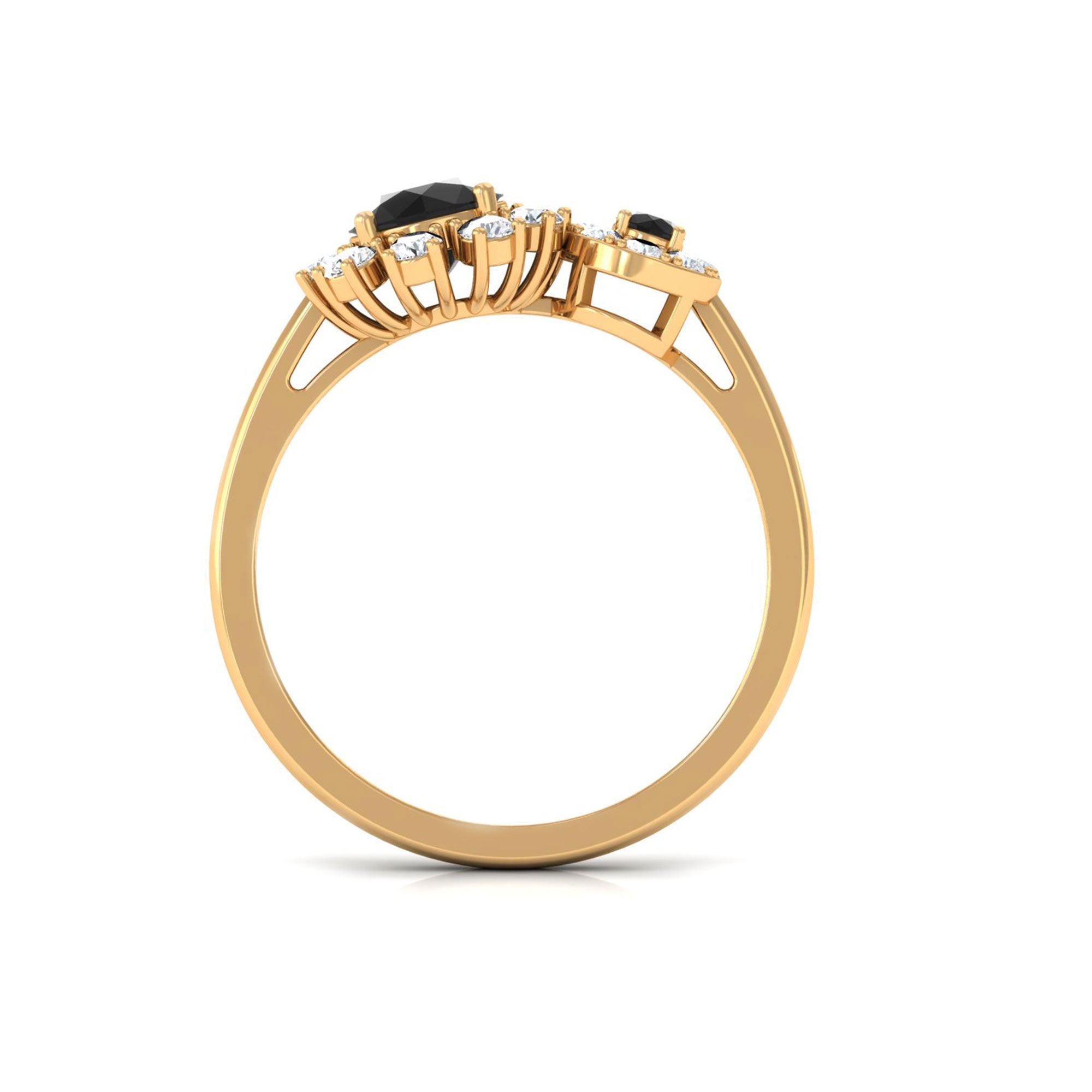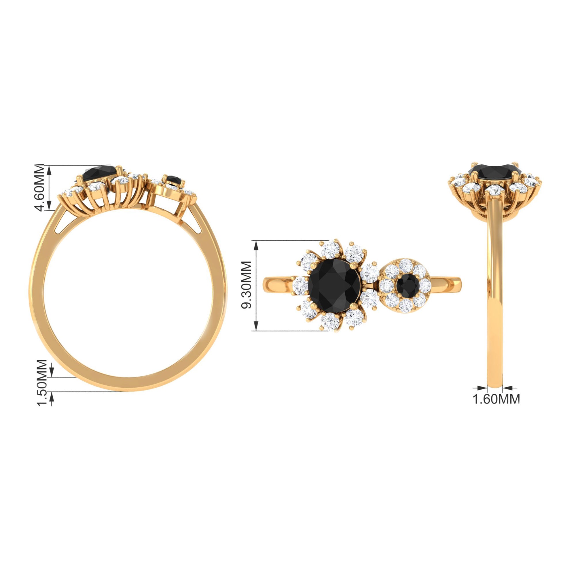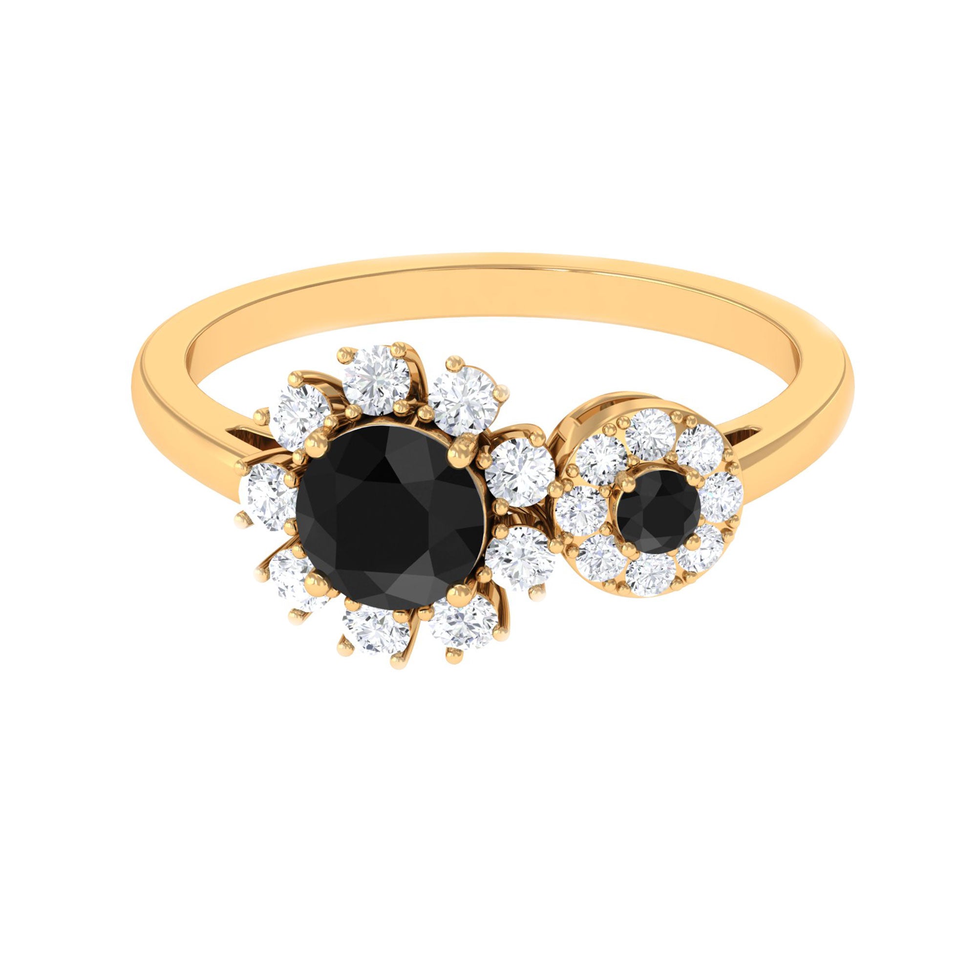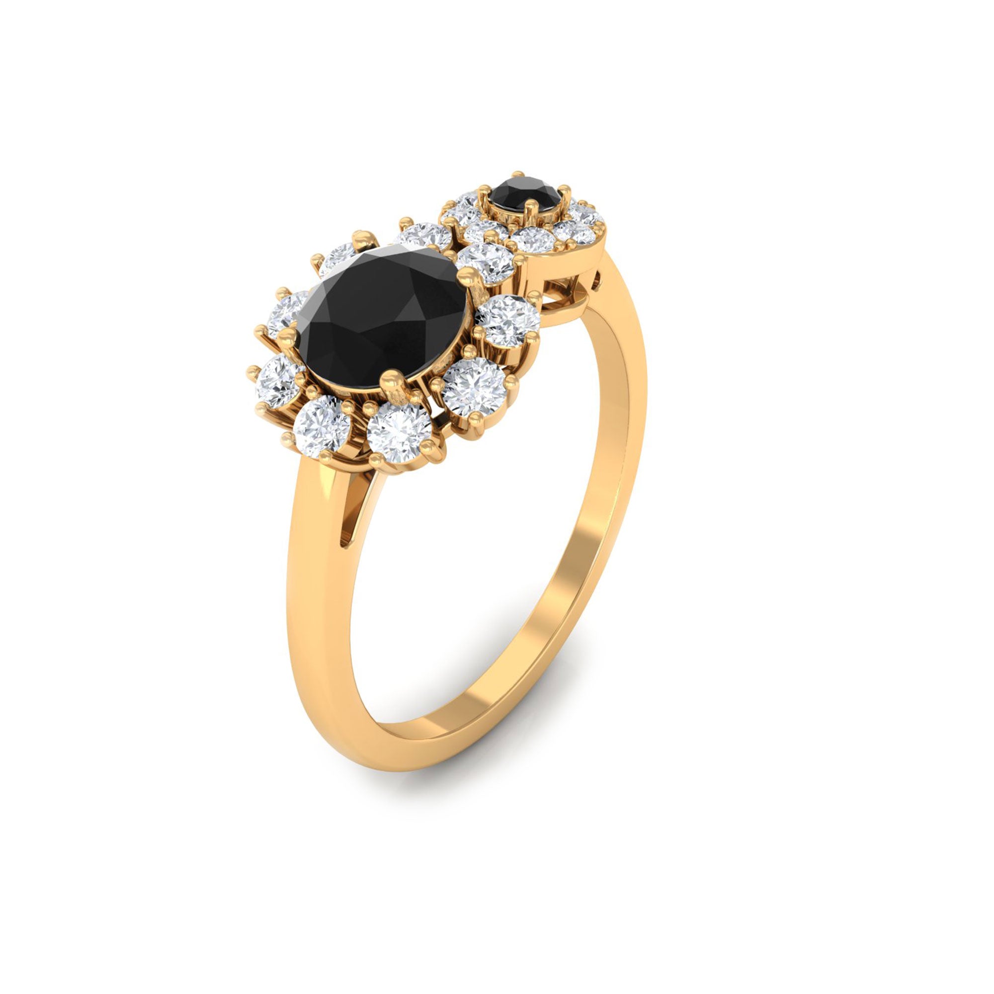 Indulge in an exquisite blend of elegance and romance with the Created Black Diamond Ring. Boasting a stunning round-cut Created Black Diamond gemstone in a prong setting, this designer ring is further enhanced by the presence of Diamond stones. Made from gold, this engagement ring exudes a timeless appeal that your loved one will cherish wearing all day long.