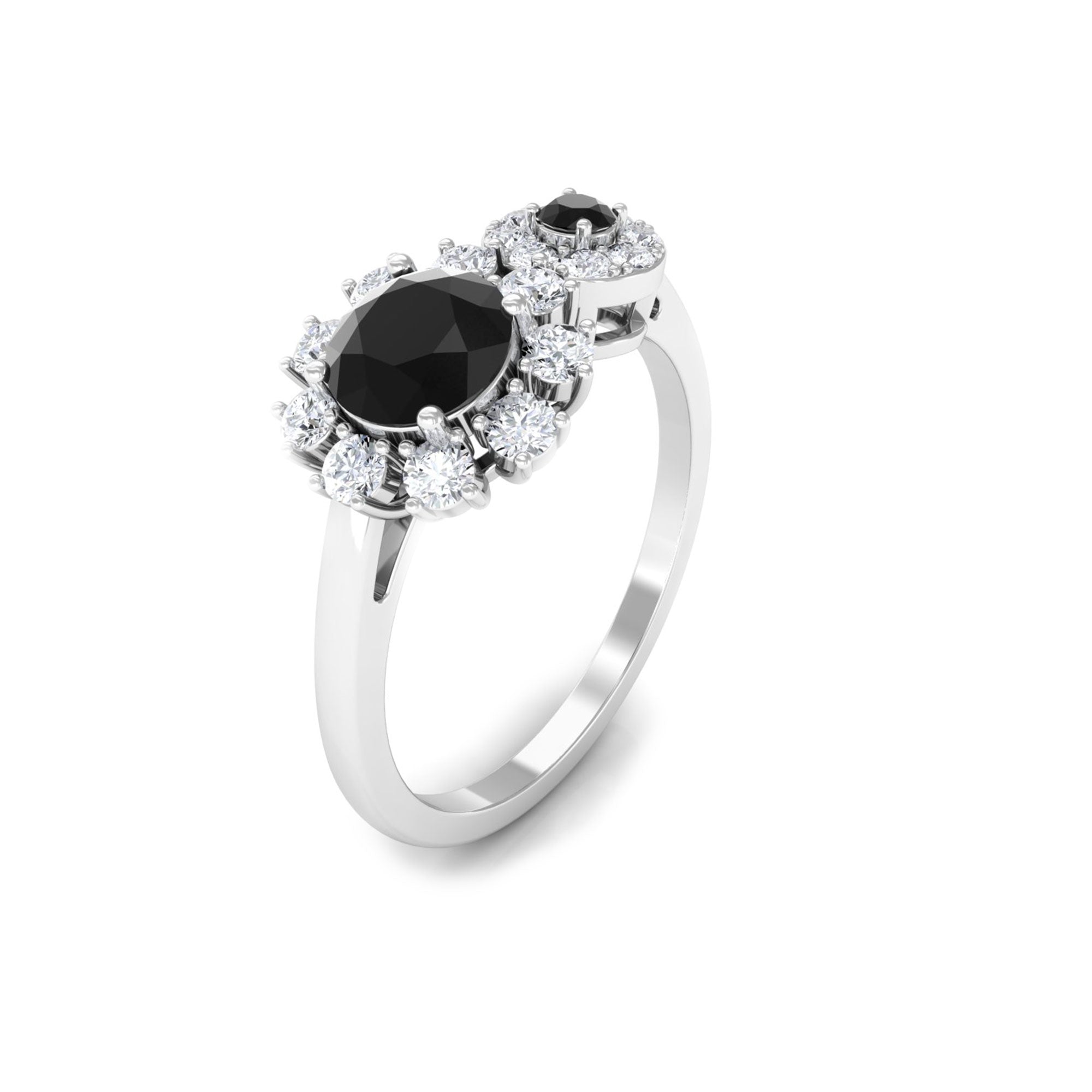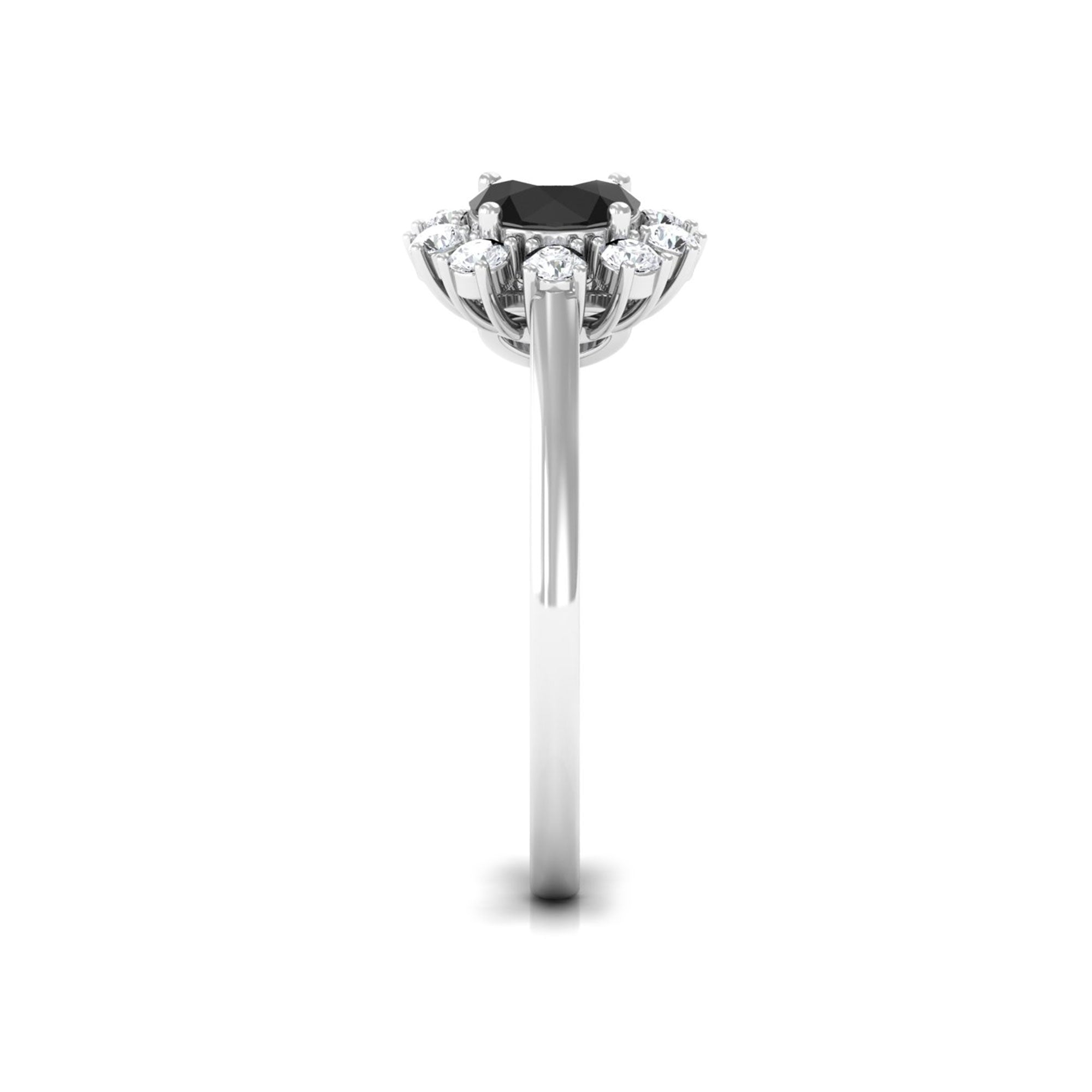 Created Black Diamond Designer Halo Engagement Ring with Diamond