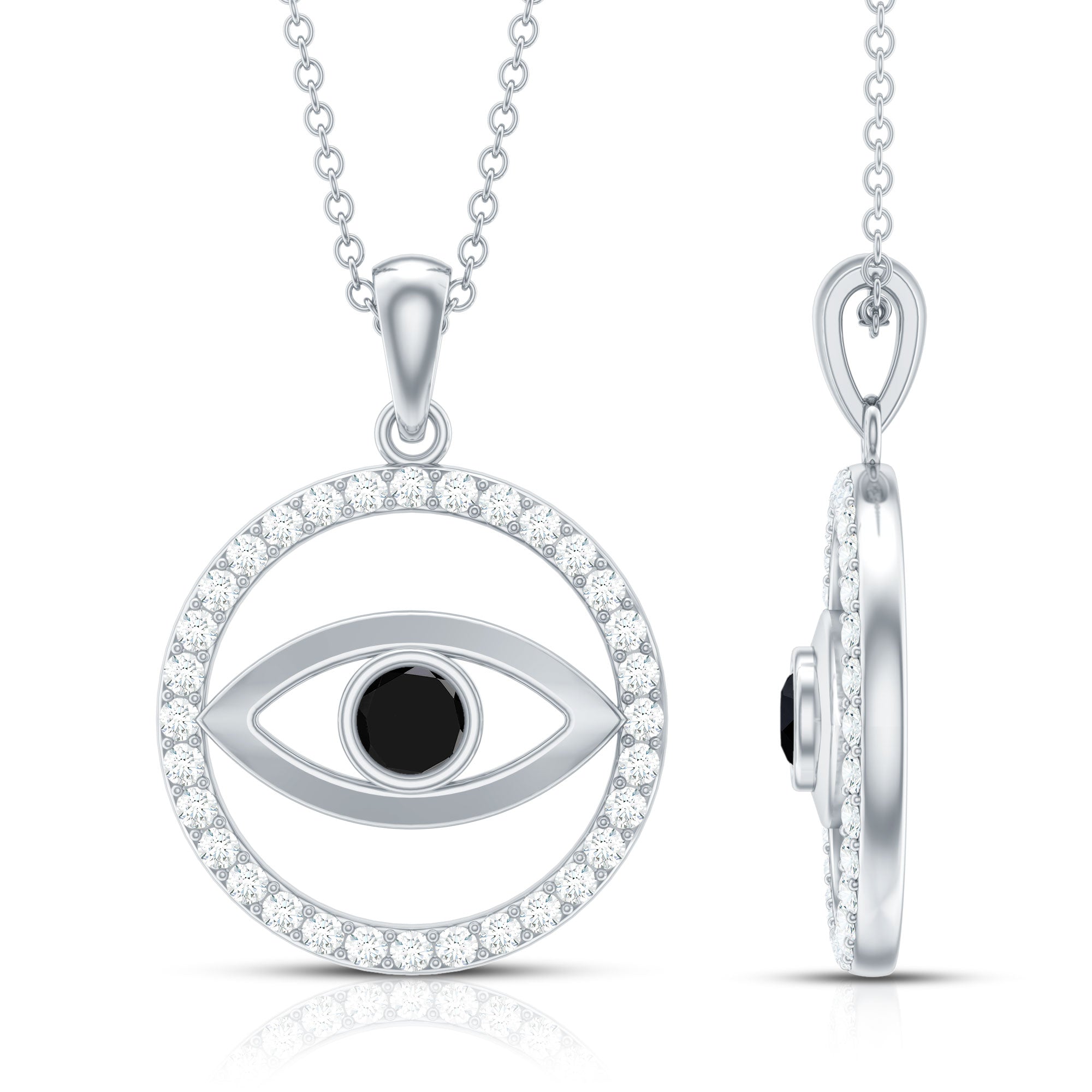 Created Black Diamond Evil Eye Pendant with Moissanite Eternity Circle