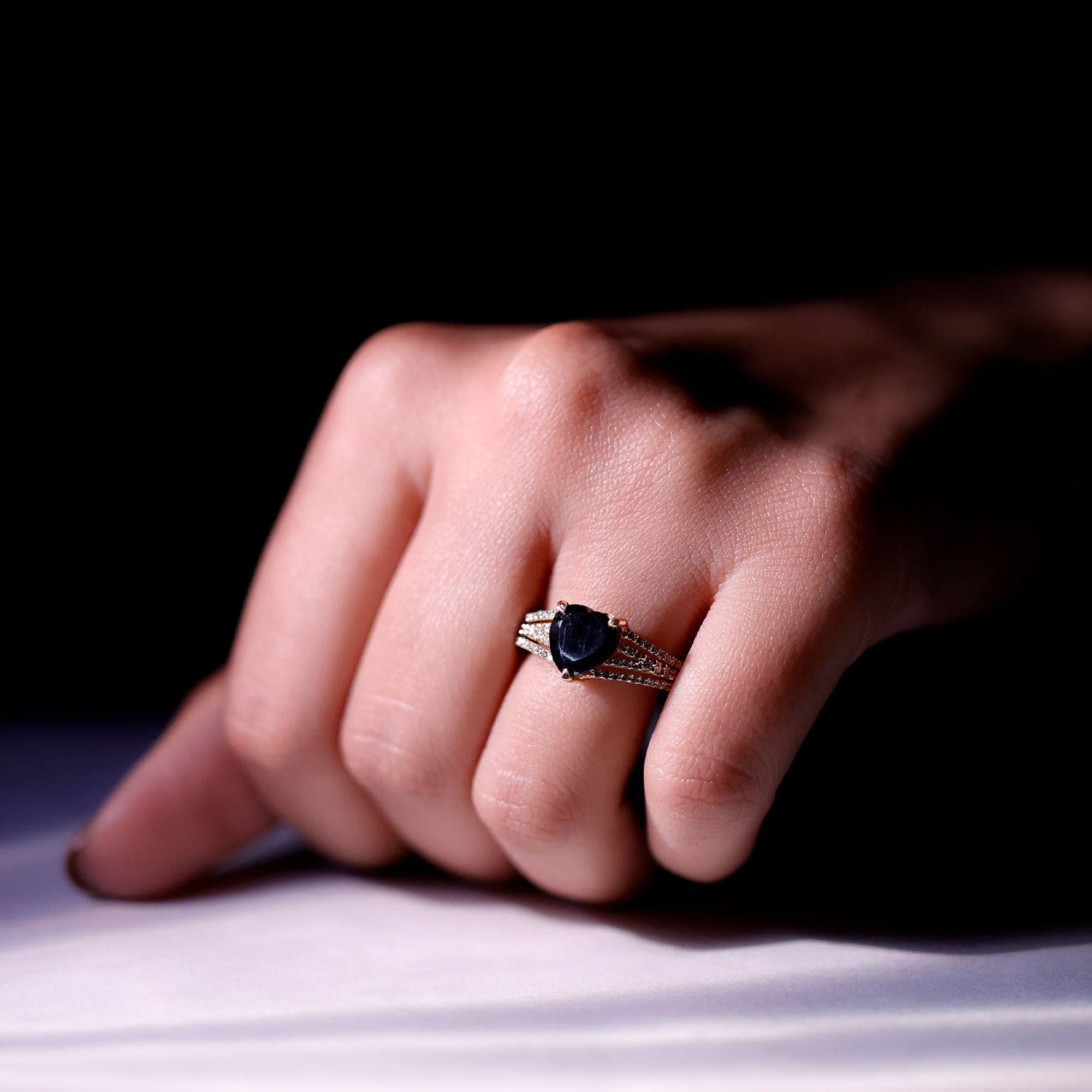 The stunning Heart Engagement Ring is embellished with a Heart Shaped Lab Created Black Diamond secured in Claw Setting while dainty Round Diamond studded on the split shank. Bend your knee and confess what lies in your heart for your special person with our Created Black Diamond Ring as she will always keep it close to her heart.