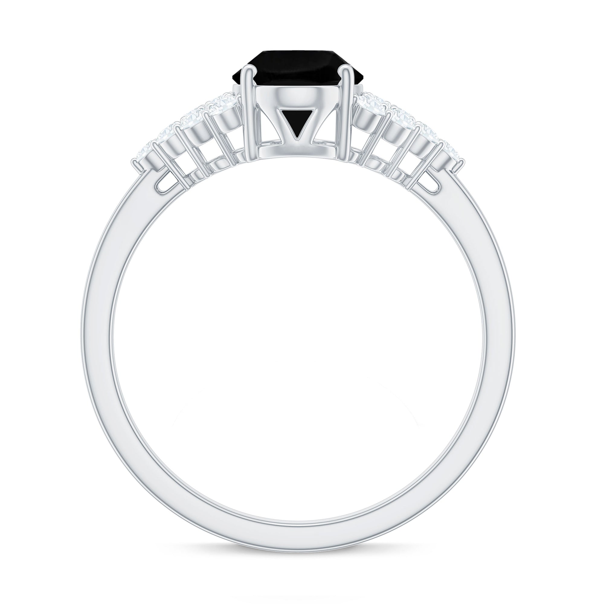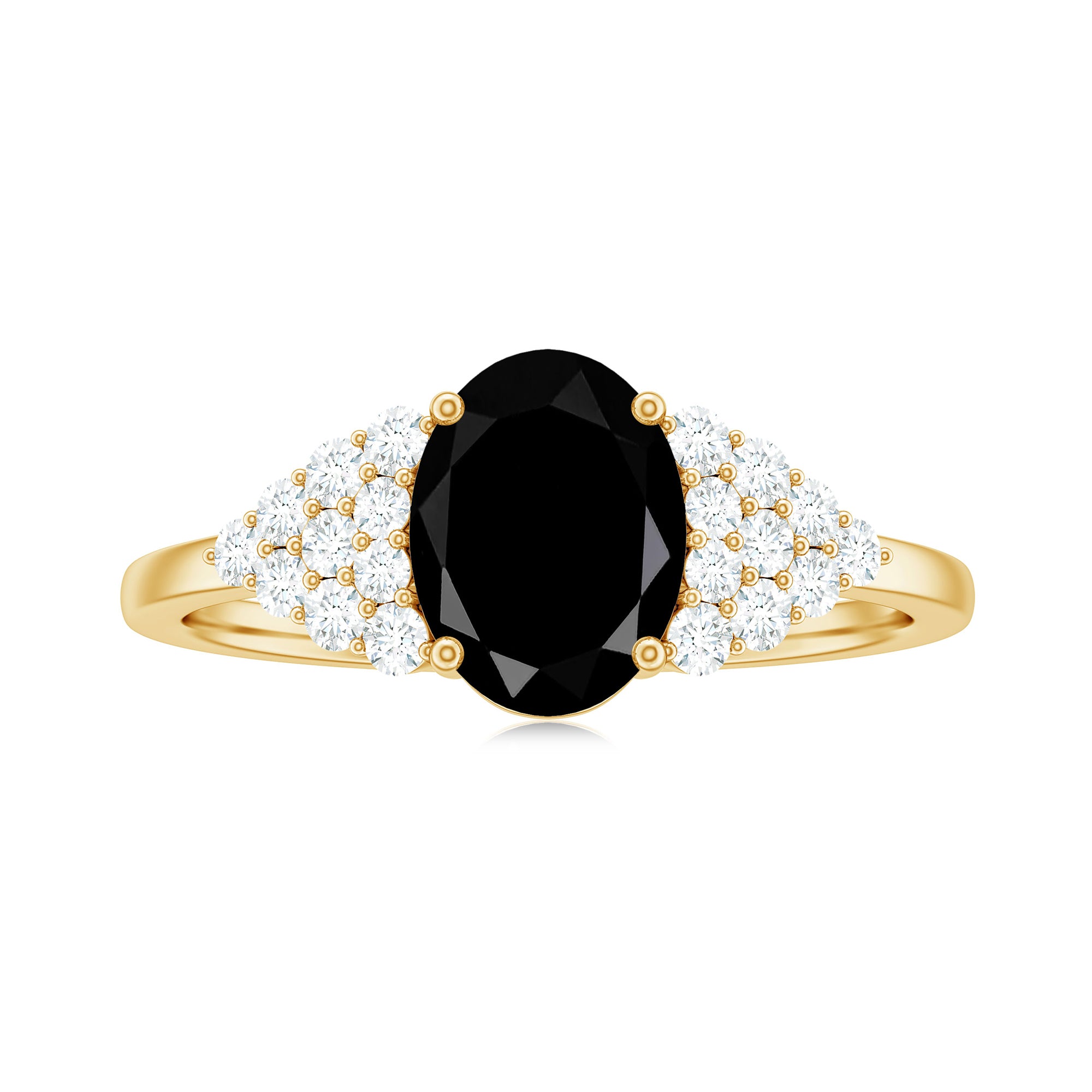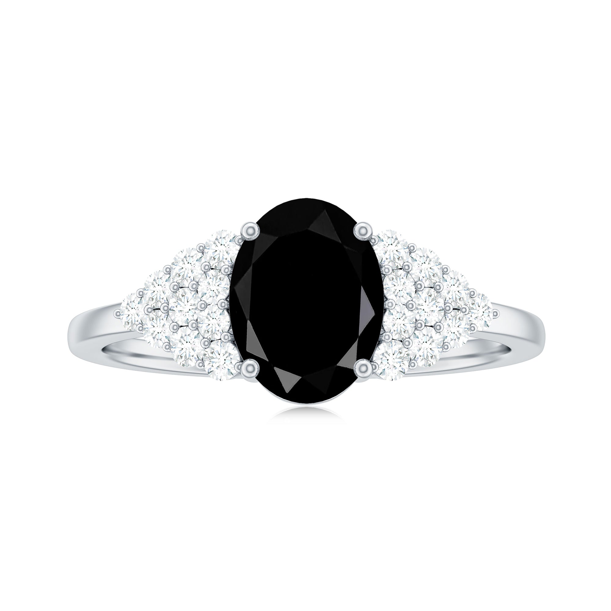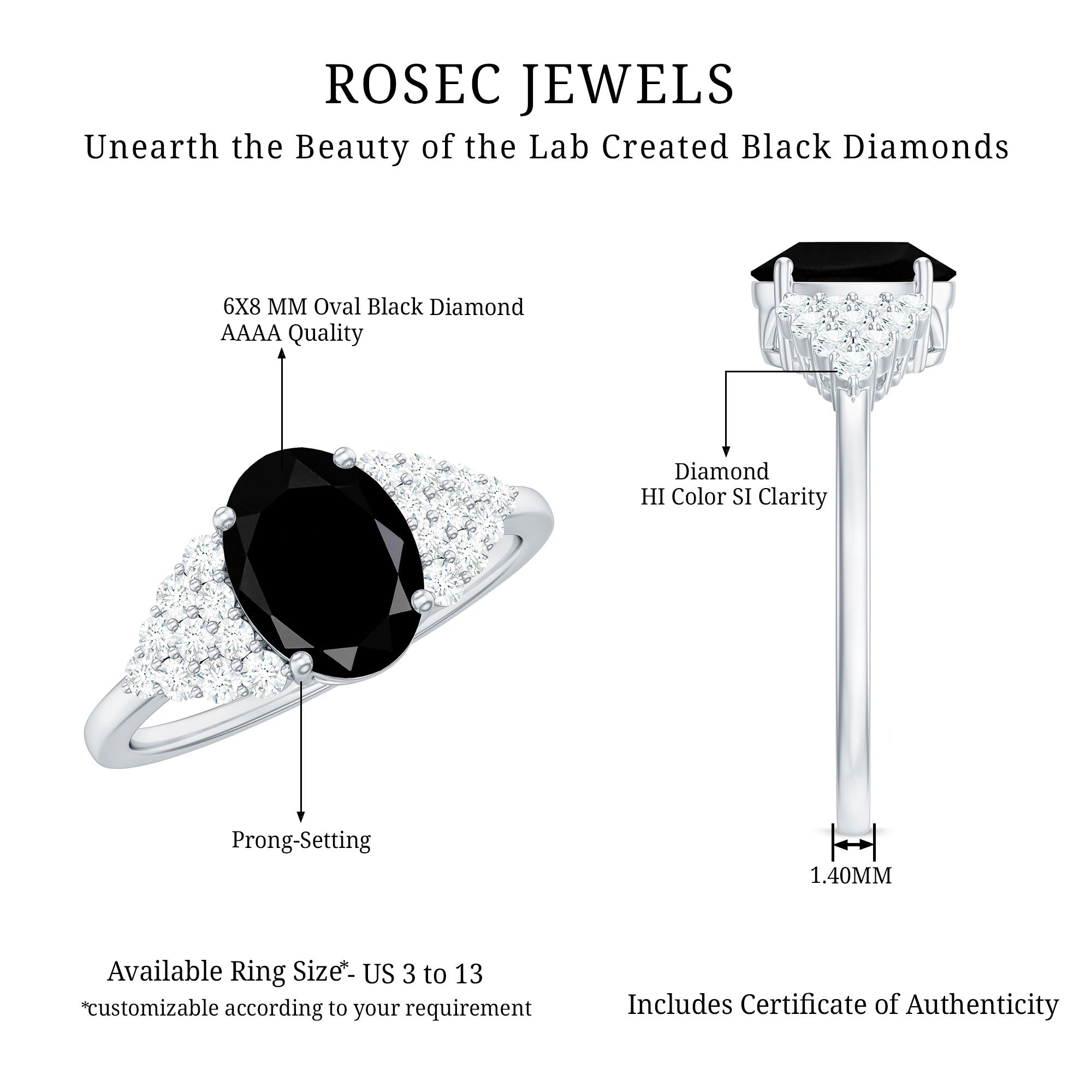 This simple yet exquisite Oval Engagement Ring features an Oval Shape Lab Created Black Diamond secured in 4 Prong Setting while Round Shape Diamond adds the right amount of sparkle. You can wear this Created Black Diamond Ring with your everyday or party attire, to create unique and stunning looks.