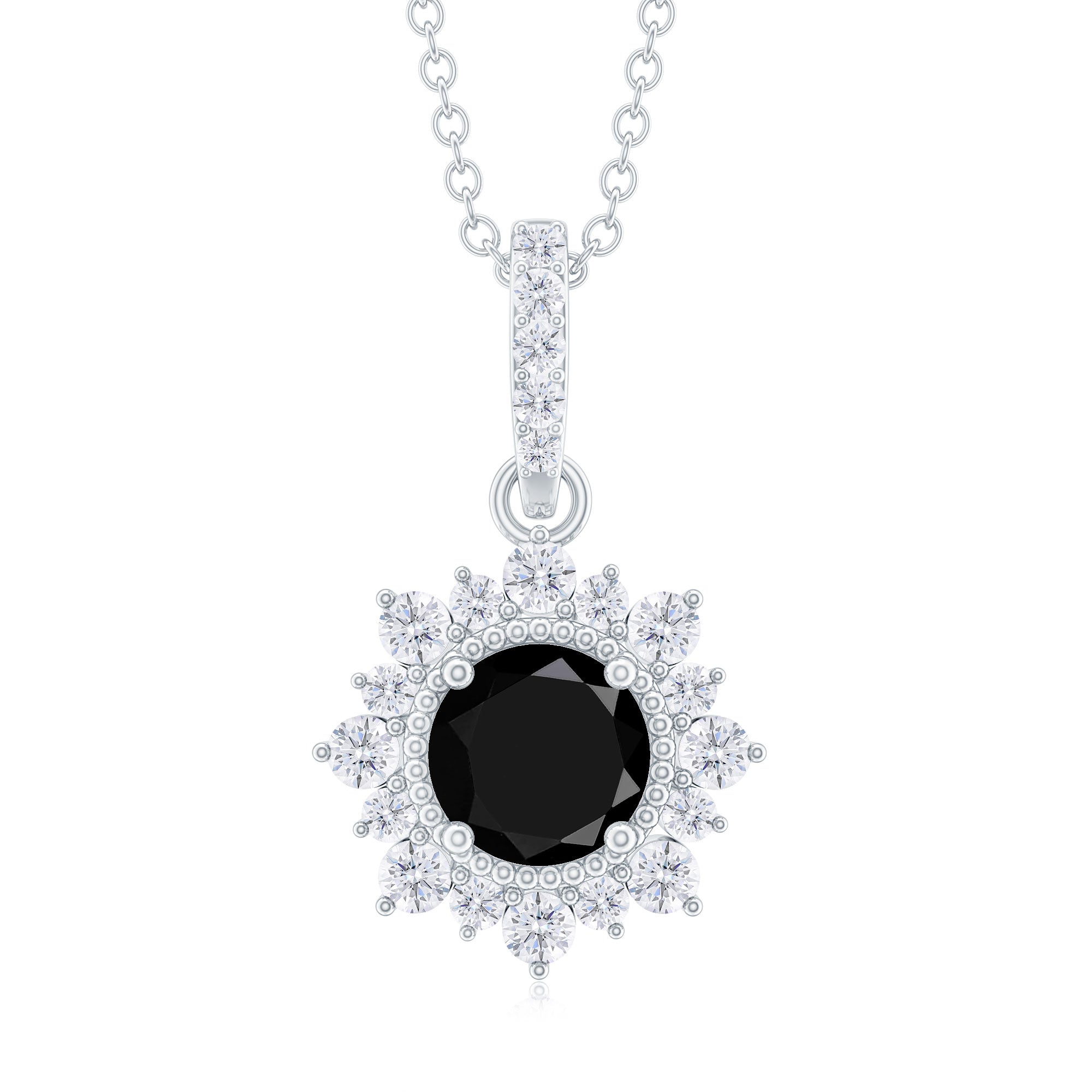 Created Black Diamond Pendant Necklace With Diamond Halo