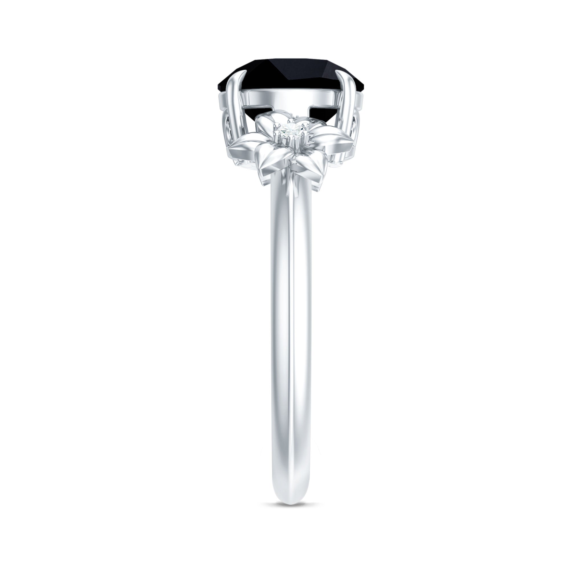 Created Black Diamond Solitaire Flower Engagement Ring with Accent