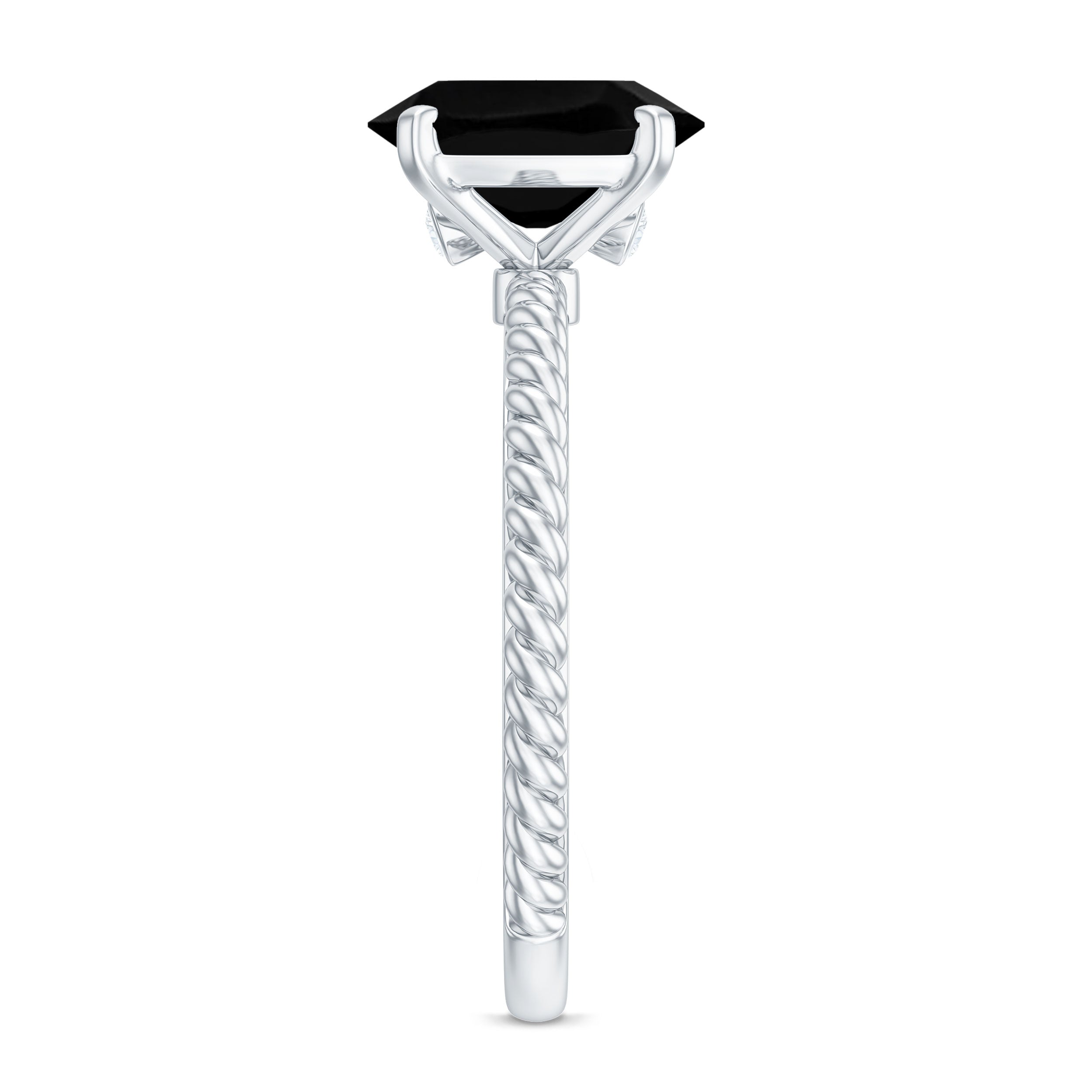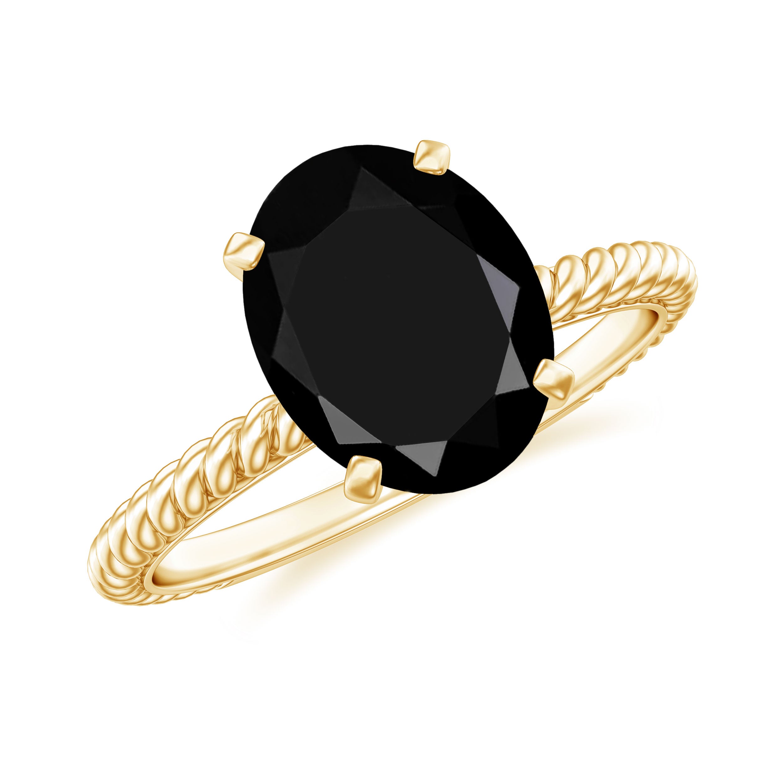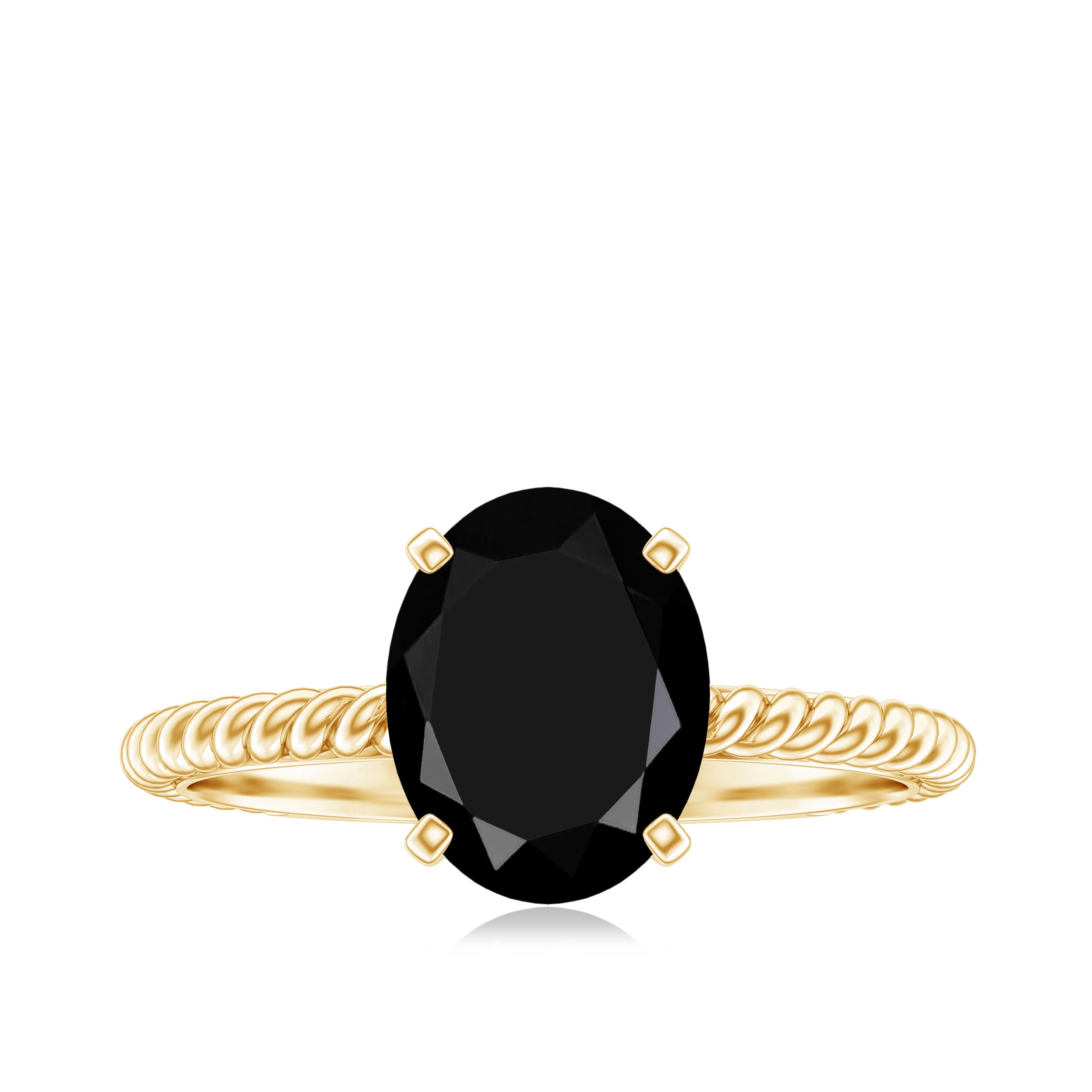 Embrace the enchanting beauty of this Solitaire Ring adorned with a captivating oval created black diamond. The twisted rope shank gracefully embraces the centerpiece, while Surprise Diamond adds a touch of dazzling brilliance. With its exquisite design, this ring exudes elegance and allure that is simply irresistible. Let it grace your finger and captivate all with its undeniable charm.