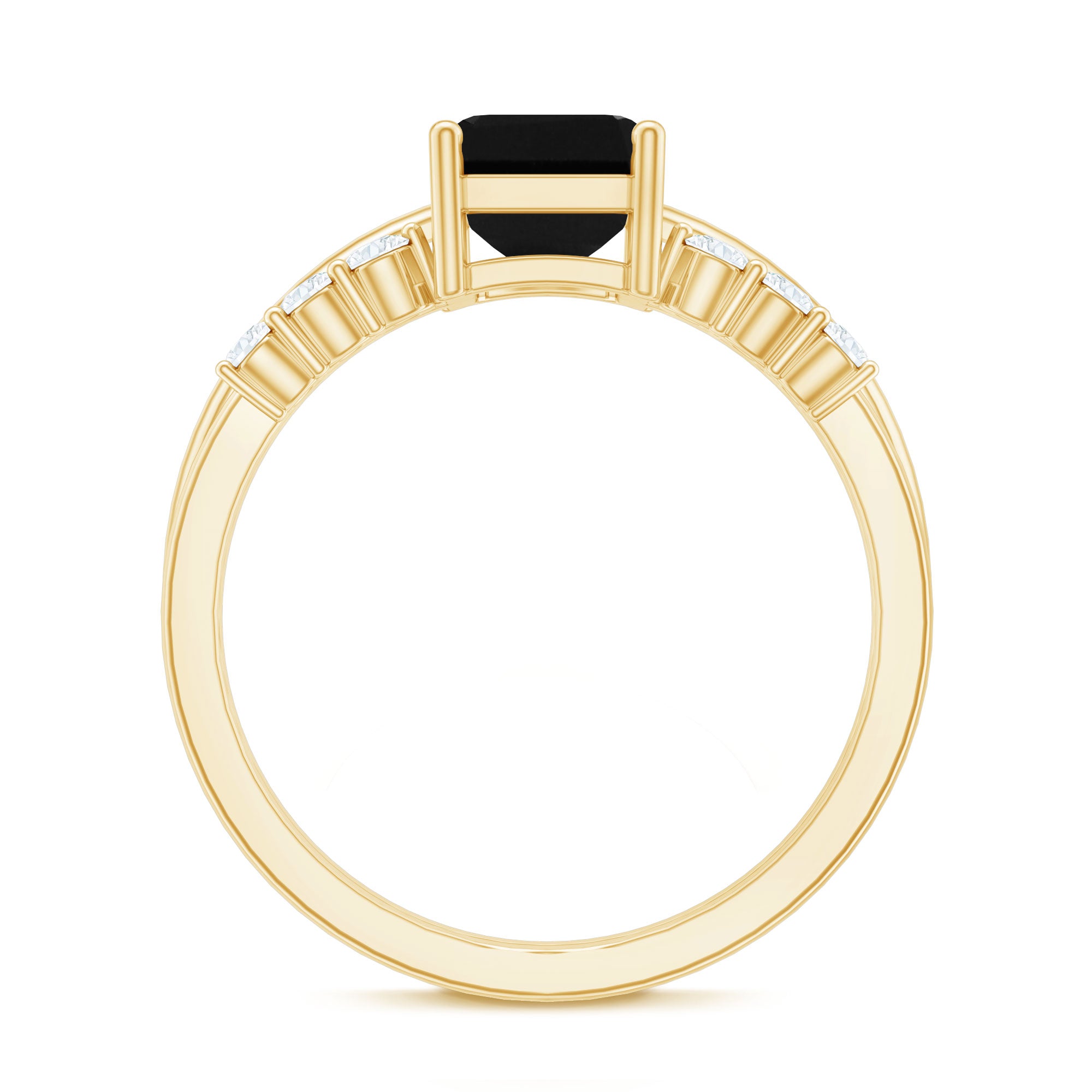 The simple yet elegant Solitaire Wedding Ring Set is embellished with Emerald Cut Lab Created Black Diamond secured in 4 Prong Setting while dainty Round Diamonds add a touch of sparkle. The Created Black Diamond Ring Set is crafted of Solid Metal will enhance her style and make her the center of attention. Your partner will love the Ring Set, a precious anniversary gift she will never forget.