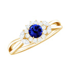 Created Blue Sapphire and Diamond Flower Engagement Ring with Split Shank
