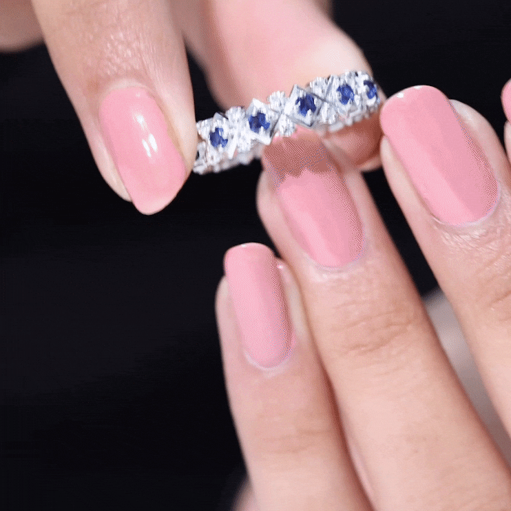Created Blue Sapphire and Diamond Full Eternity Band Ring